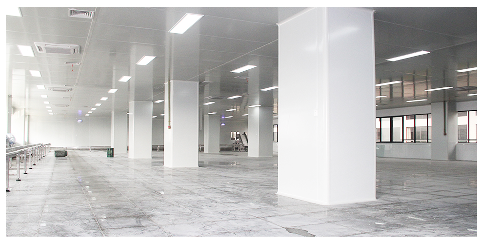 四川品品食品有限公司車間為華盛興邦設計、裝修,車間裝修建筑面積2800平方米,主要生產肉制品。華盛興邦承接的是其四號牛板筋生產車間,該工程地面采用金剛砂耐磨+固化地坪、花崗石地坪、PVC地坪三種方案,隔墻采用凈化彩鋼硅巖板、凈化不銹鋼硅巖板兩種材質,門窗均采用鋼質門潔凈門、不銹鋼潔凈門、潔凈窗,以及臭氧消毒、通風、制冷、排煙工程。
