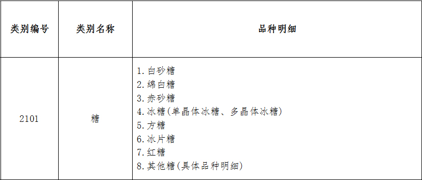 食糖食品類別編號及類別名稱:2101糖