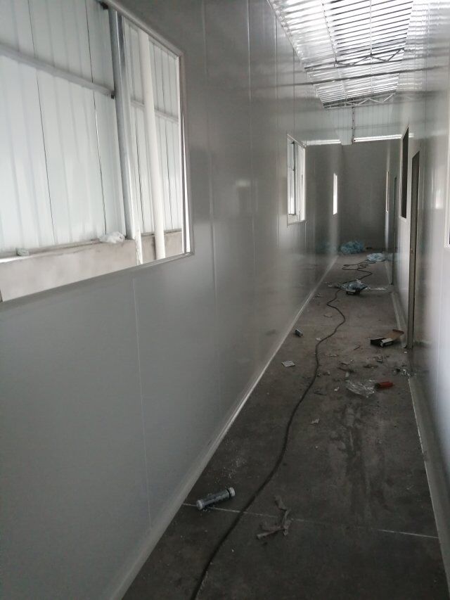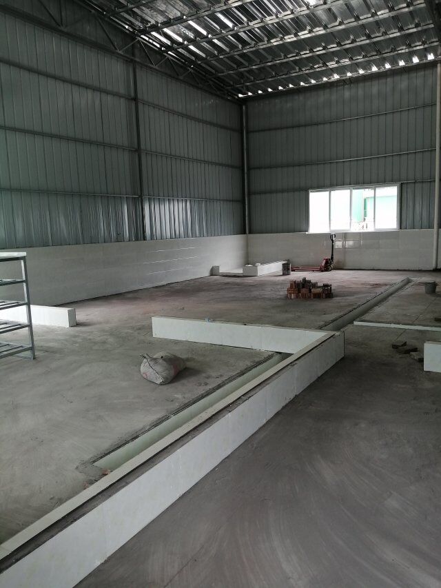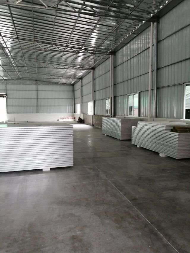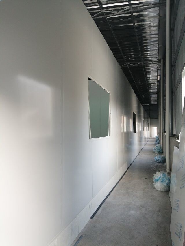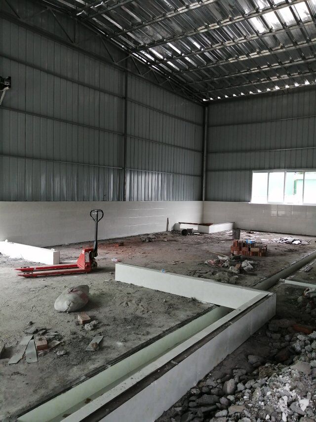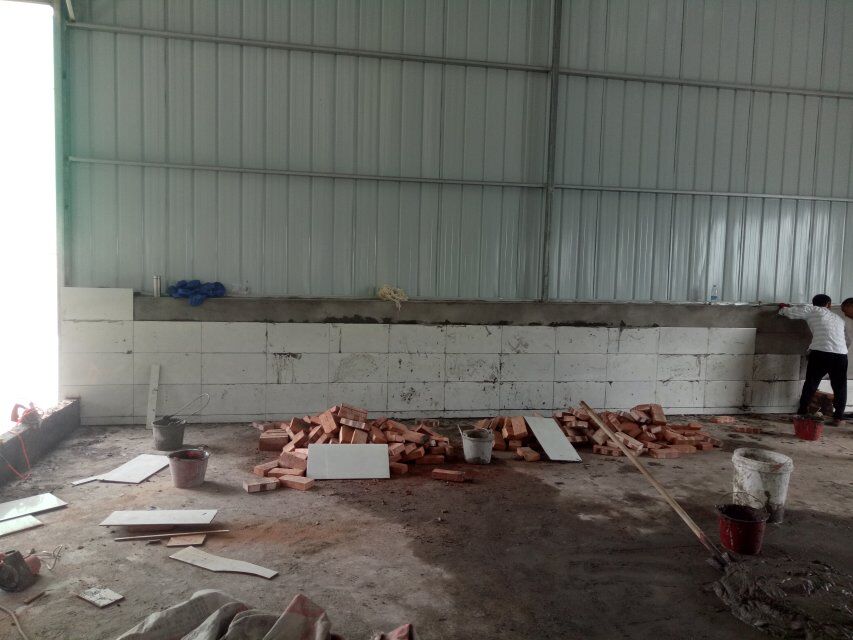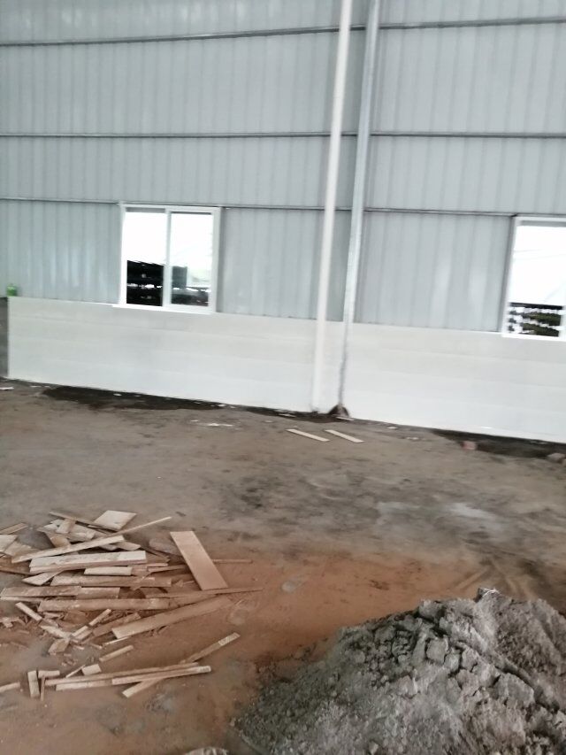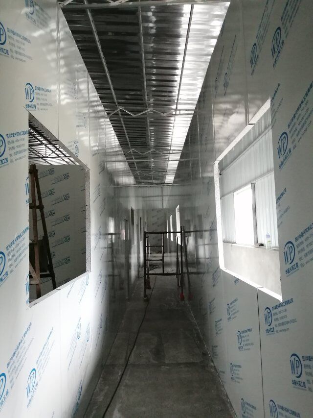 什邡昊陽農業發展有限公司廠房裝修現場,打膠立墻板