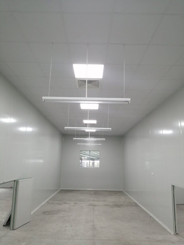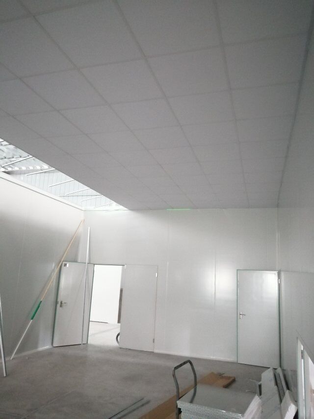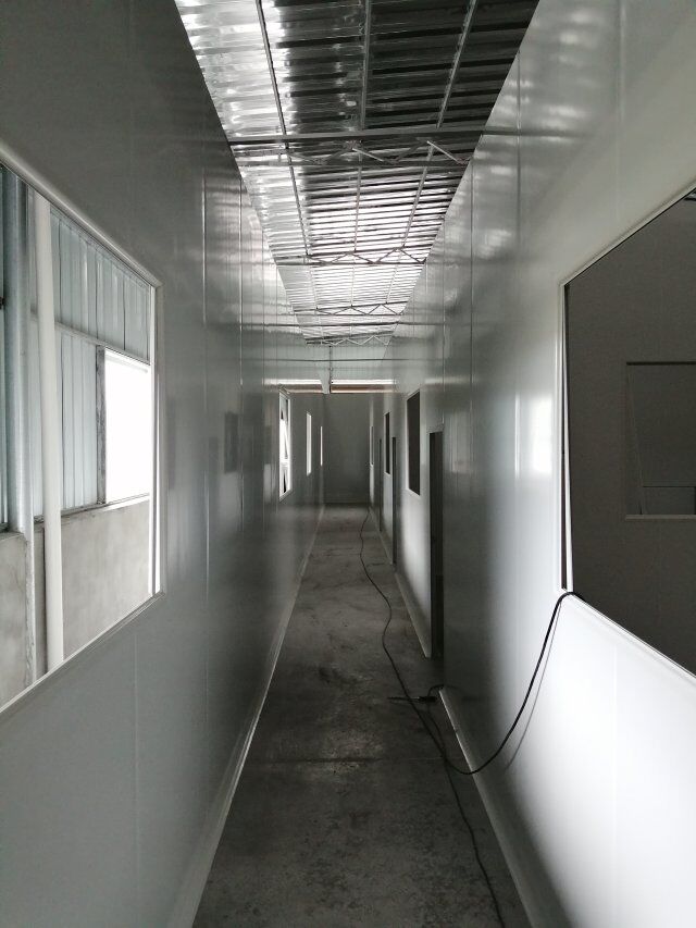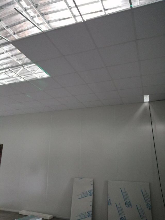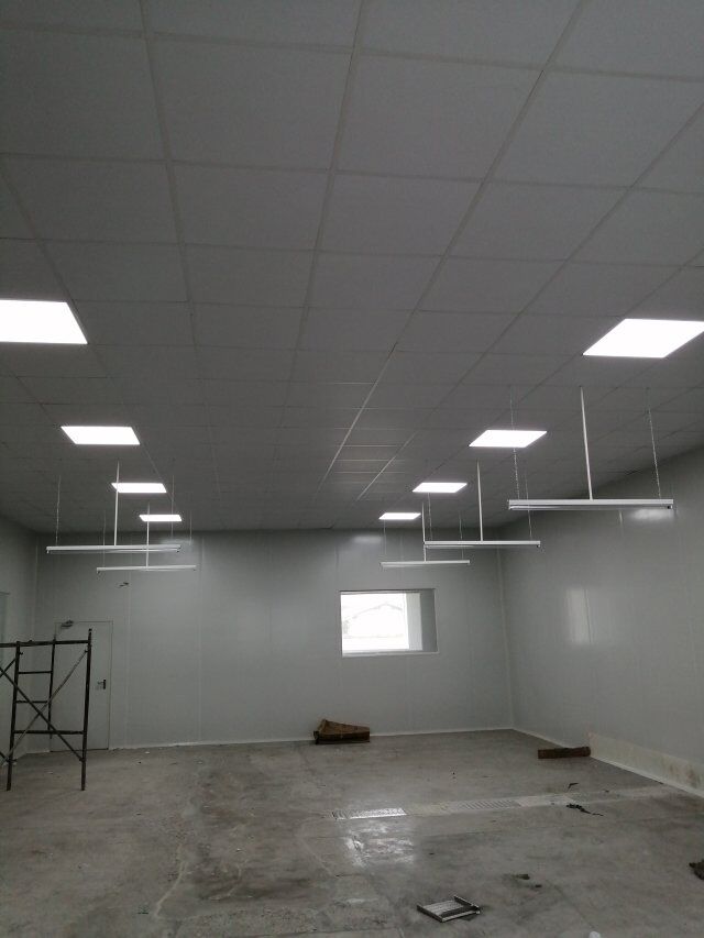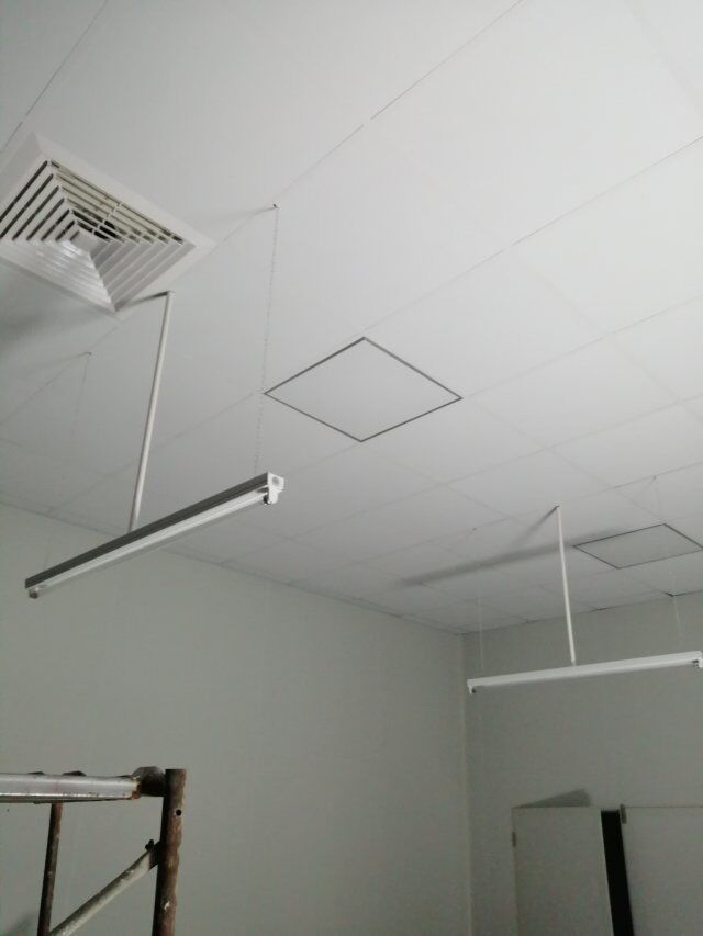 什邡昊陽農業發展有限公司廠房裝修現場,吊頂施工中