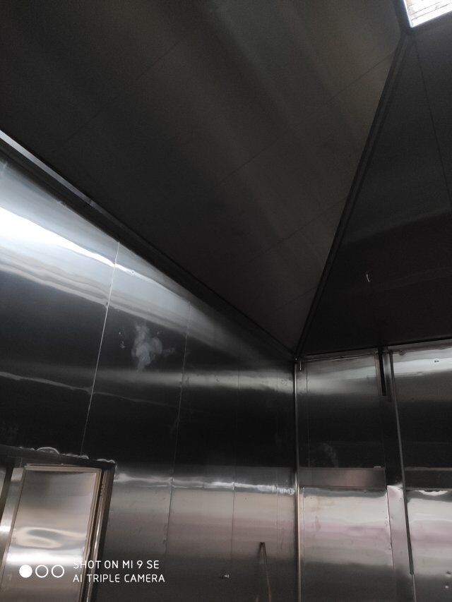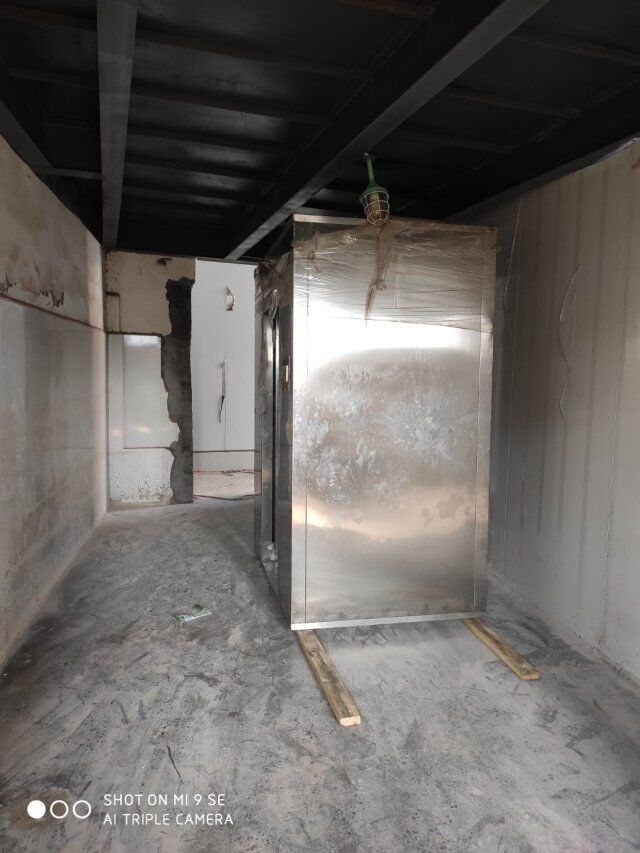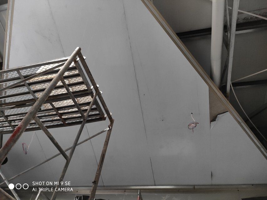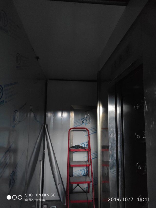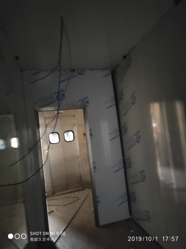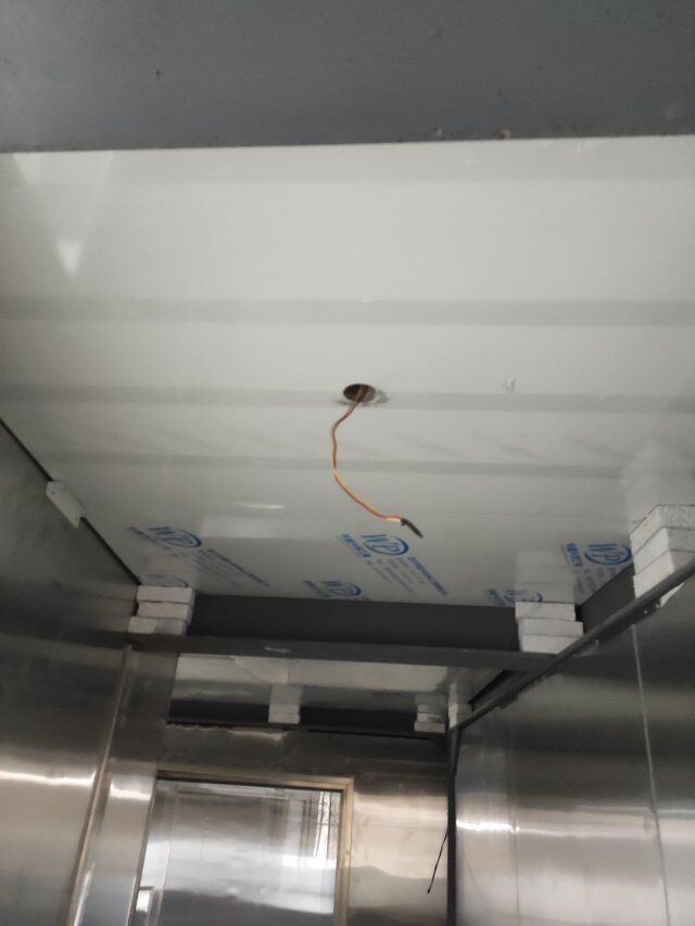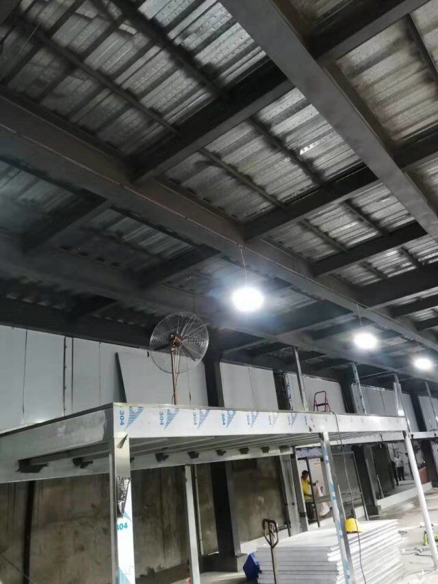 四川升鐘湖久全食品有限公司廠房裝修現場,墻板立完,風口開孔