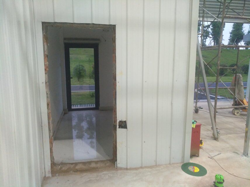 四川聚峰谷農業科技開發有限公司廠房裝修現場,水電安裝,彩鋼板隔斷收尾