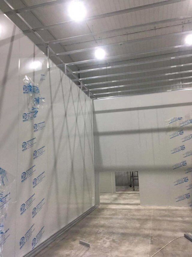 四川聚峰谷農業科技開發有限公司廠房裝修現場,地坪清理,板材開始安裝中