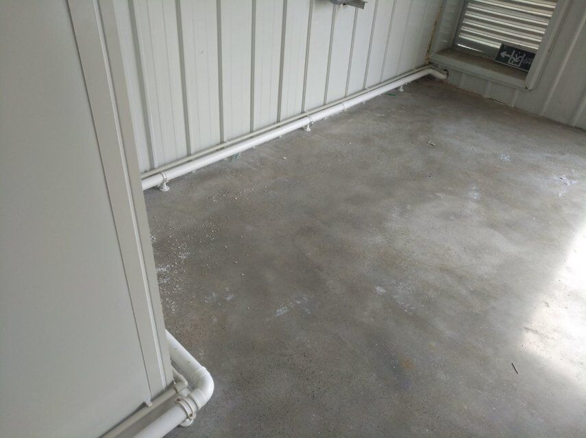 金堂聚豐谷橄欖油廠房裝修現場,固化地坪施工,管道連接施工