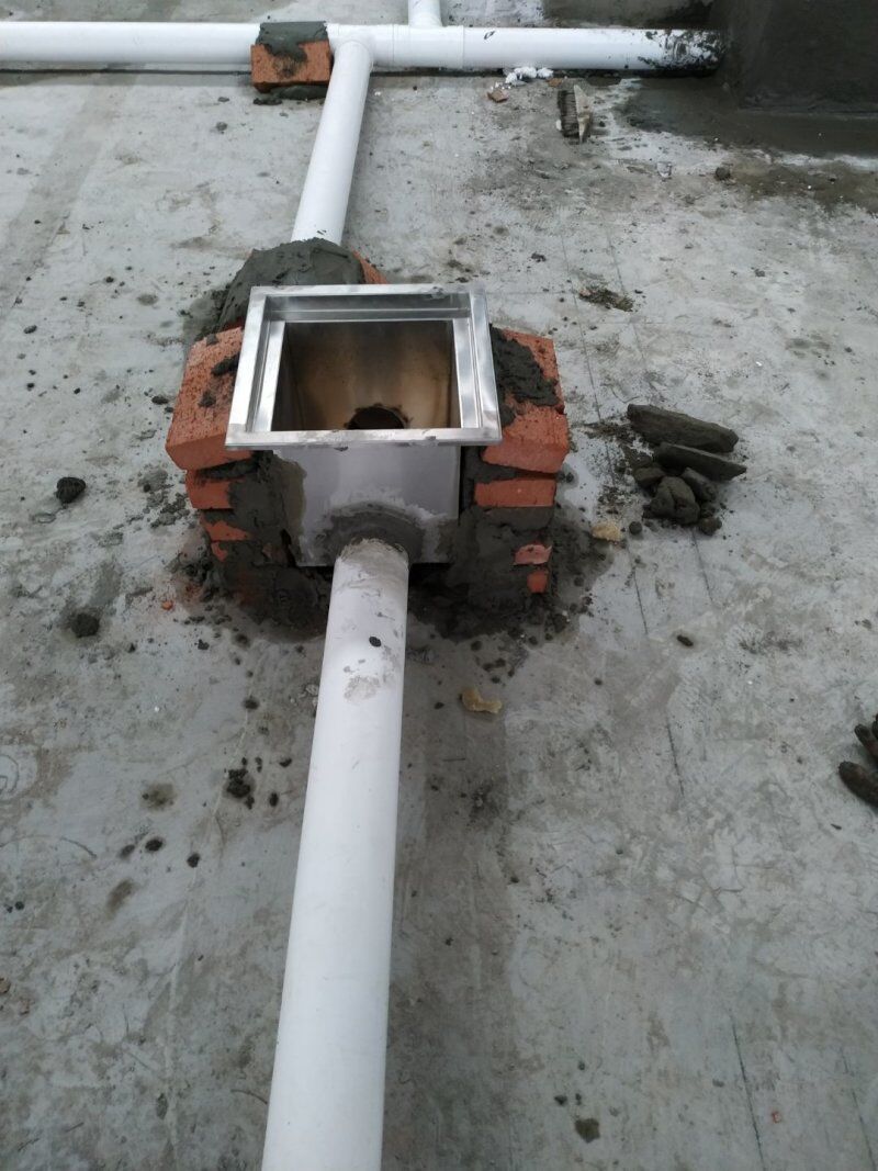 車間不銹鋼地漏安裝,柱子包邊糊砂