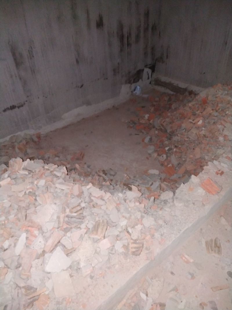 過渡車間砌磚施工,擋水墻砌磚施工,擋水墻抹灰,防水施工開始,建渣裝袋清運完成。