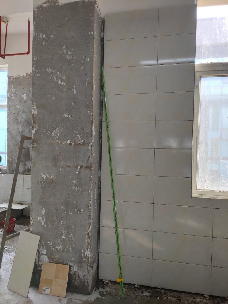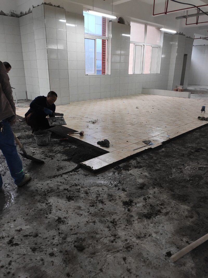 1.墻面貼磚完成 2.擋水墻貼磚完成 3.地面貼磚施工