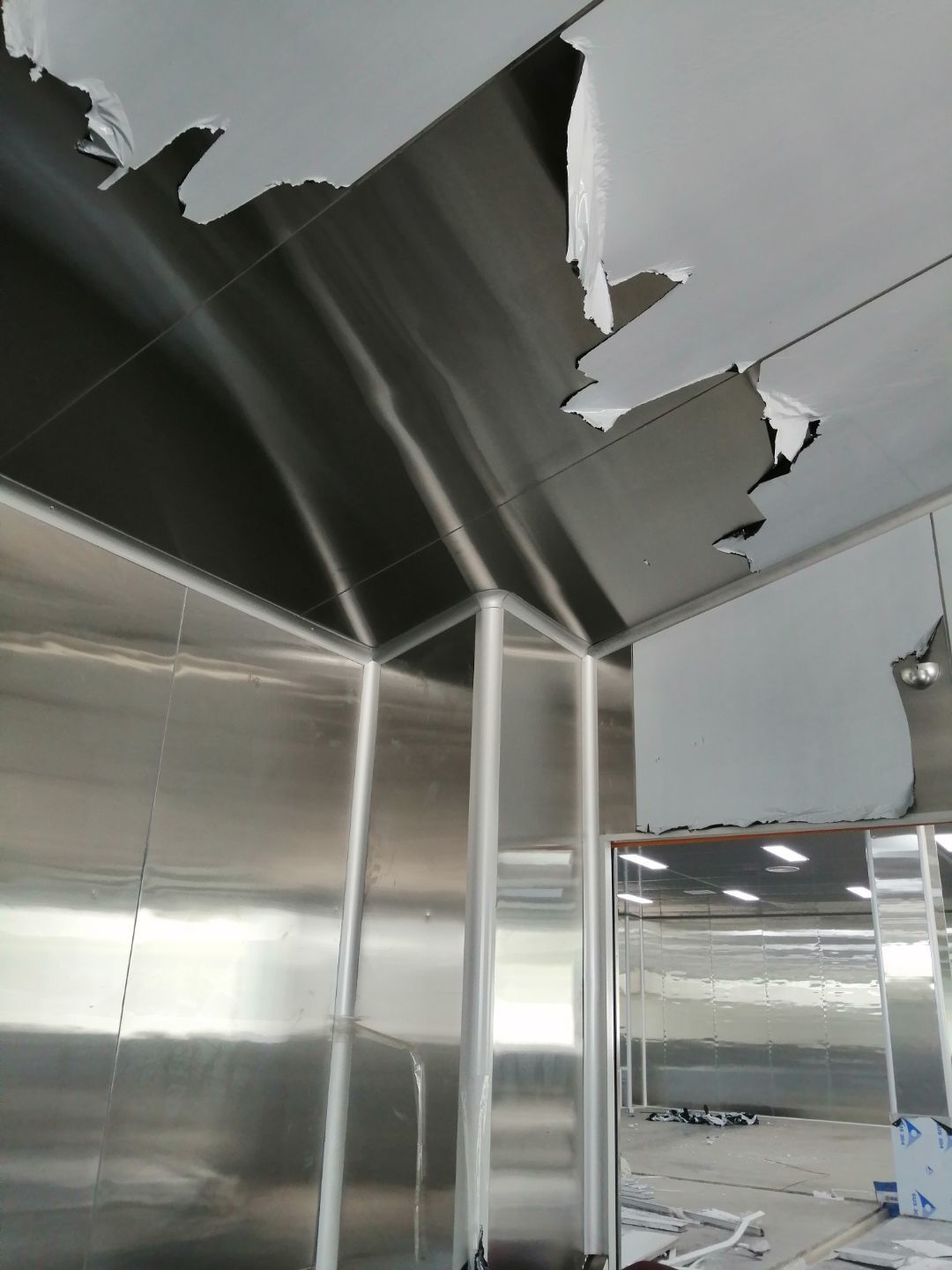 1.更衣間甲方乳膠漆完成可以安裝照明電,插座 2車間,增量封門洞一個,加寬門洞一個,車間供水發現一個點位有微弱寖水需處理 3.實驗室工作臺安裝完成,需要處理掉漆位置,和增加擋板。
