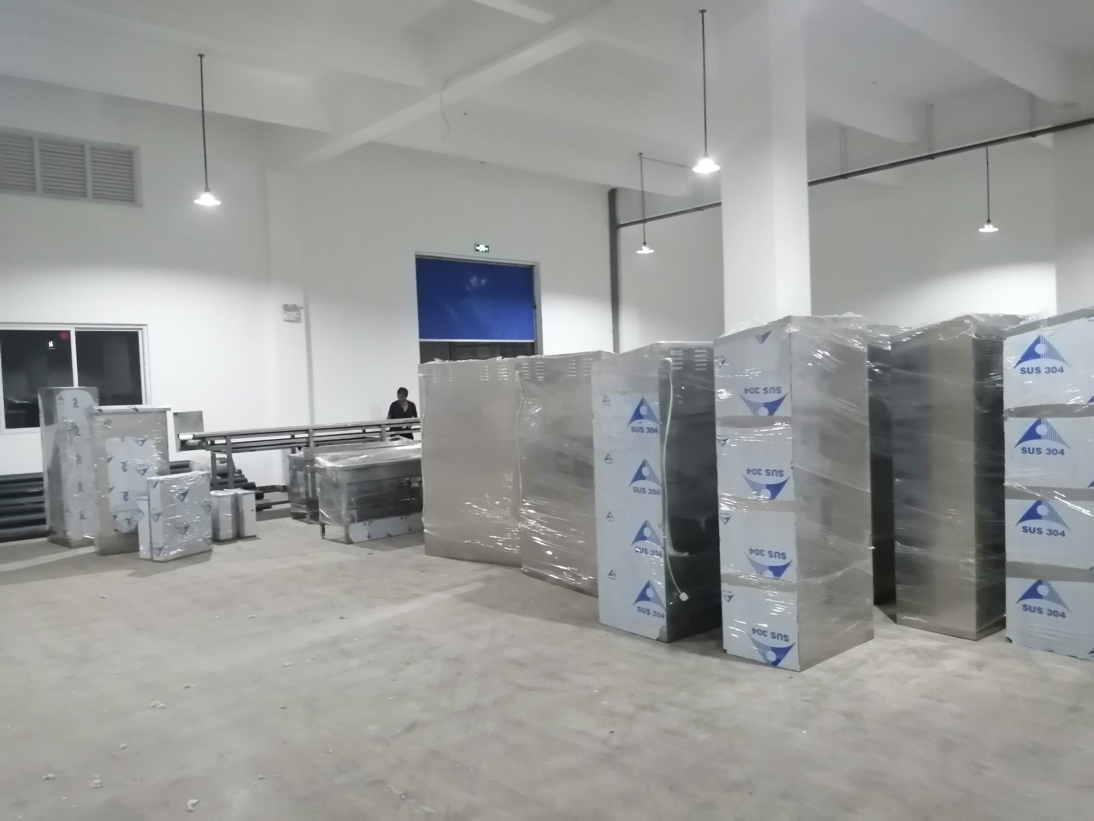 瀘州竹芯食品有限公司食品廠房裝修現場,不銹鋼設備設施進場安裝完成