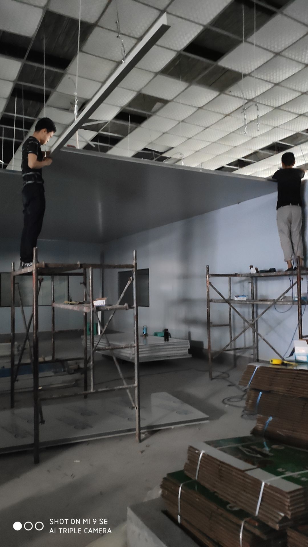 油房改造開始,頂板安裝完成一間,風管進場安裝