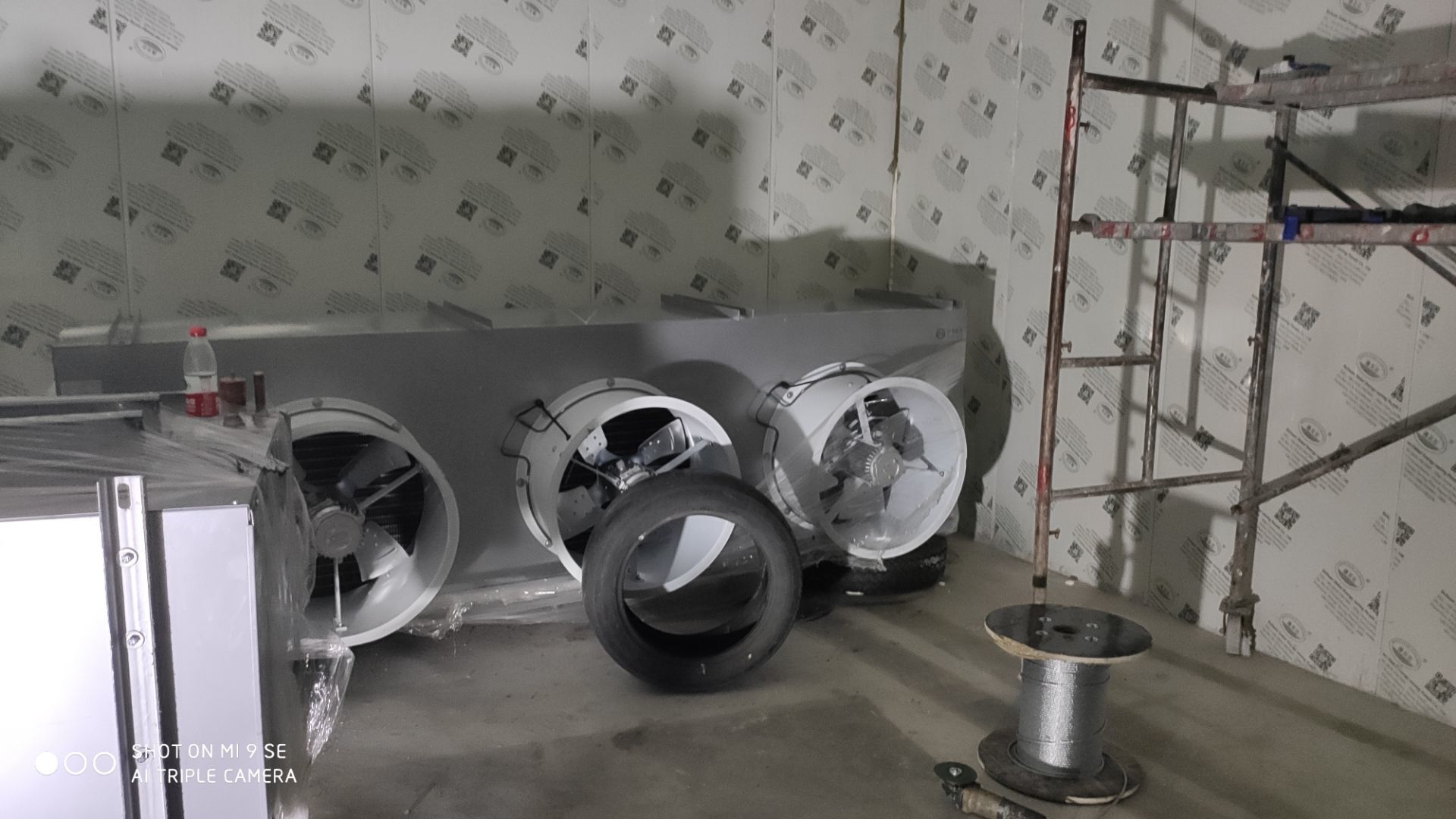 風管安裝完成50%,頂板完成50%,風機到現場