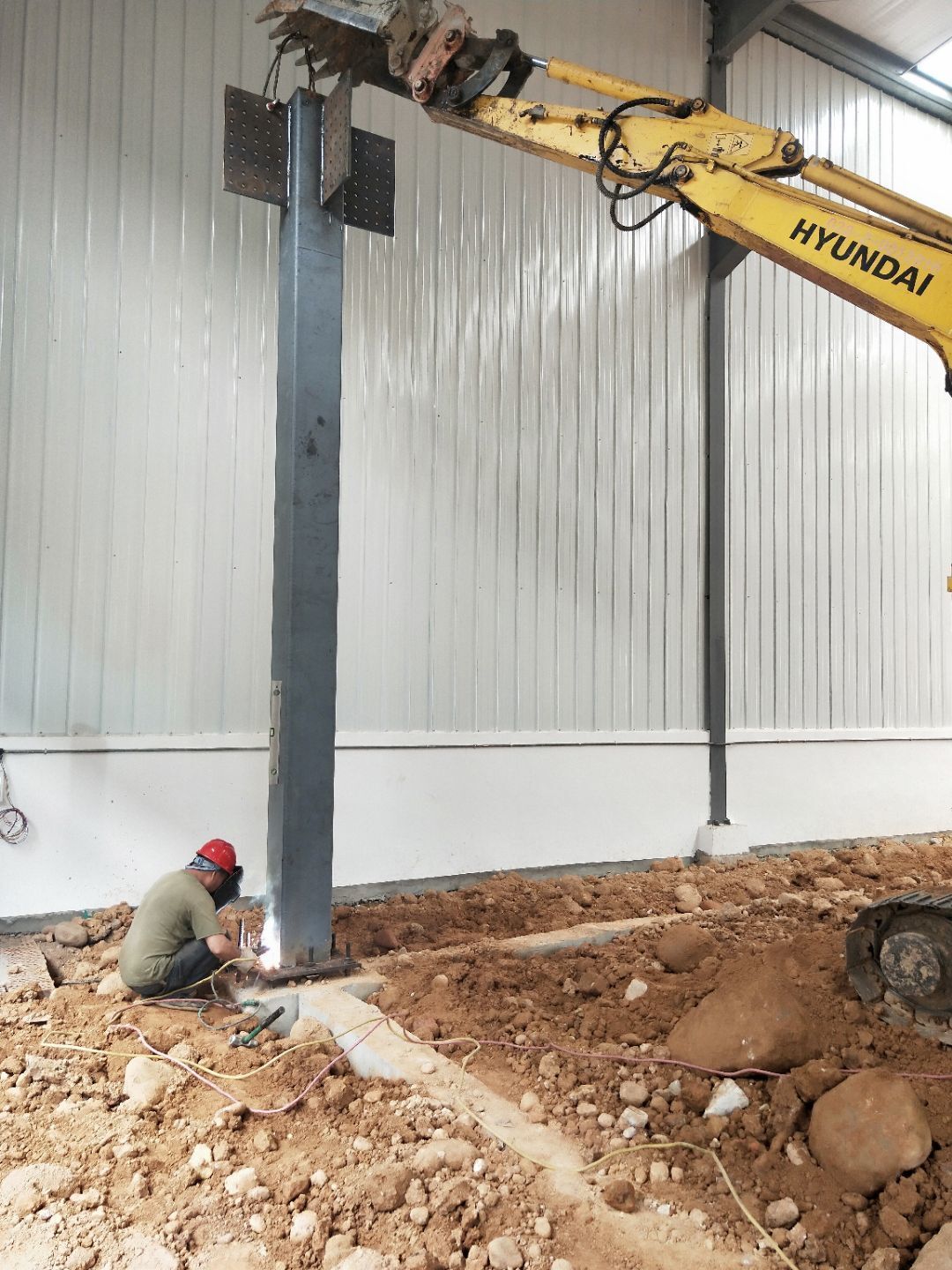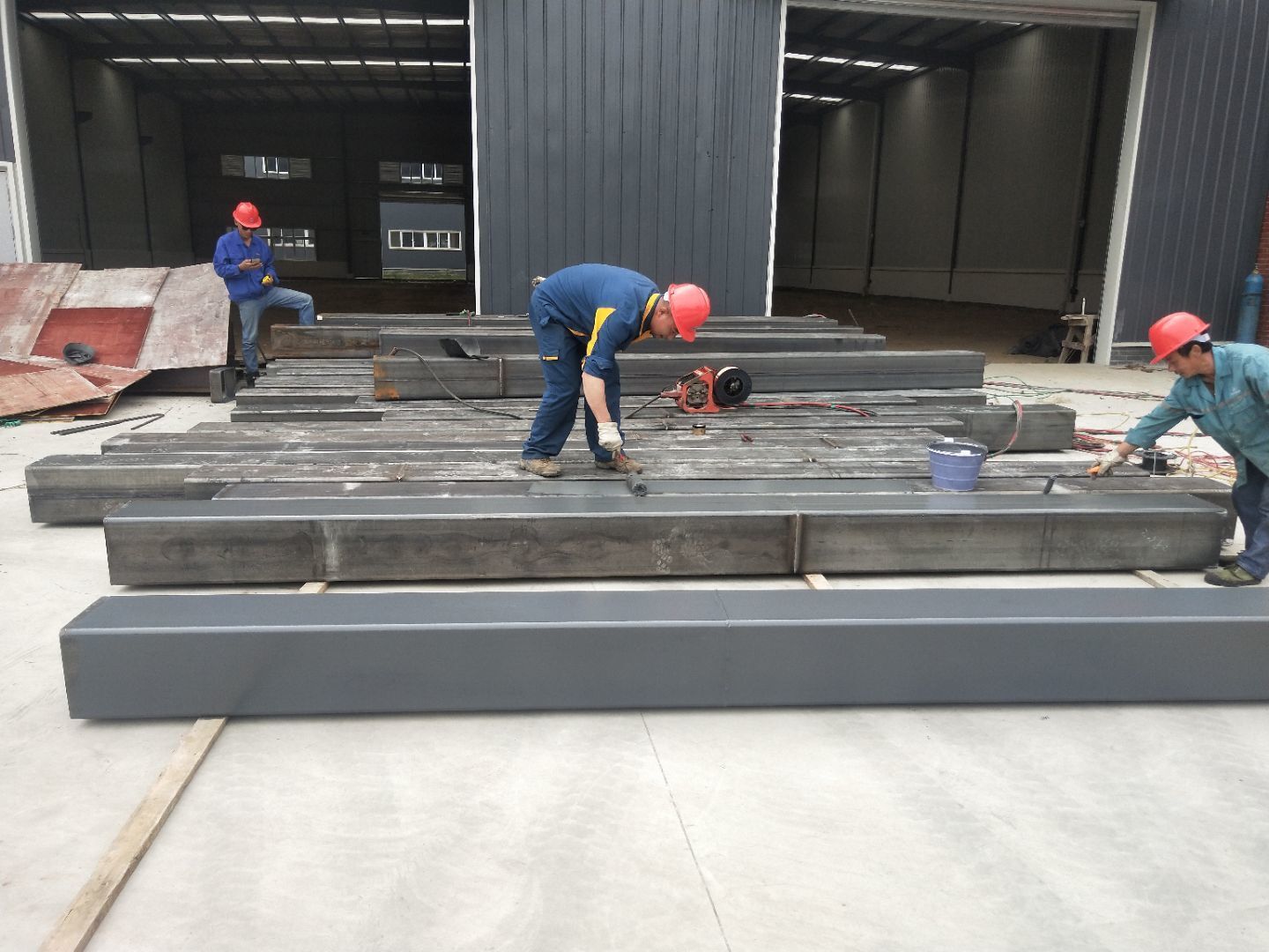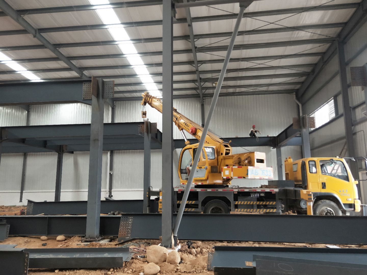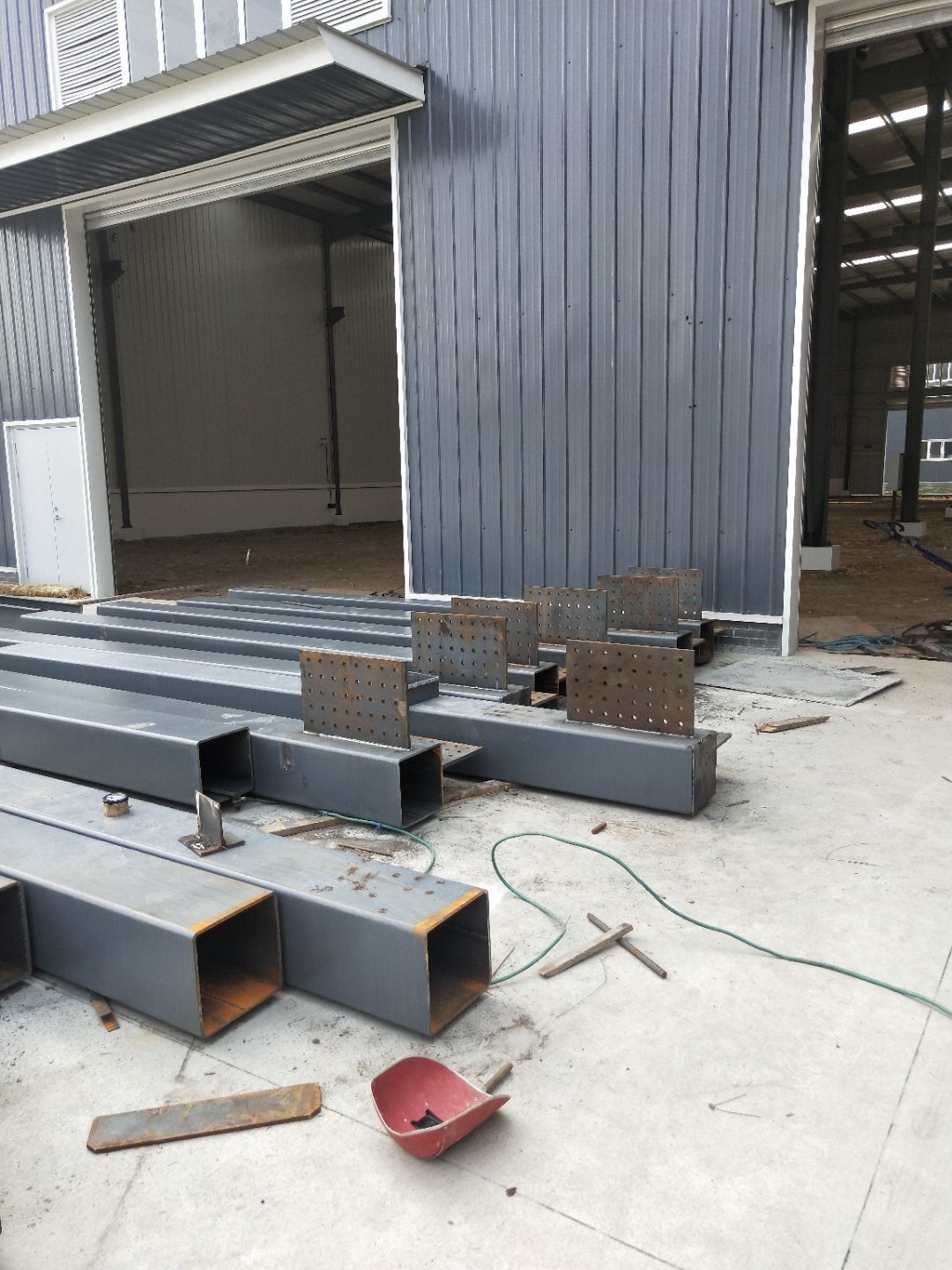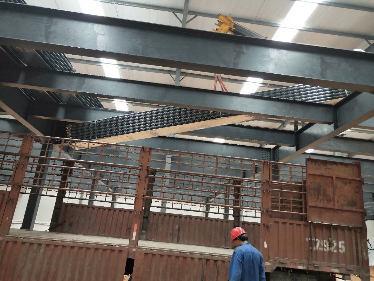 1、柱腳焊接加固 2、樓梯制作,樓板材料到場