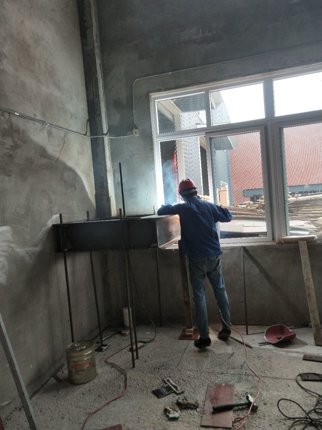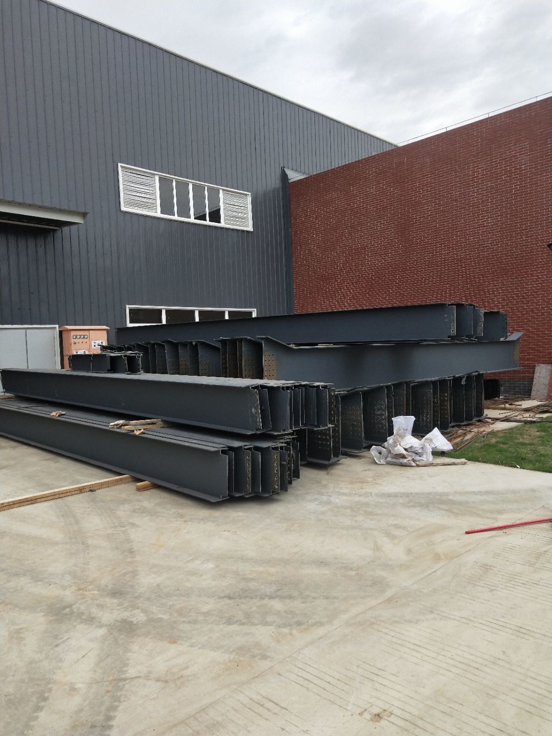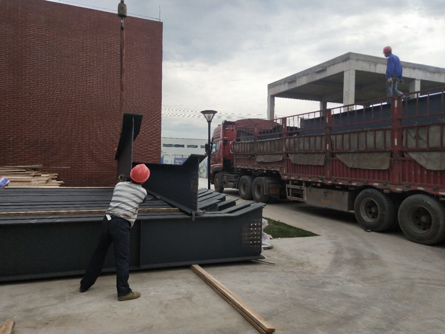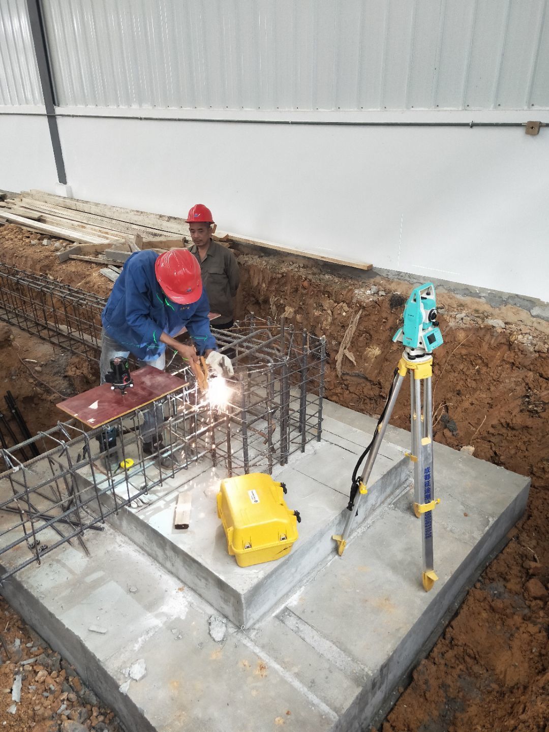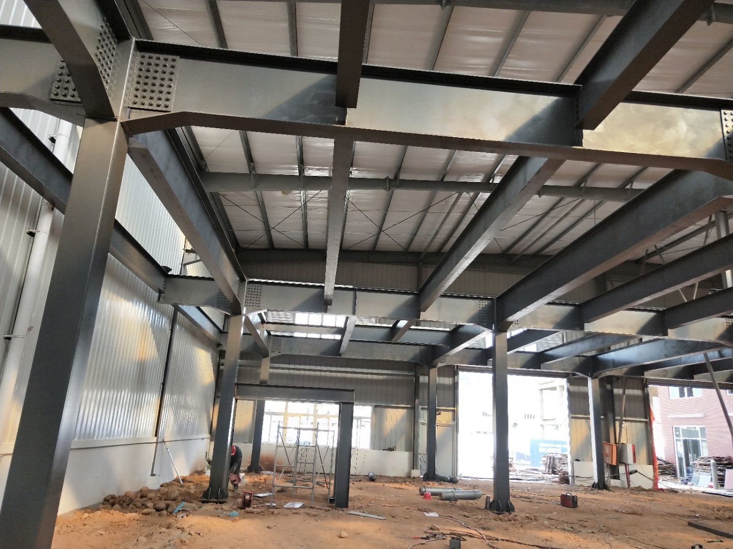 1、柱腳焊接加固 2、樓梯制作,樓板材料到場