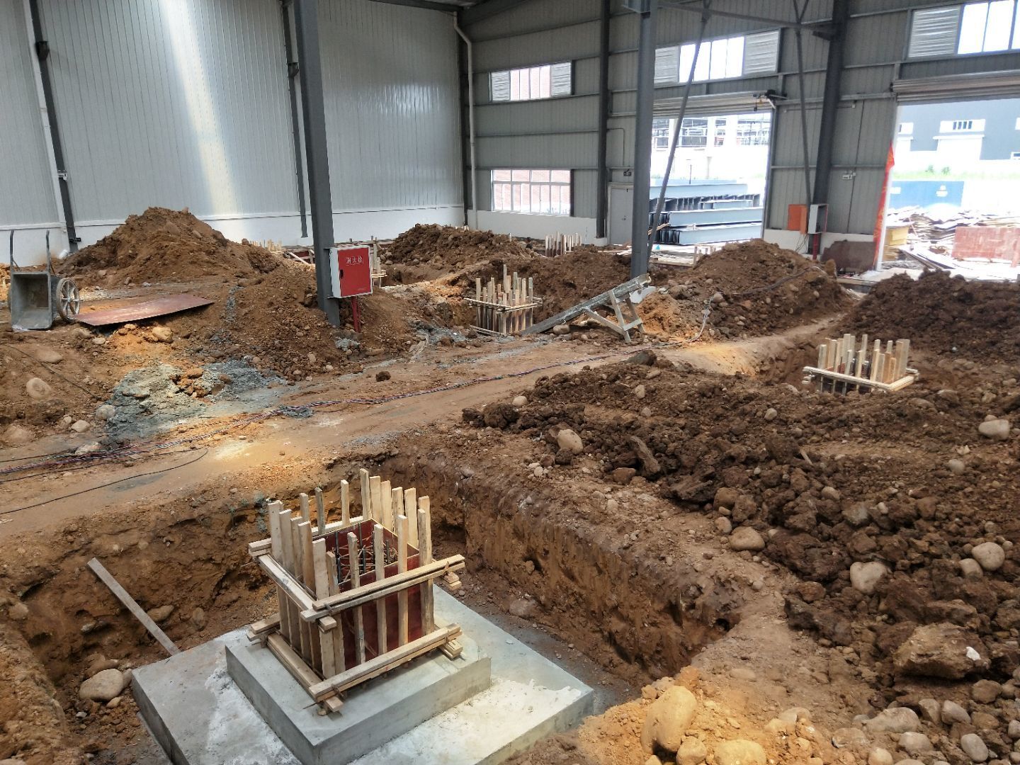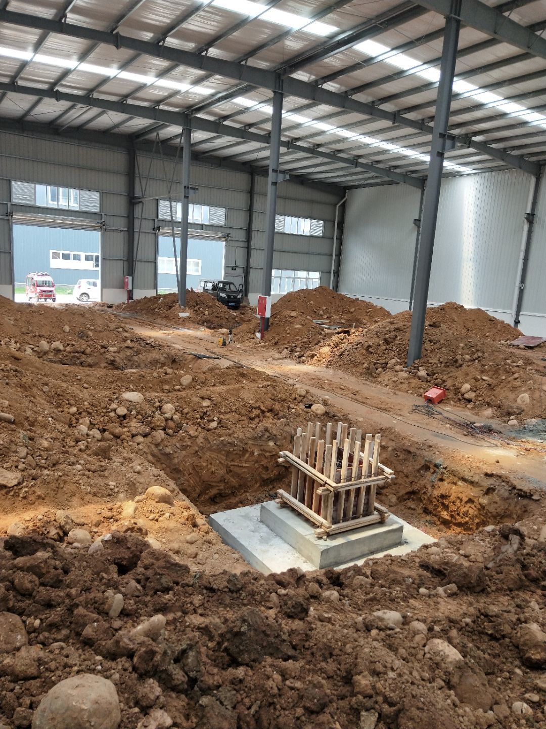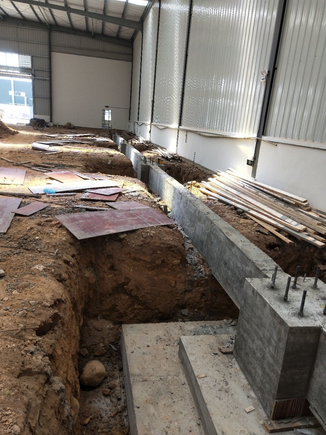 (1)二樓墻板完成70%, (2)二樓墻板,頂板上樓, (3)設備基礎完成90%, (4)卷簾門門口斜坡完成50%, (5)一樓衛(wèi)生間墻體墊層完成。