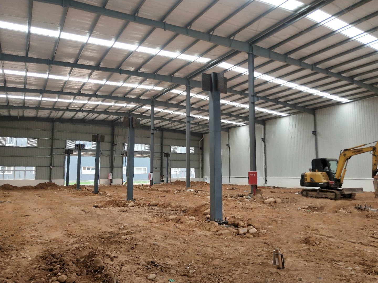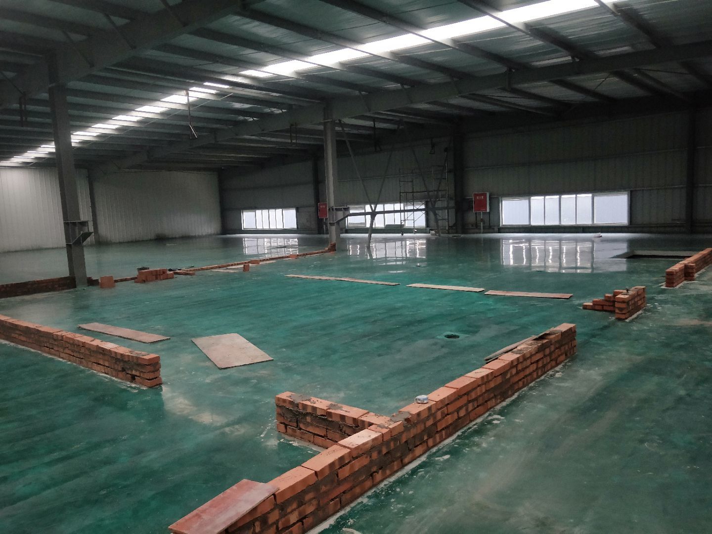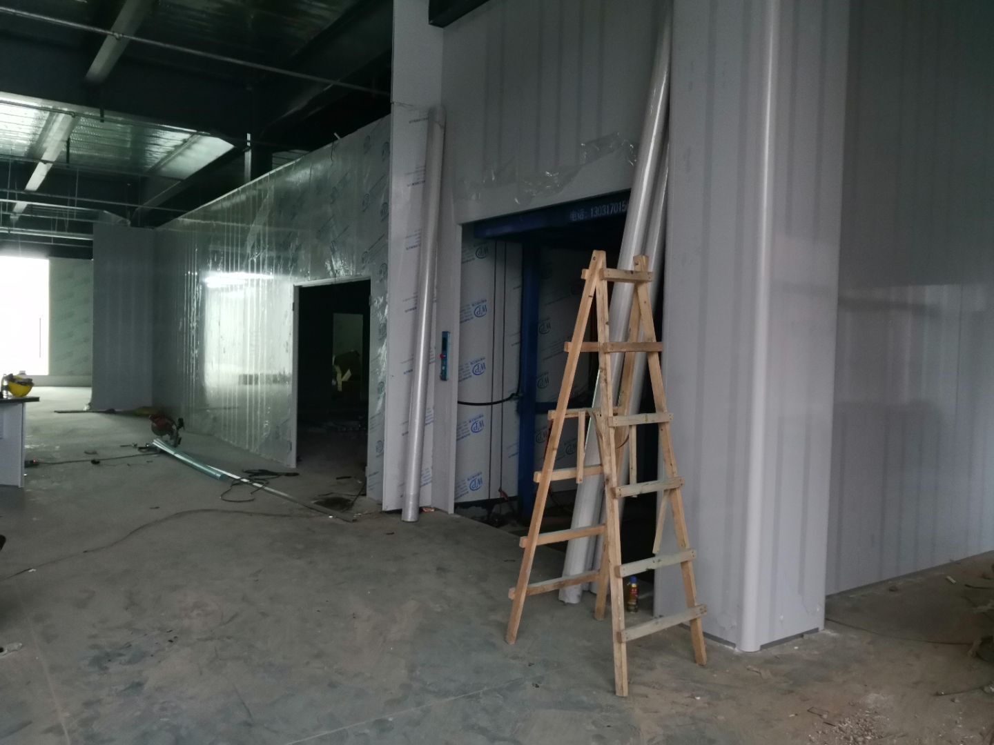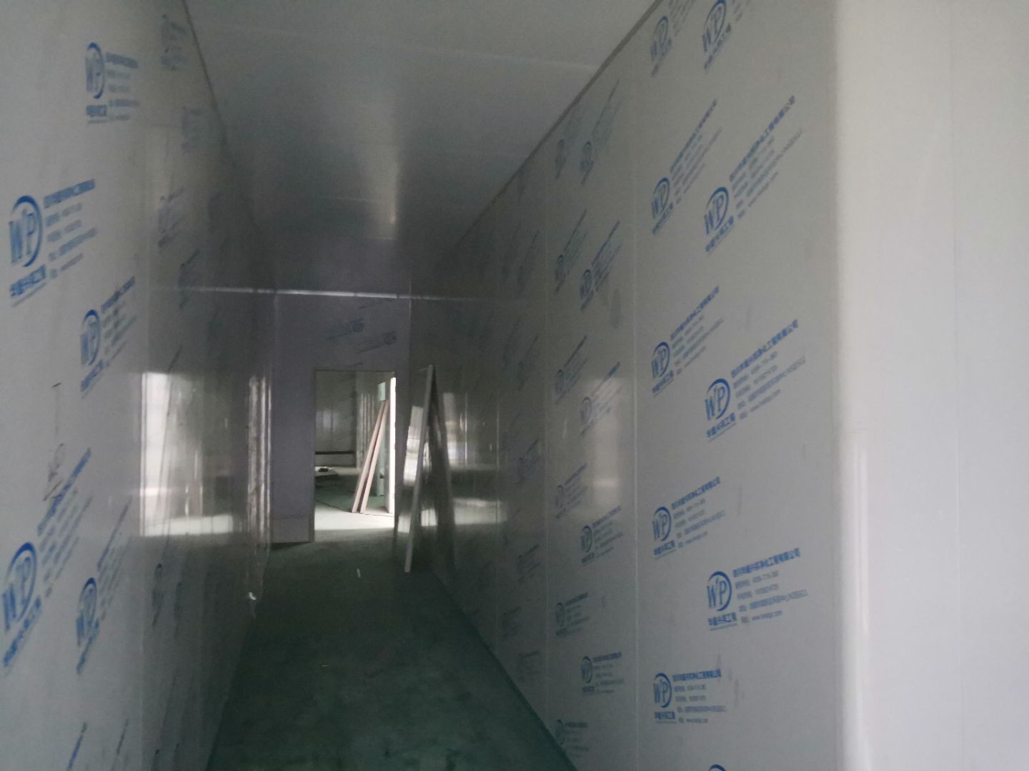 1,一樓預留墻板安裝完成, 2,場地清理基本完成, 3,一樓水電安裝完成50%, 4,主通道墻板等待設備進場。