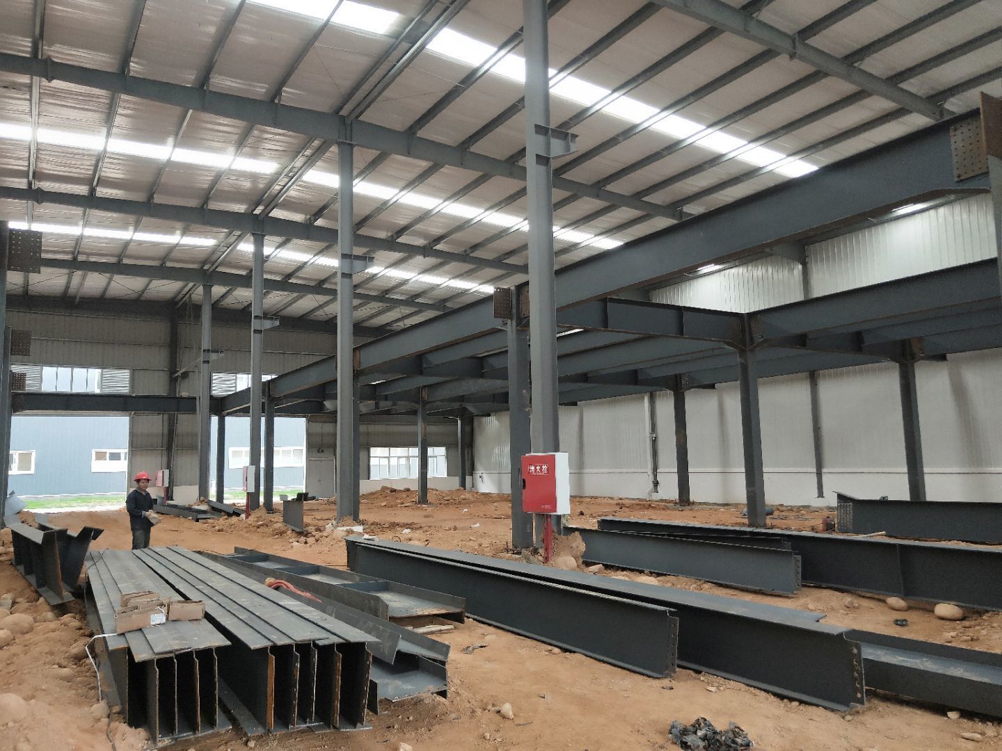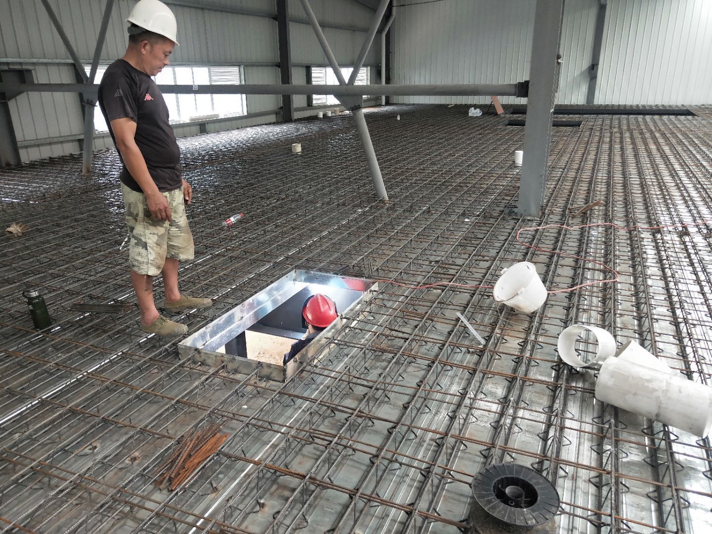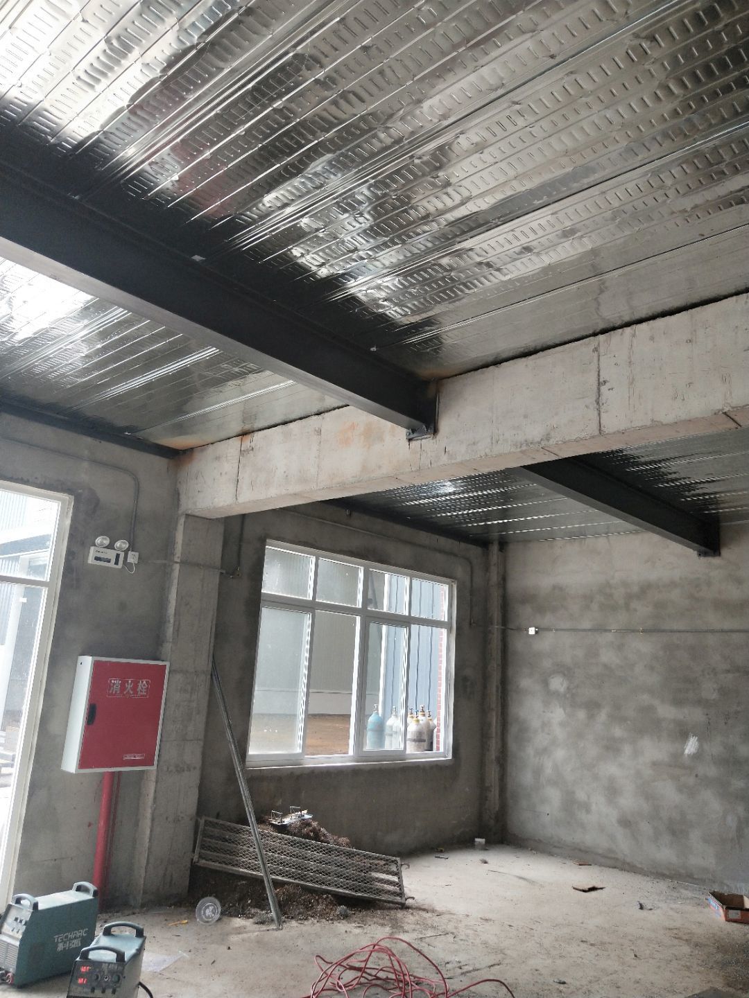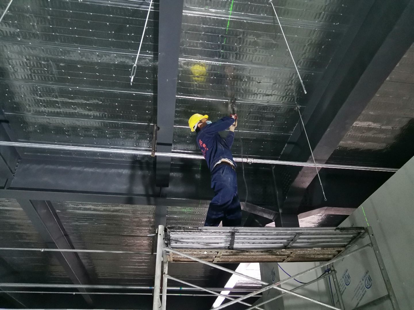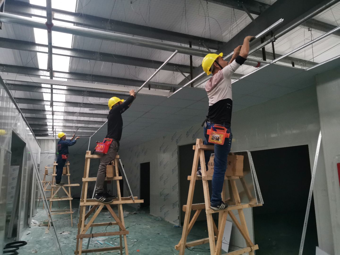 1,衛(wèi)生間管路預埋完成50%, 2,二樓彩鋼收尾完成90%, 3,二樓彩鋼門預制安裝完90%, 4,三防板吊頂進場,二樓完成30%, 5,水電班組進場施工,開底盒。