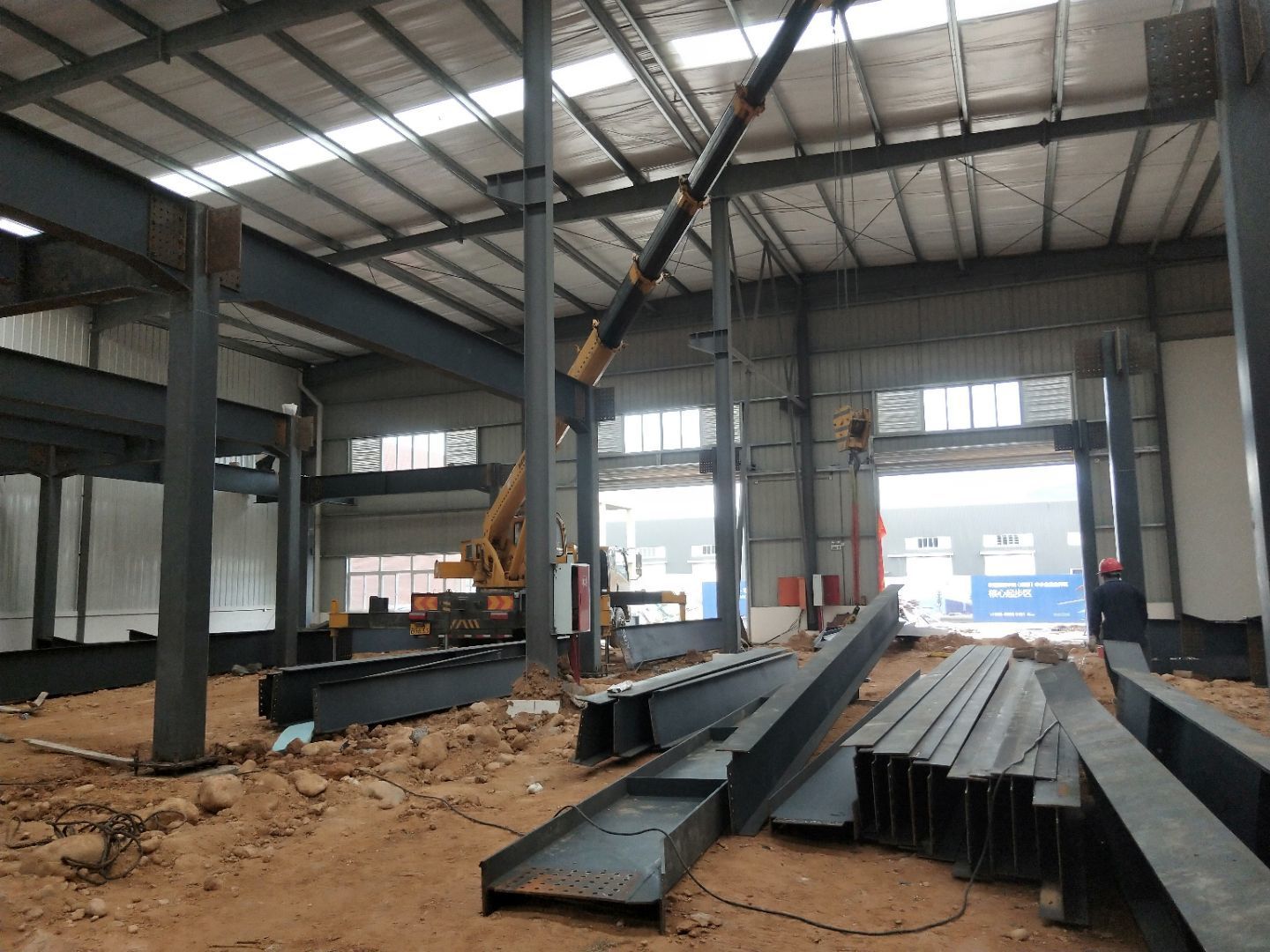 1,通風進場施工完成50%, 2,水電安裝完成90%,動力電除外, 3,彩板含增項主體全部完成,收尾基本完成, 4,三防板安裝全部完成。