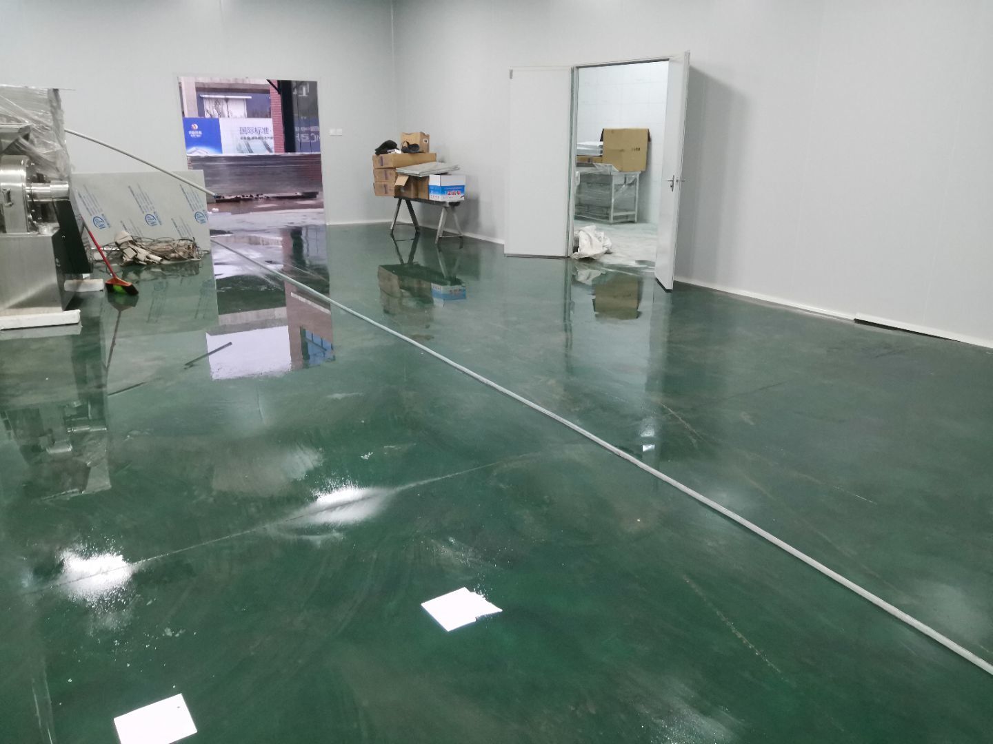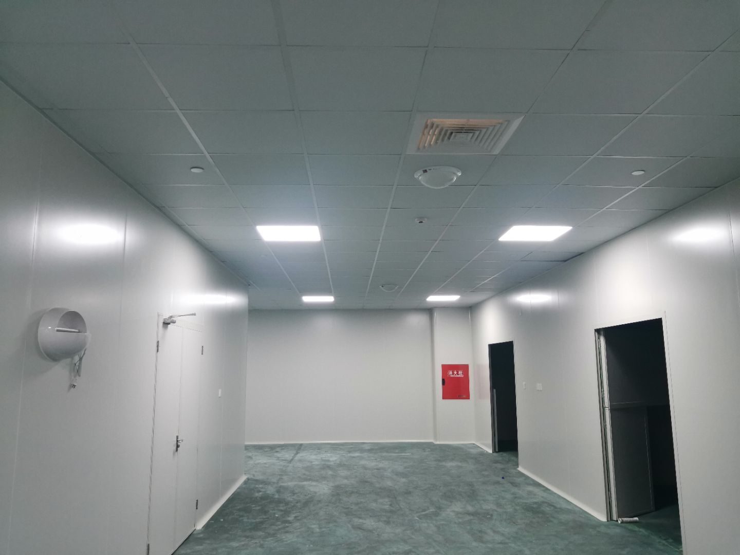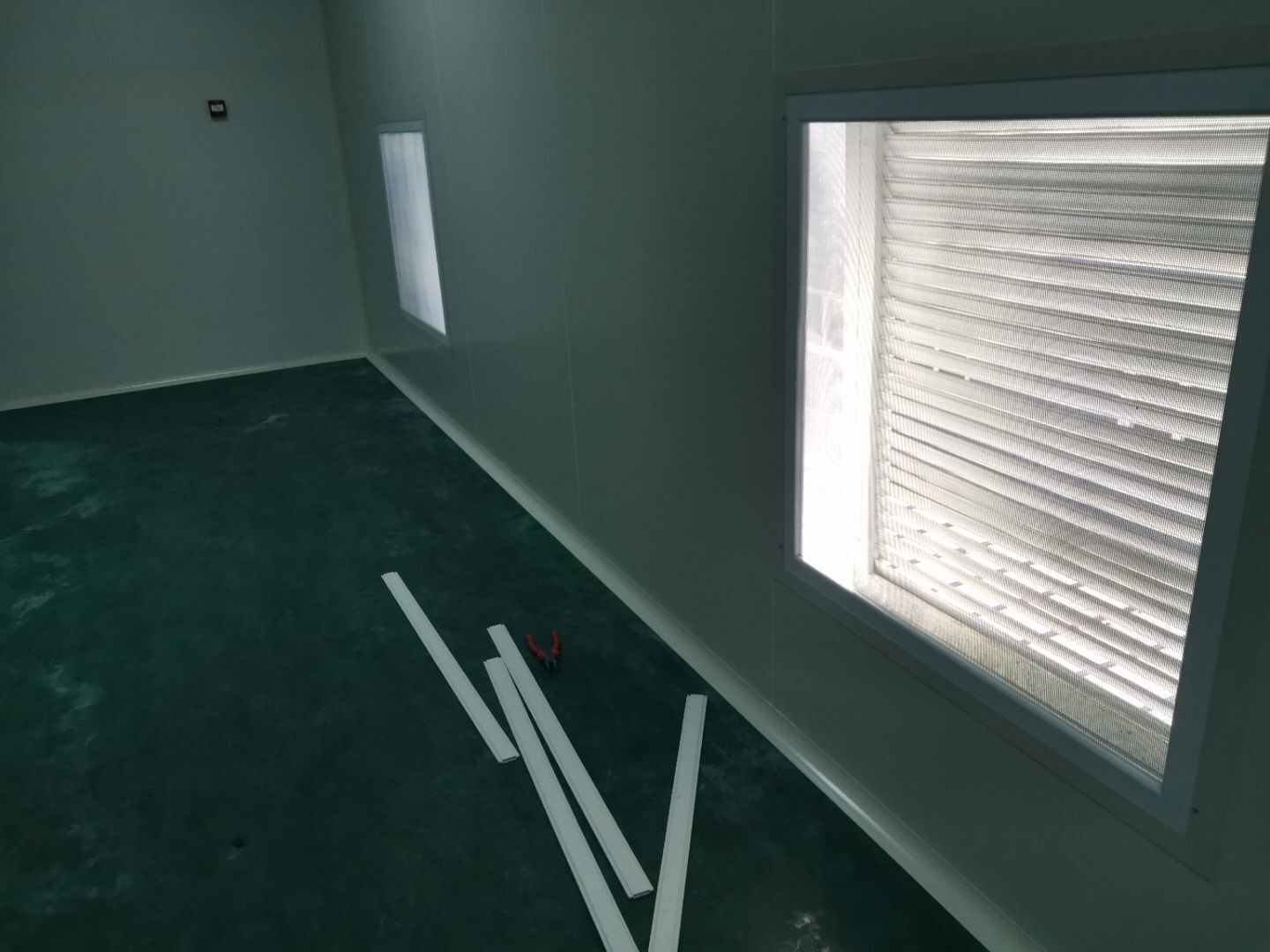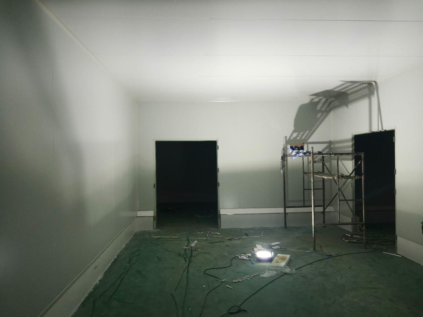 1,風淋室,洗手槽進場安裝完成 2,二樓彩鋼收尾完成95%, 3,二樓彩鋼門預制安裝完95%, 4,三防板二樓完成95%,, 5,二樓水電完成50% 6,一樓墻板完成40%,剩余等待設備進場后安裝。