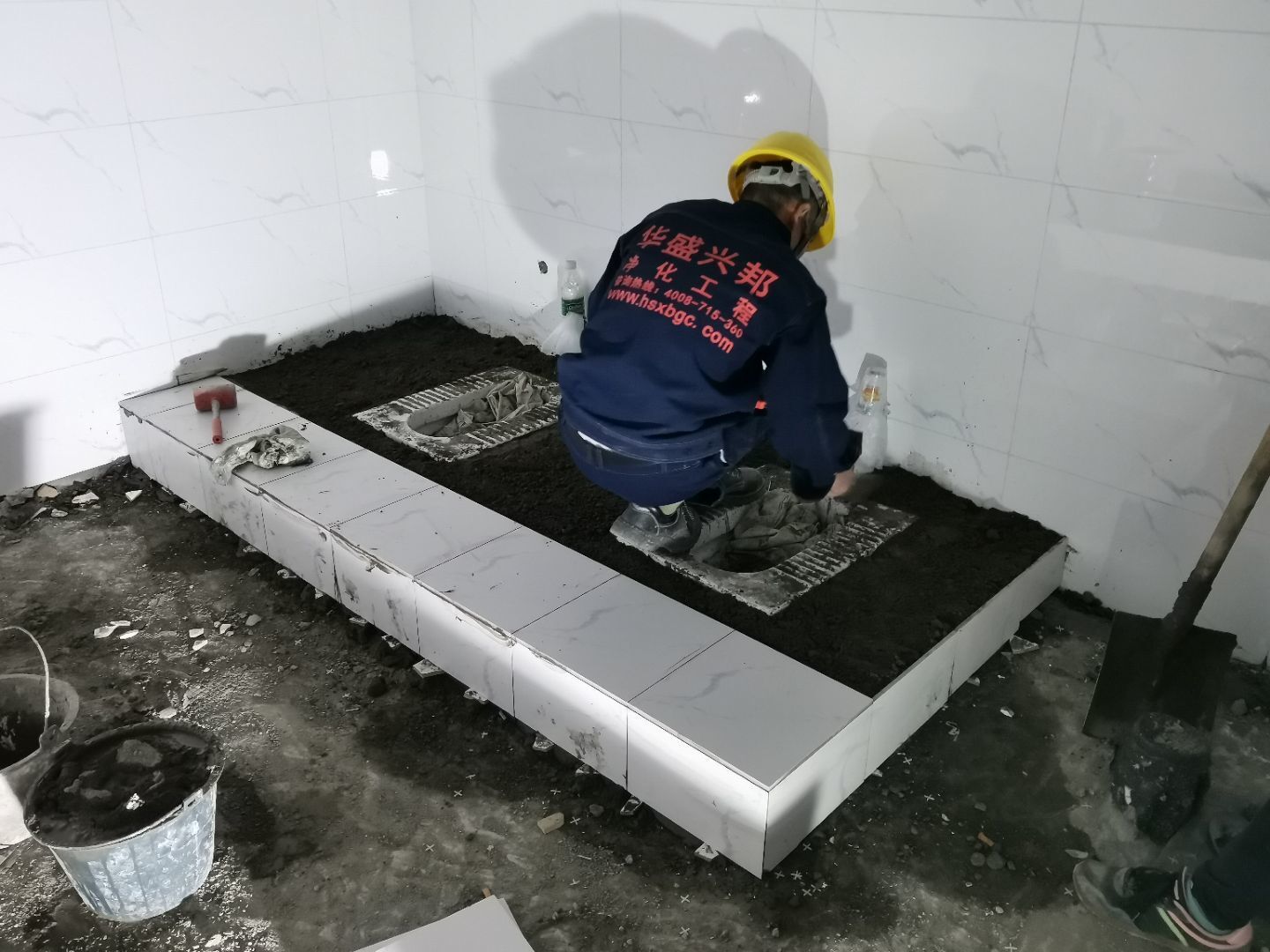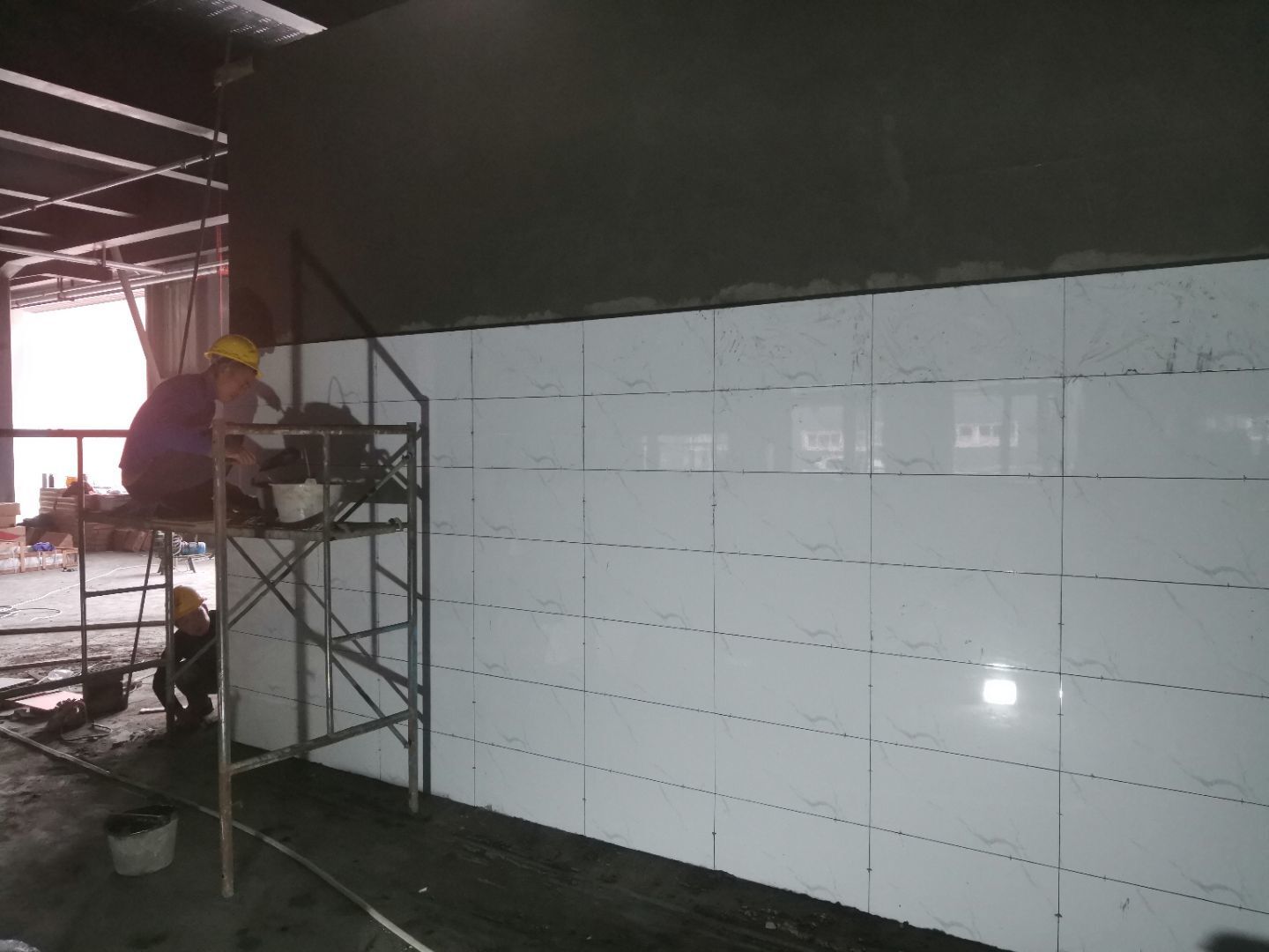 1,彩鋼頂板完成60%, 2,衛(wèi)生間貼磚完成80%, 3,衛(wèi)生清理完成20%, 4,不銹鋼扶手完成。