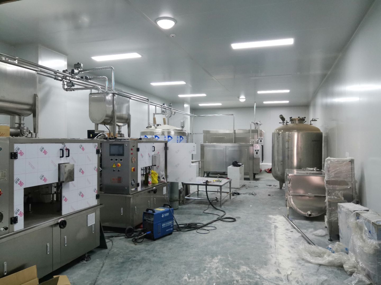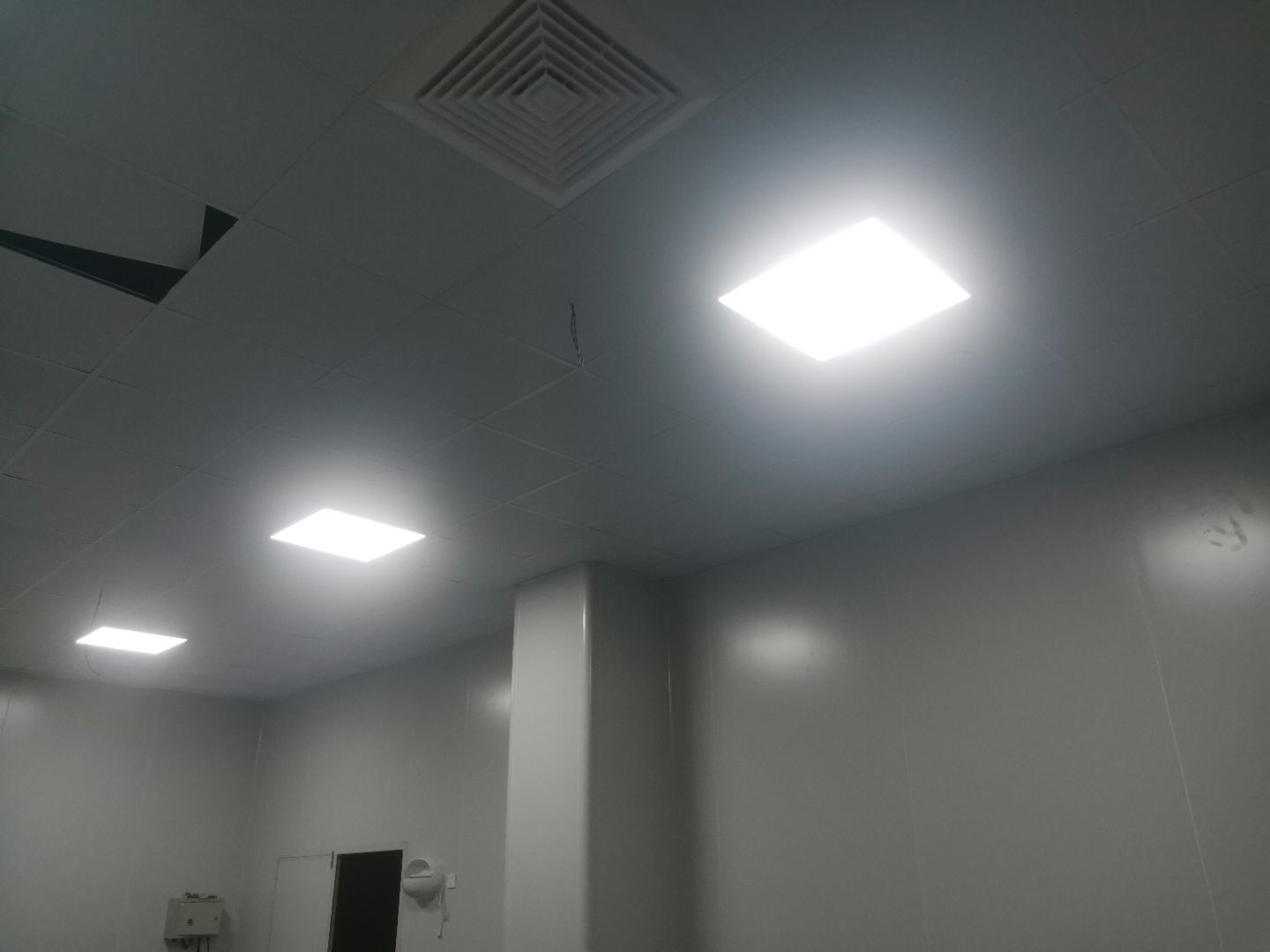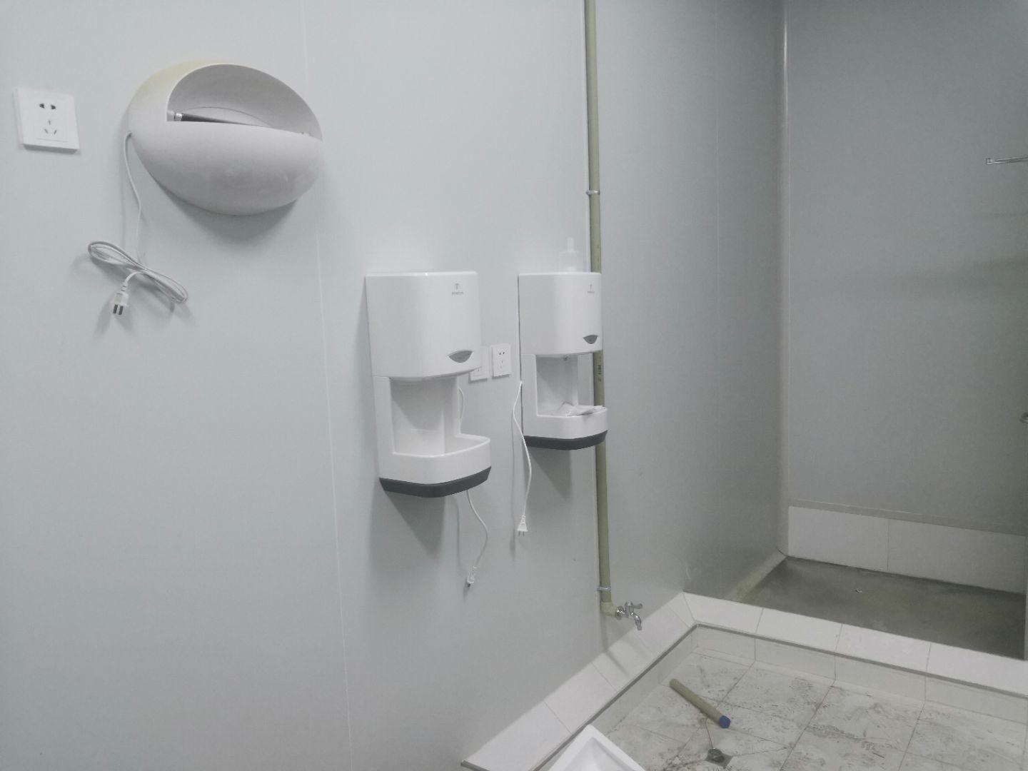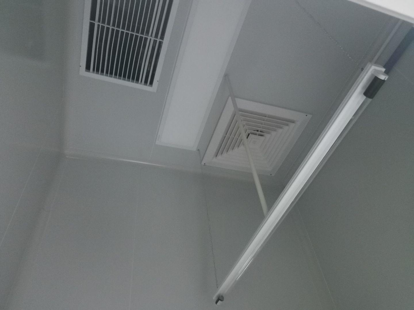 1.洗手槽安裝完成 2.臭氧發(fā)生器安裝完成3.滅蠅燈安裝完成 4.通風空調完成75%。