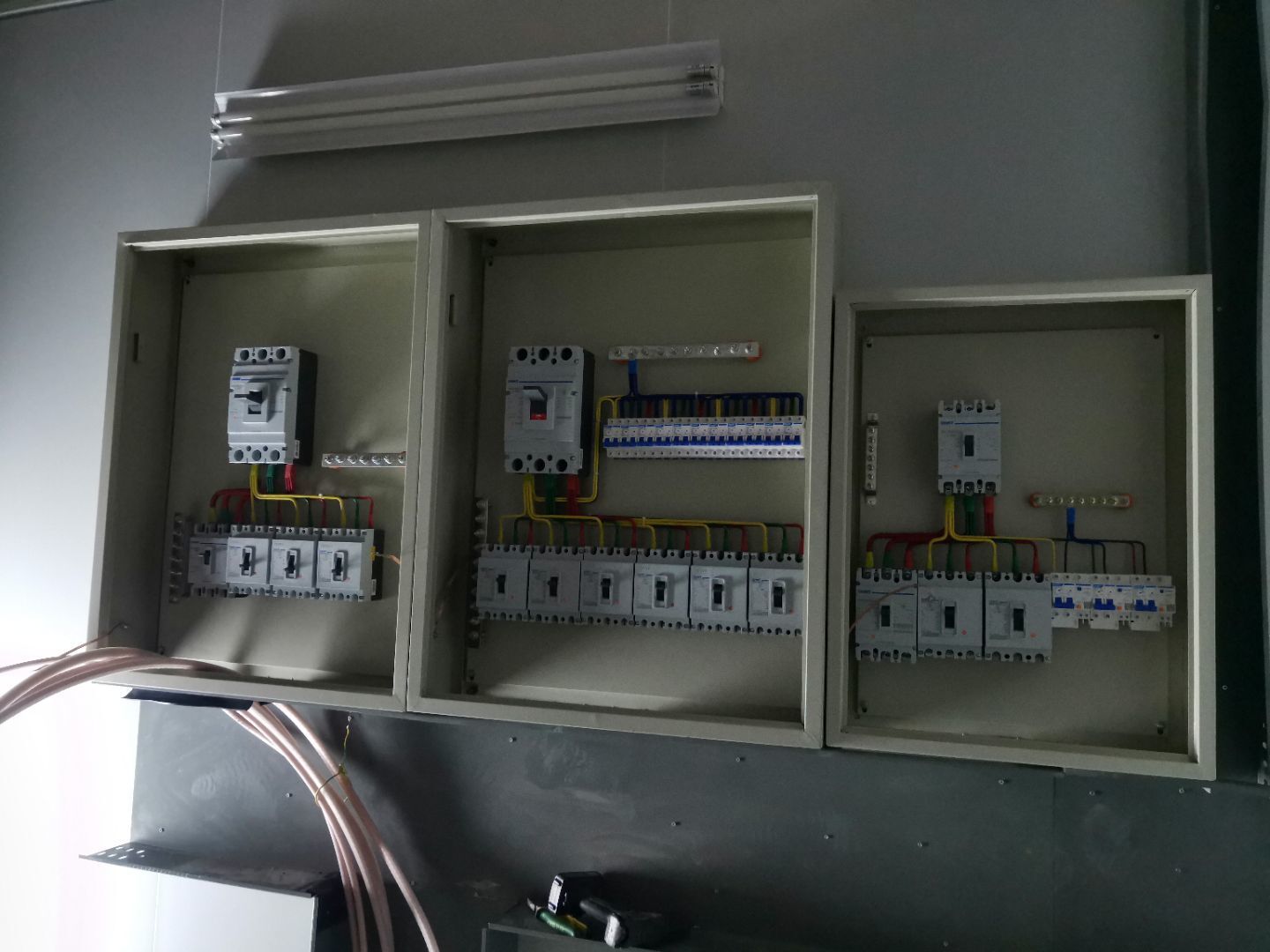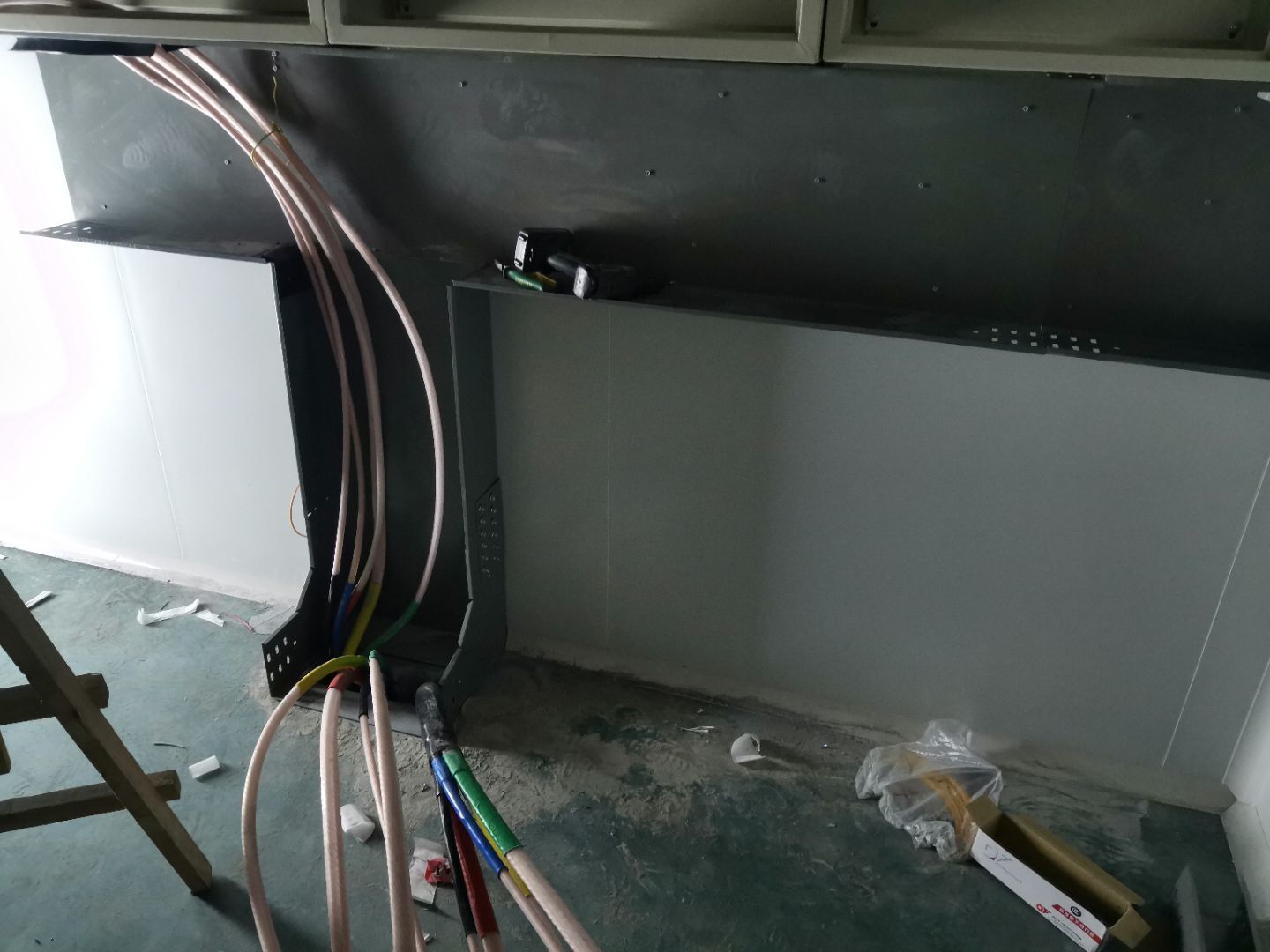 1、動力電安裝完成50%, 2、通風百葉安裝完成80%