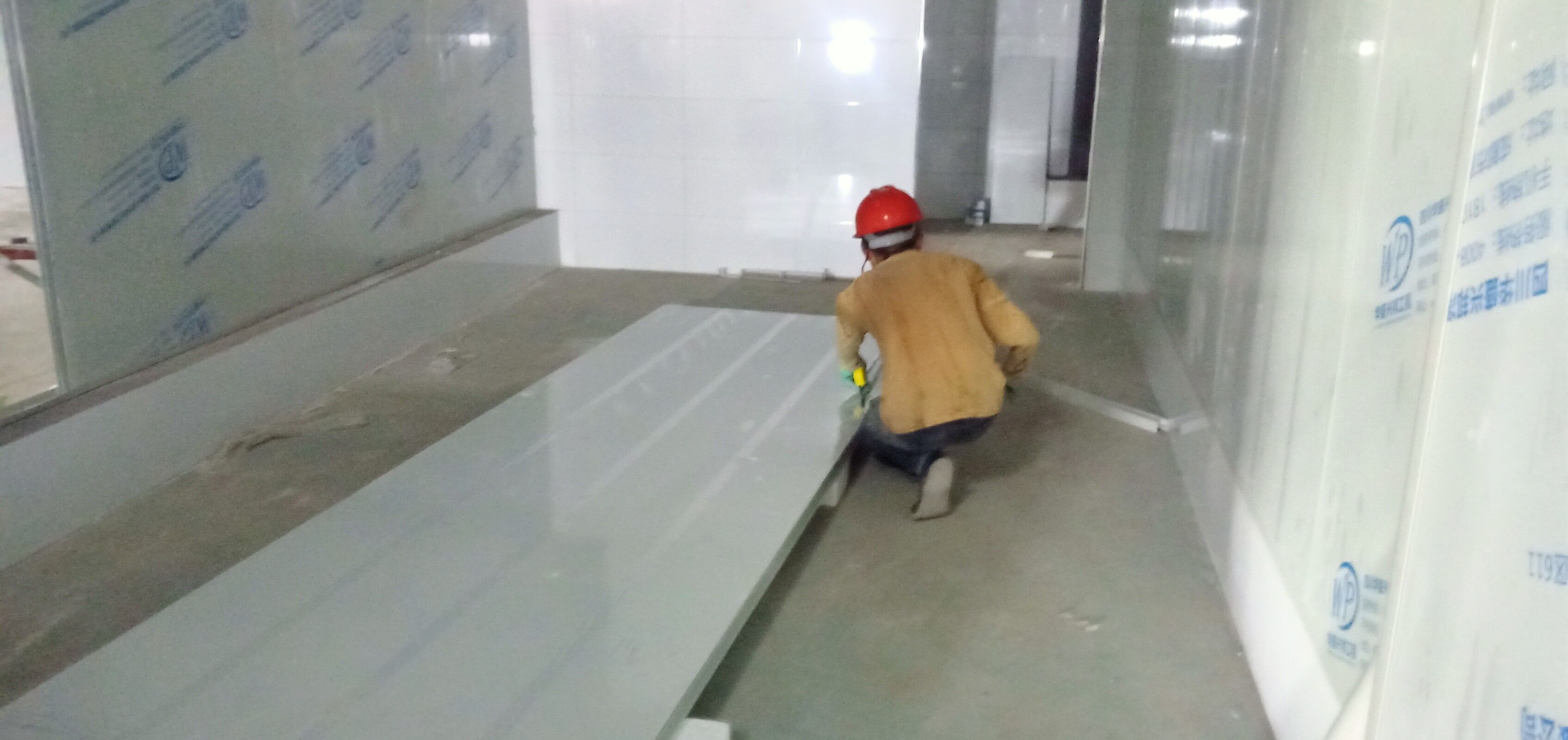 凈化車間墻面施工完成,吊頂燈具施工完成