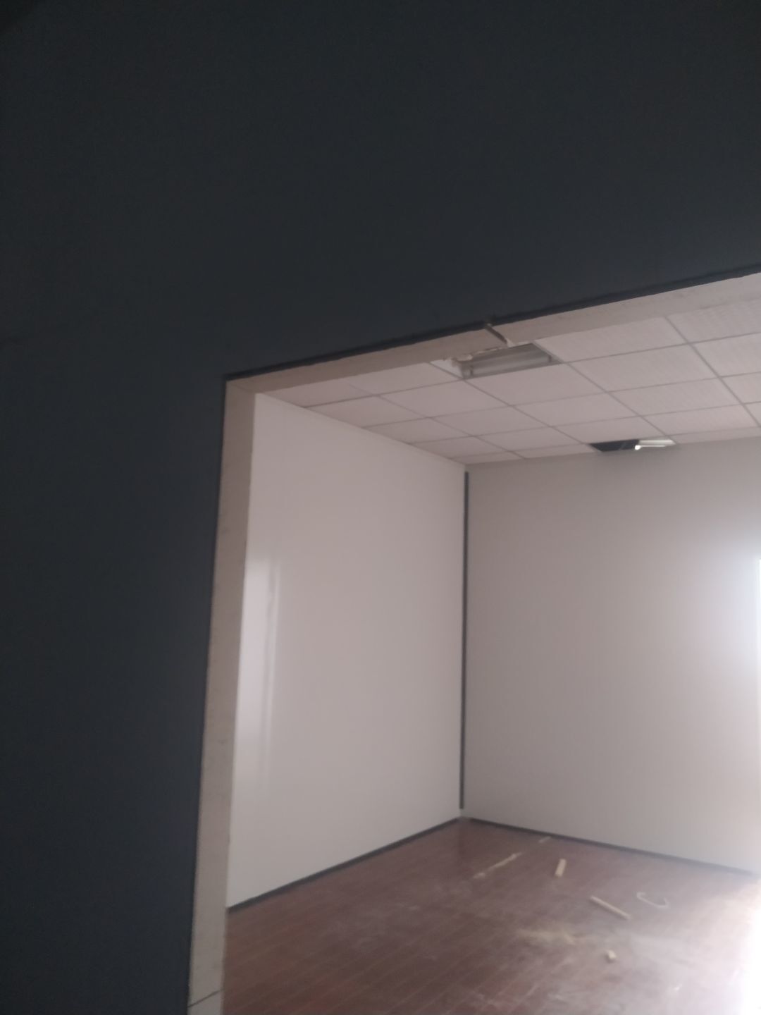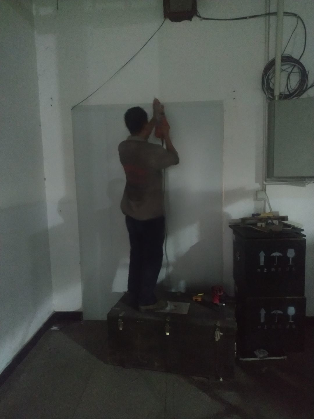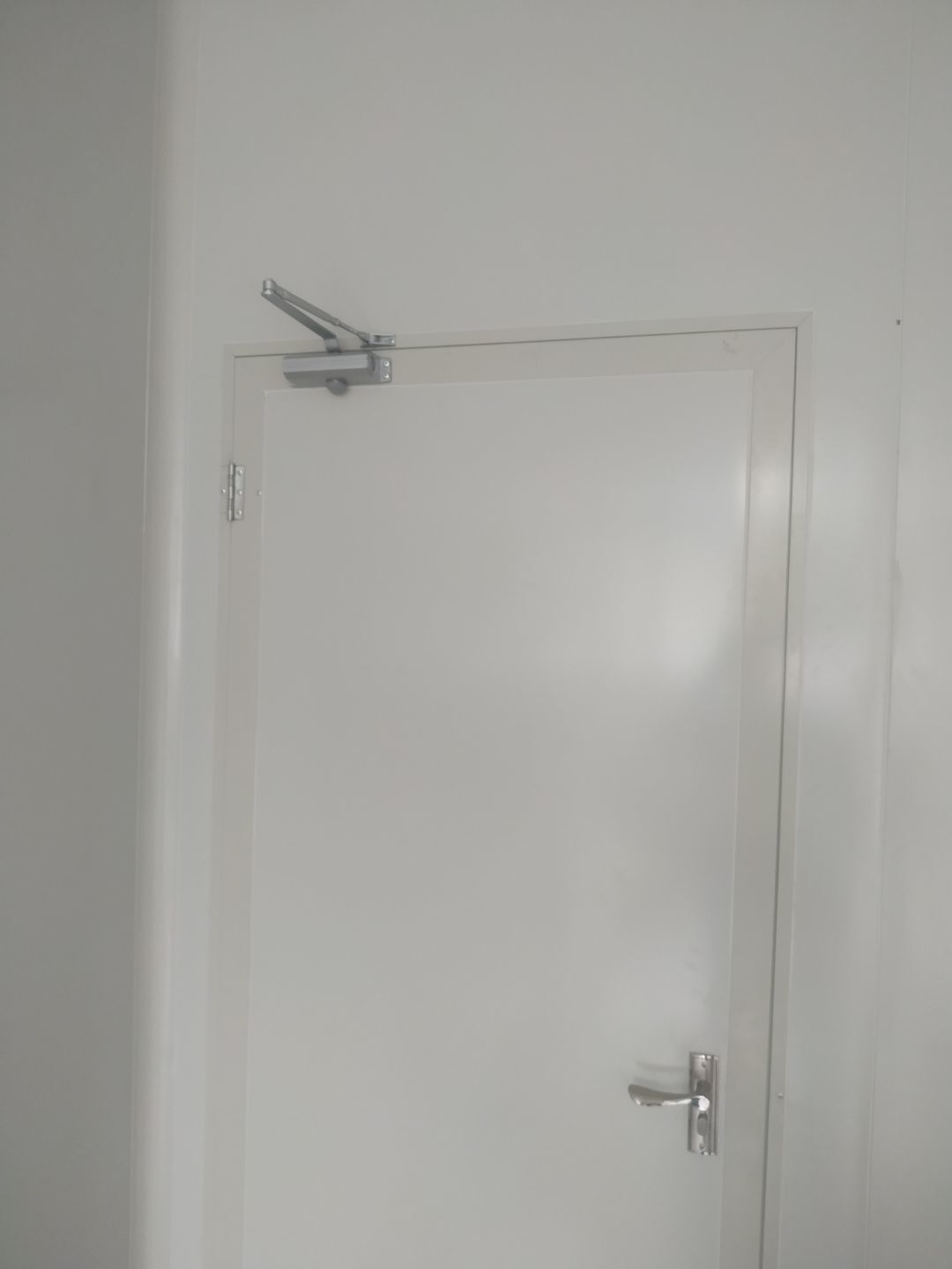1.門安裝完成,擋鼠板安裝完成,彩鋼收尾結束。2.照明燈換氣扇安裝完成95%,紫外線燈安裝完成,插座安裝完成。