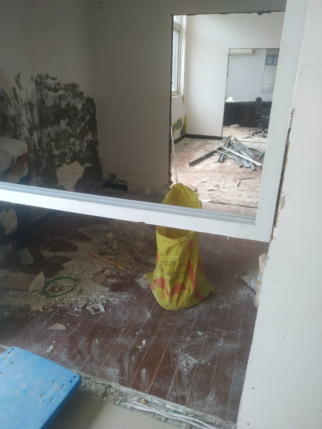 暗埋排水管和給水管地面恢復完成;門洞開洞完成;靠外墻內側墻面鏟除完成,刷界面劑完成。