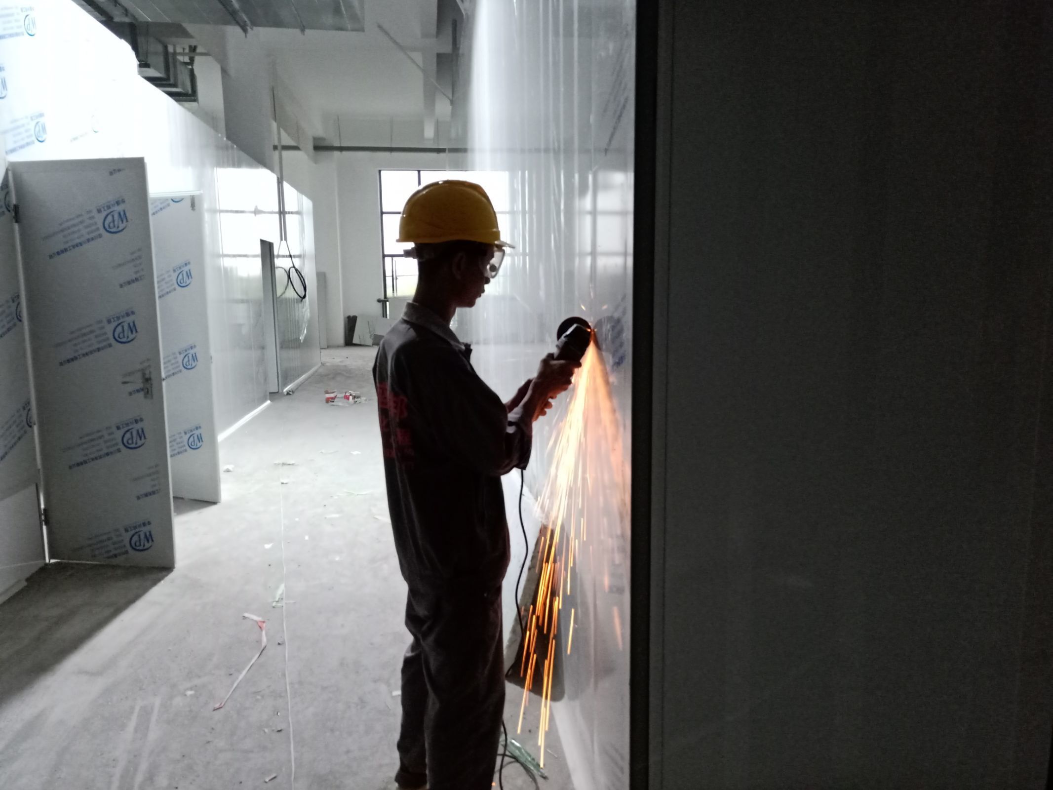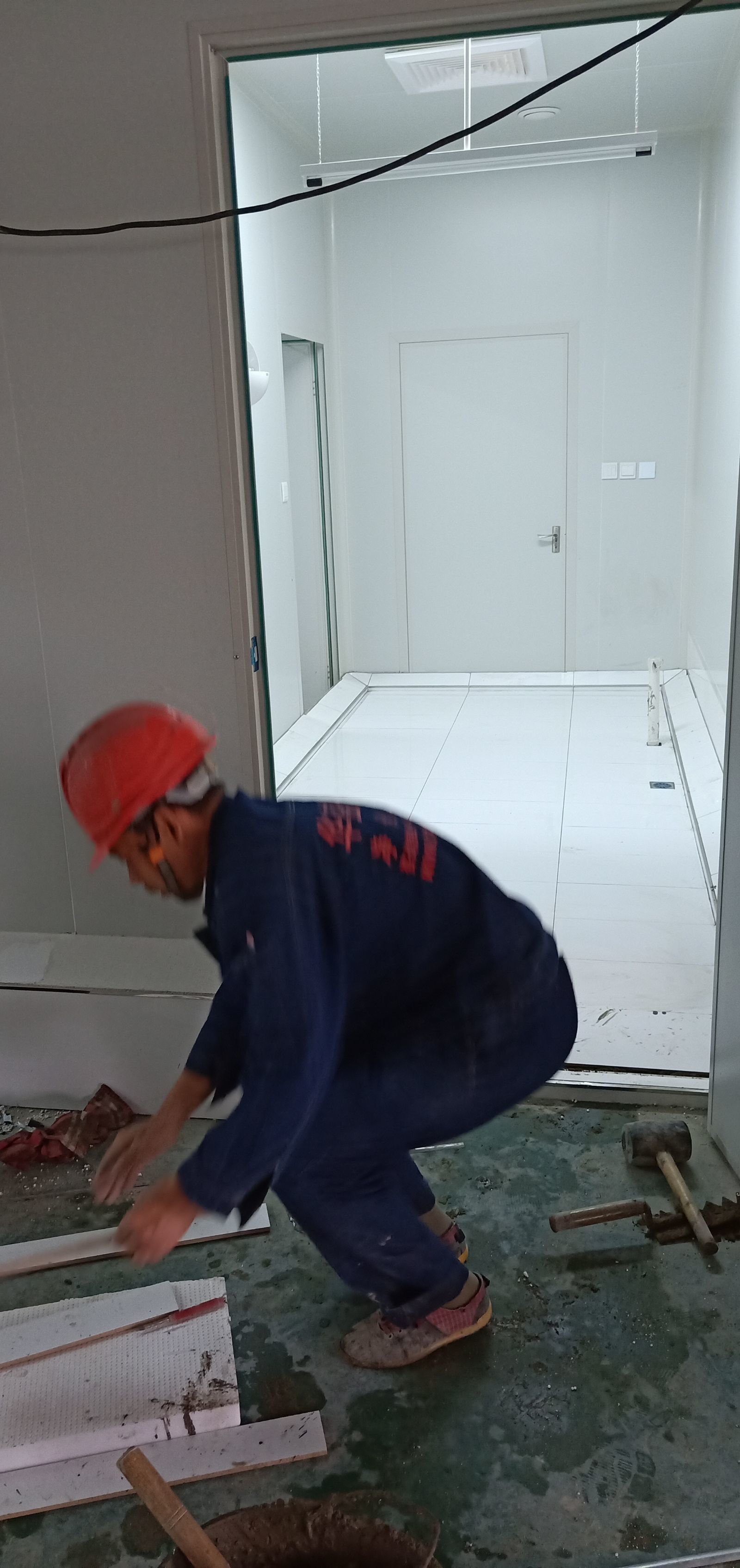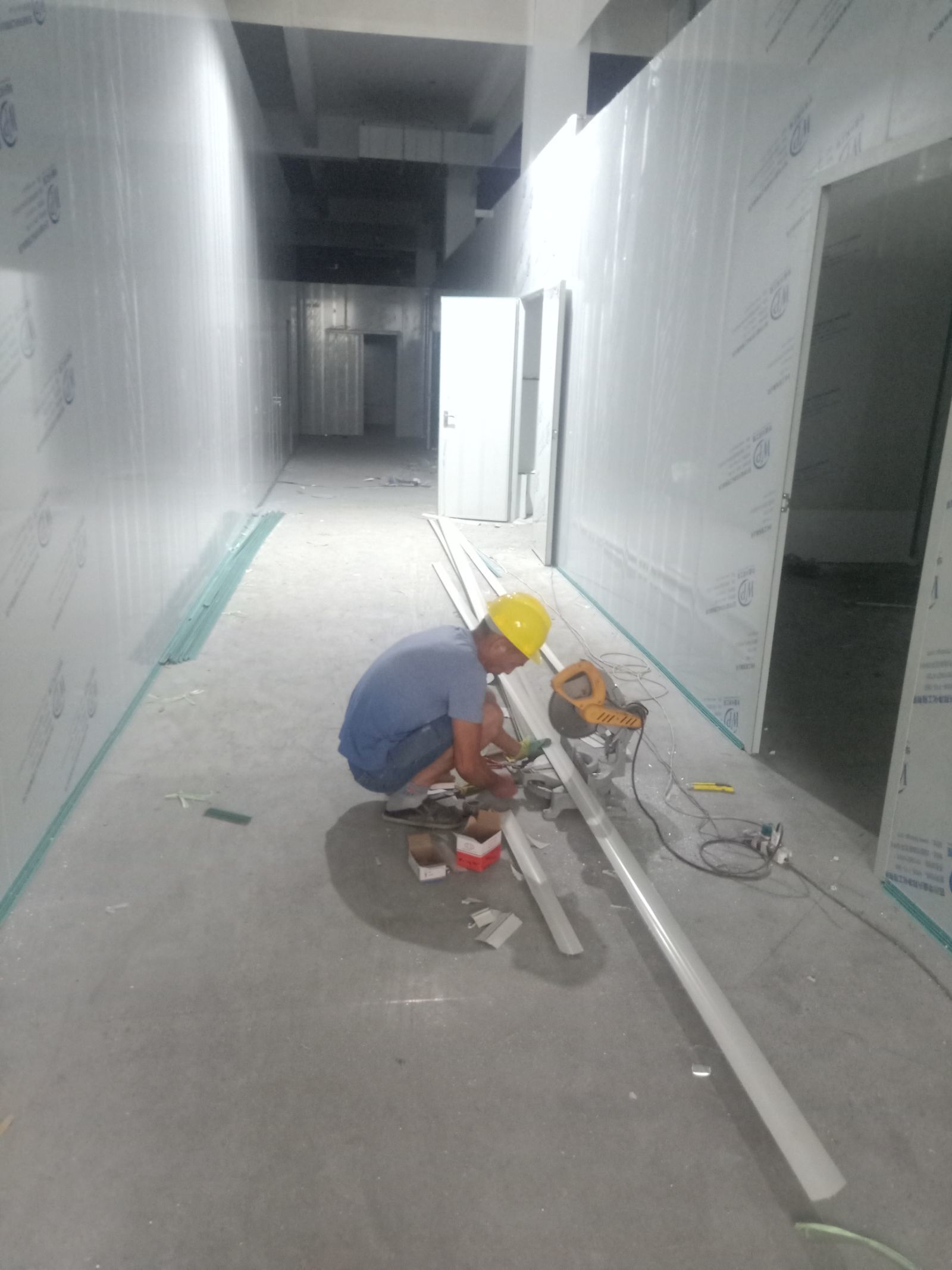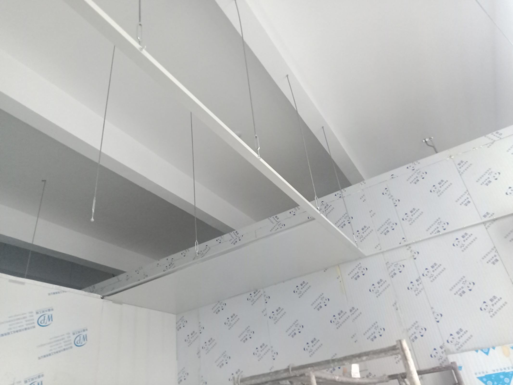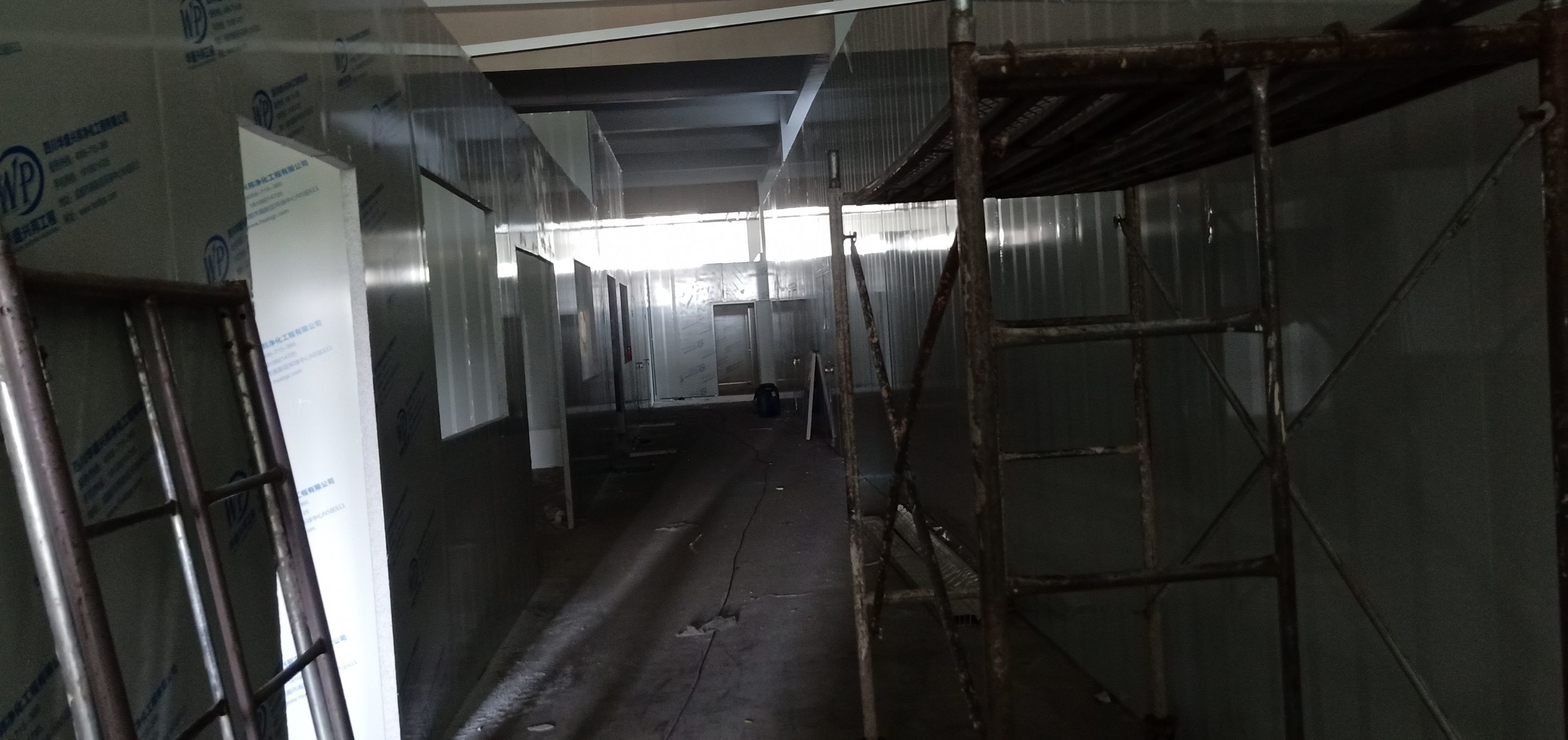 1.三防板吊頂材料到場。 2.彩鋼板吊頂材料到場,吊上樓。 3.彩鋼板吊頂完成百分之五。 4.線盒開孔完成百分之六十。 5.墻磚鋪貼完成百分之八五。 6.污水池砌磚完成百分之六十。