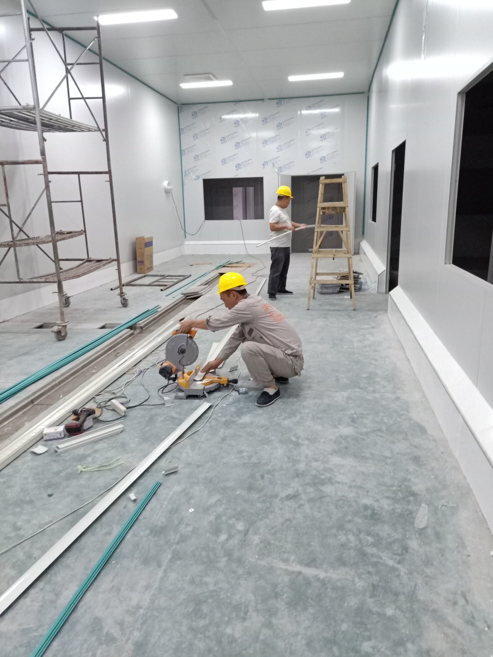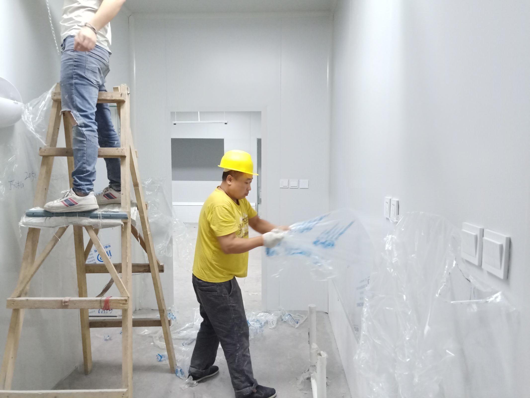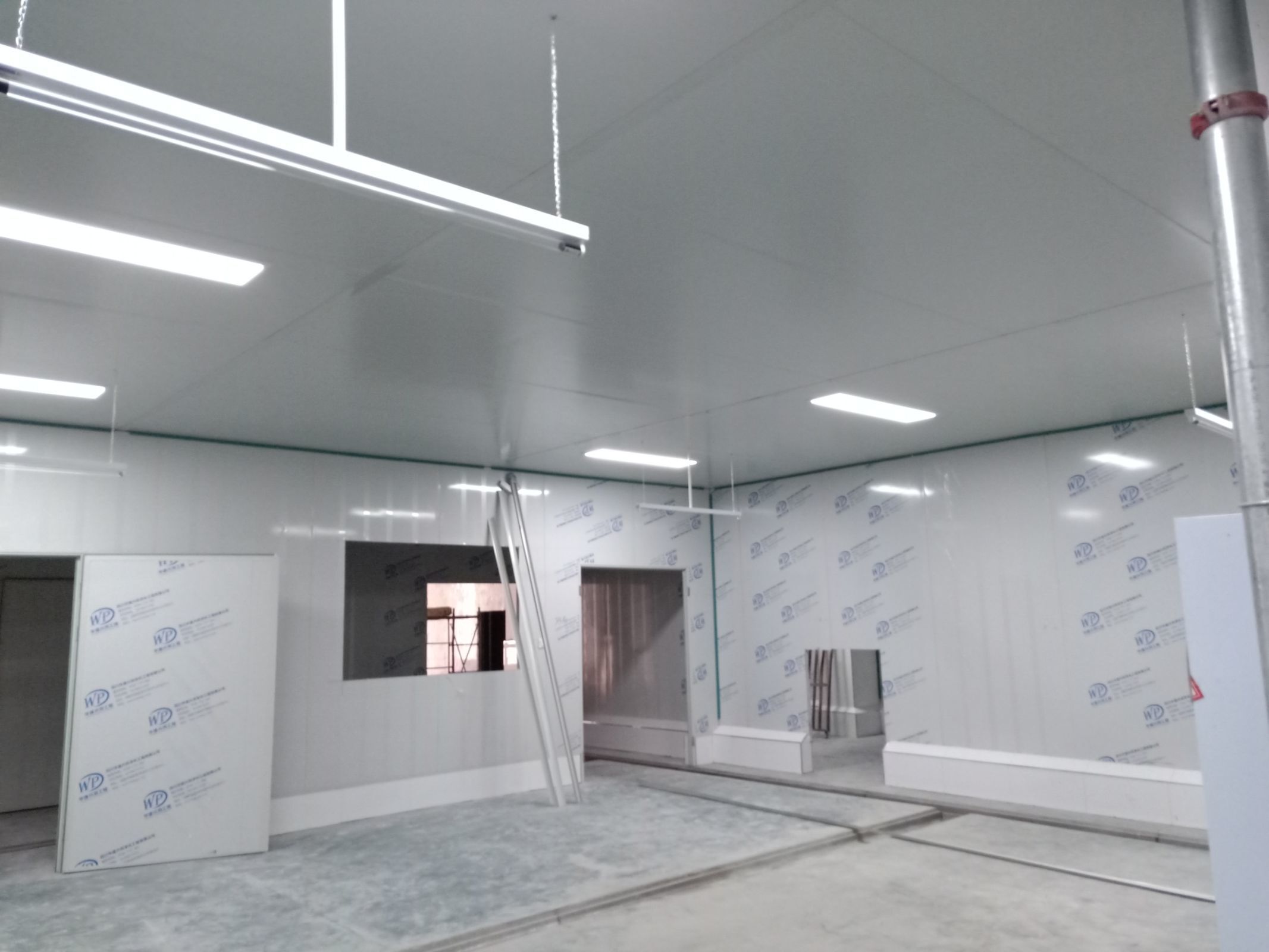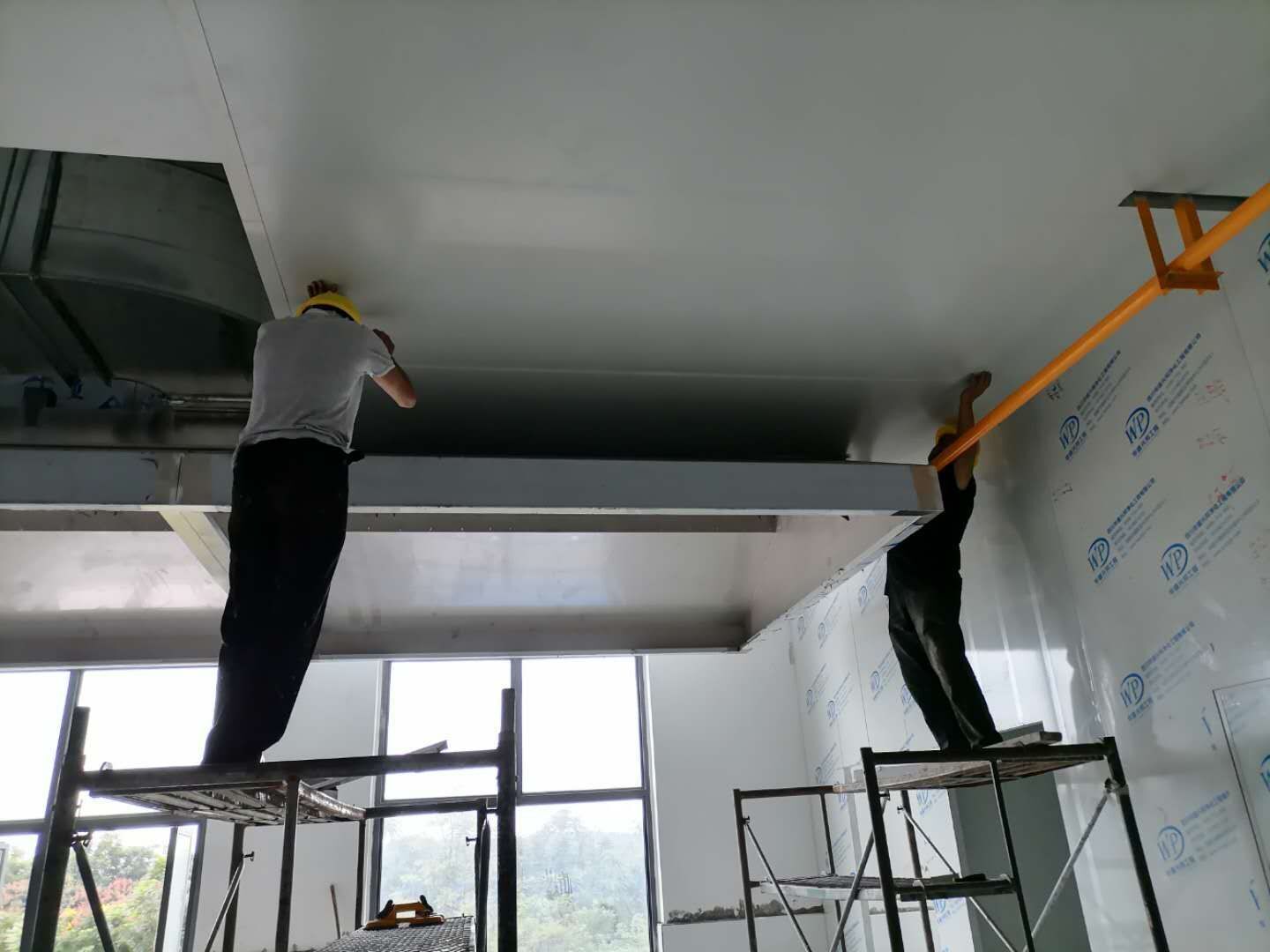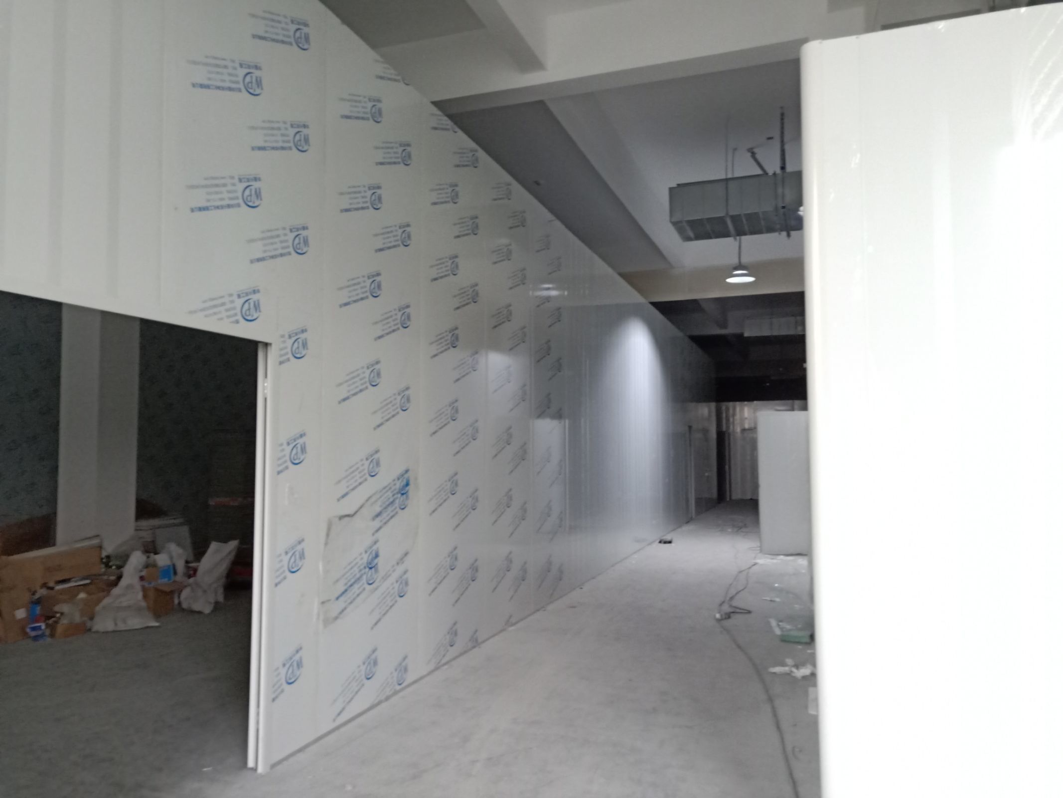 1.三防板吊頂材料到場。 2.彩鋼板吊頂材料到場,吊上樓。 3.彩鋼板吊頂完成百分之五。 4.線盒開孔完成百分之六十。 5.墻磚鋪貼完成百分之八五。 6.污水池砌磚完成百分之六十。
