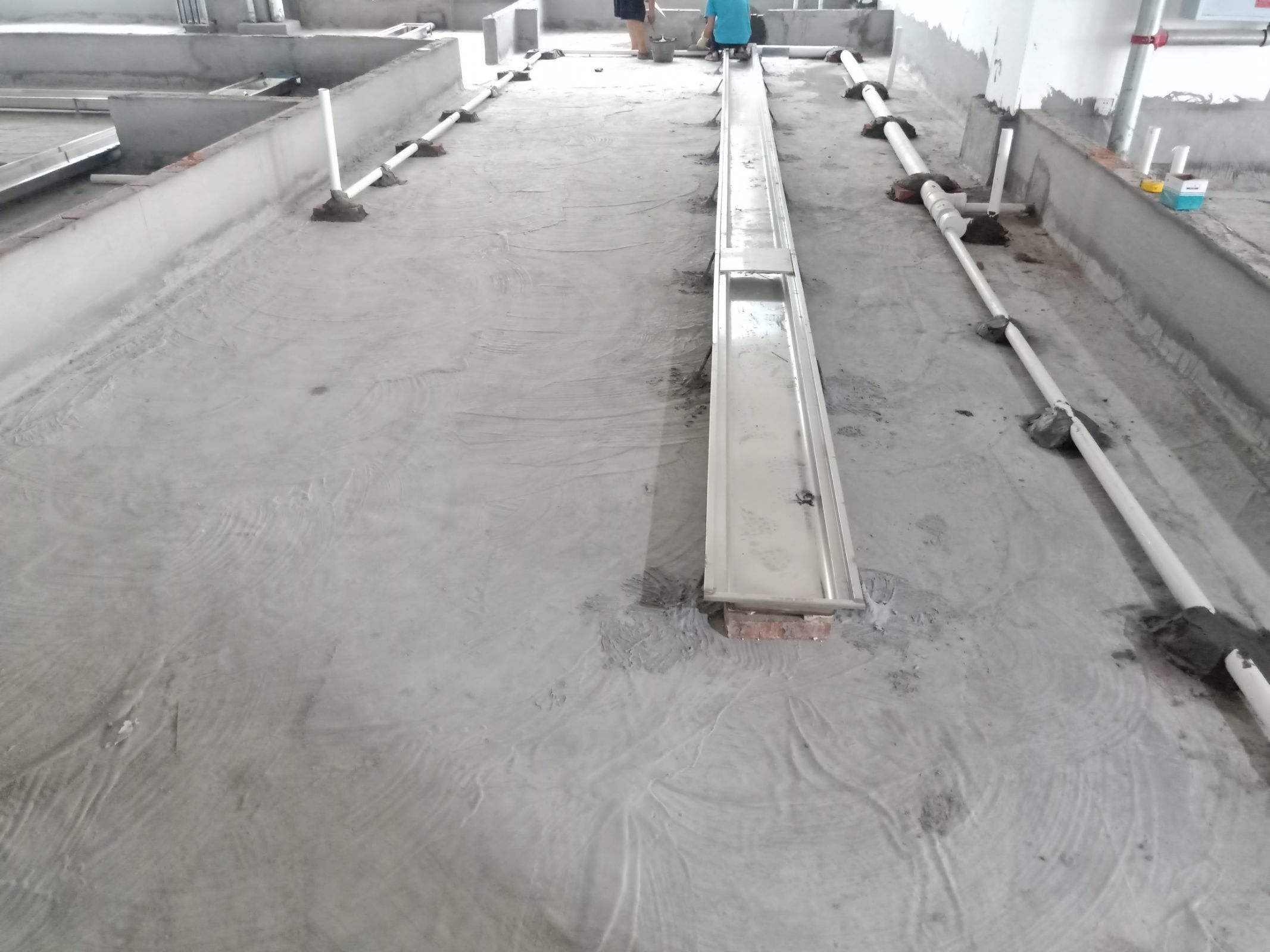 1.污水設(shè)備平臺關(guān)模完成。 2.水電安裝完成百分之65。 3.圓弧膠條完成百分之65。 4.污水池回填完成 5.墻磚鋪貼完成百分之98
