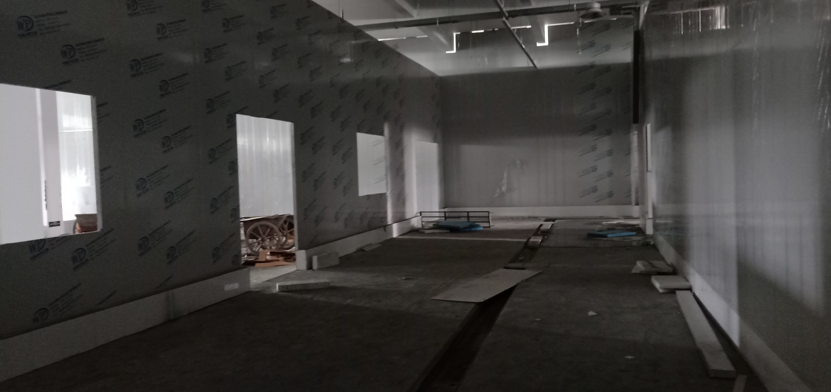 1.污水池蓋板澆筑完成 2.水電安裝完成百分之45 3.墻邊斜磚鋪貼完成百分之77 4.物流門安裝完成百分之65 5.有煙罩房間吊頂完成百分之40