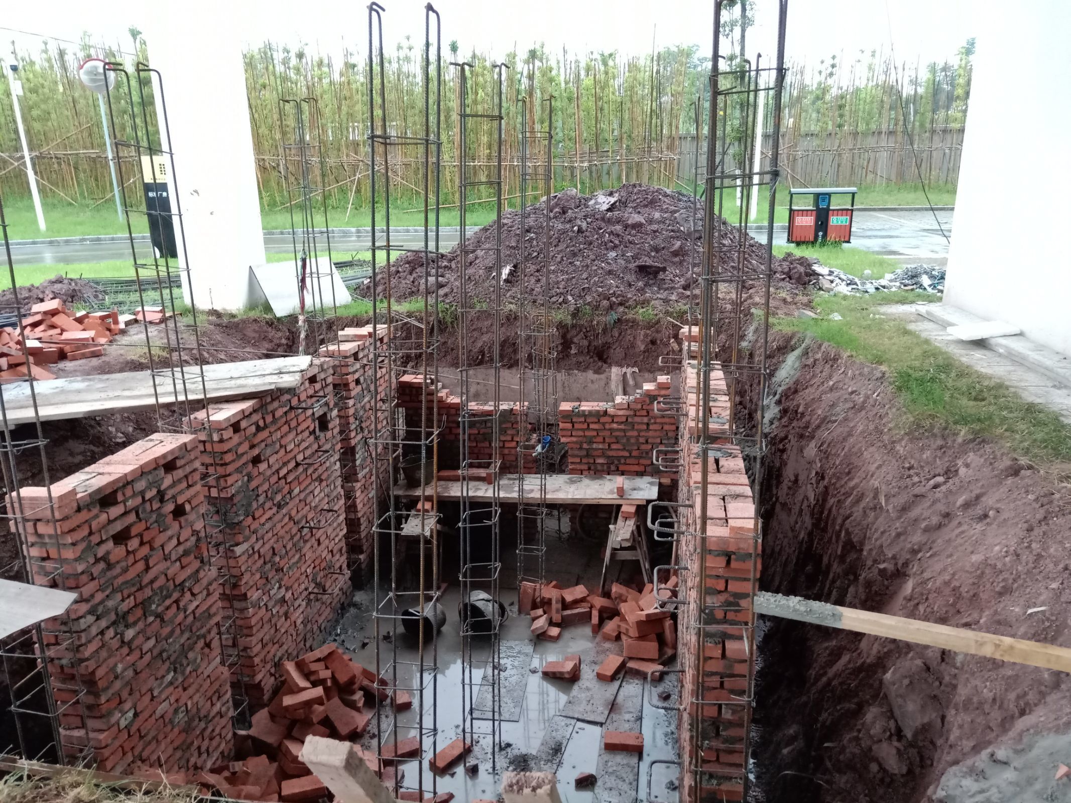 1.污水池回填施工 2.污水池二層平臺柱子關(guān)模施工 3.水電安裝 4.圓弧膠條施工 5.墻磚施工