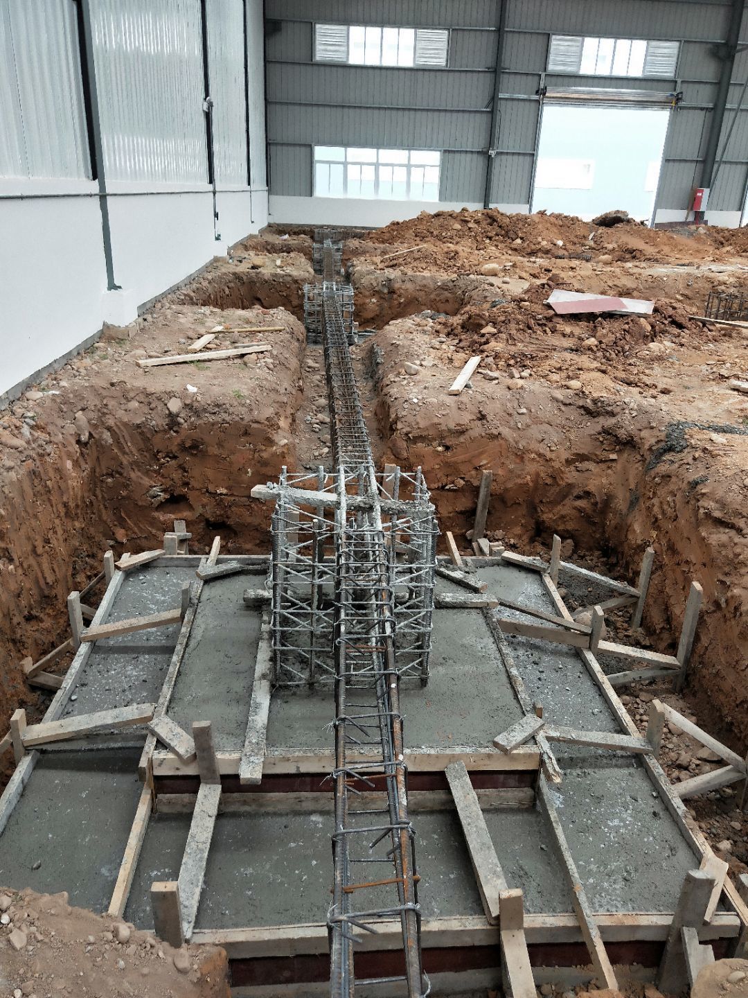 1,一樓加氣塊砌筑完成40%, 2,二樓臨時增加實體墻抹灰完成90%, 3,材料轉運二樓, 4,設備基礎預支養護。