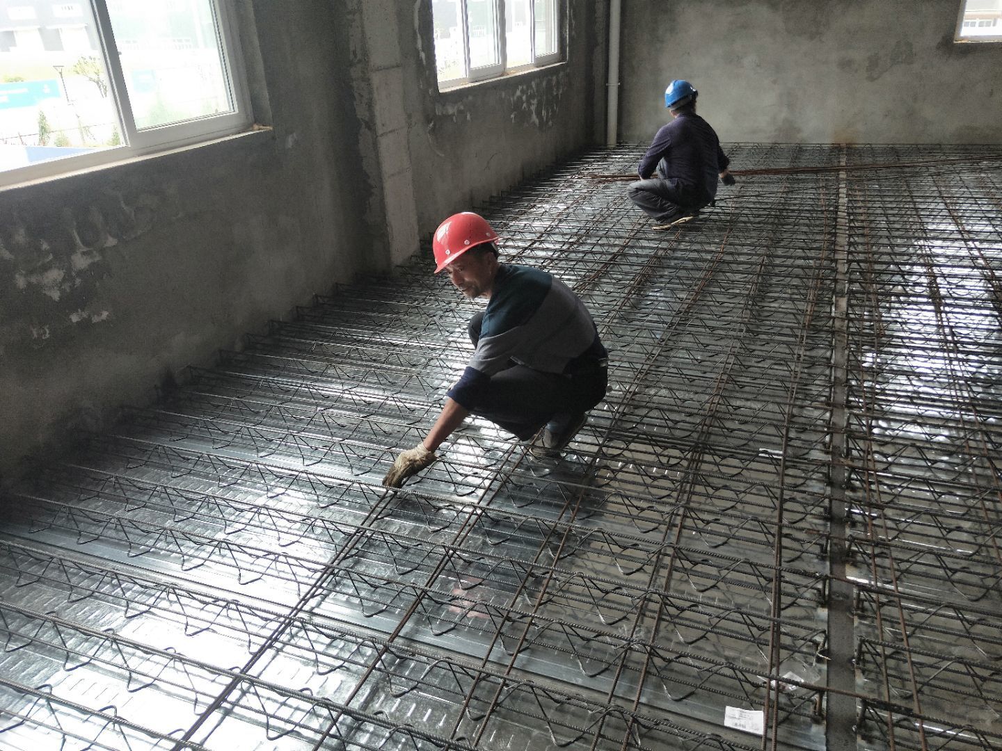 1、鋪設樓層板 2、綁扎鋼筋 3、樓梯焊接加固