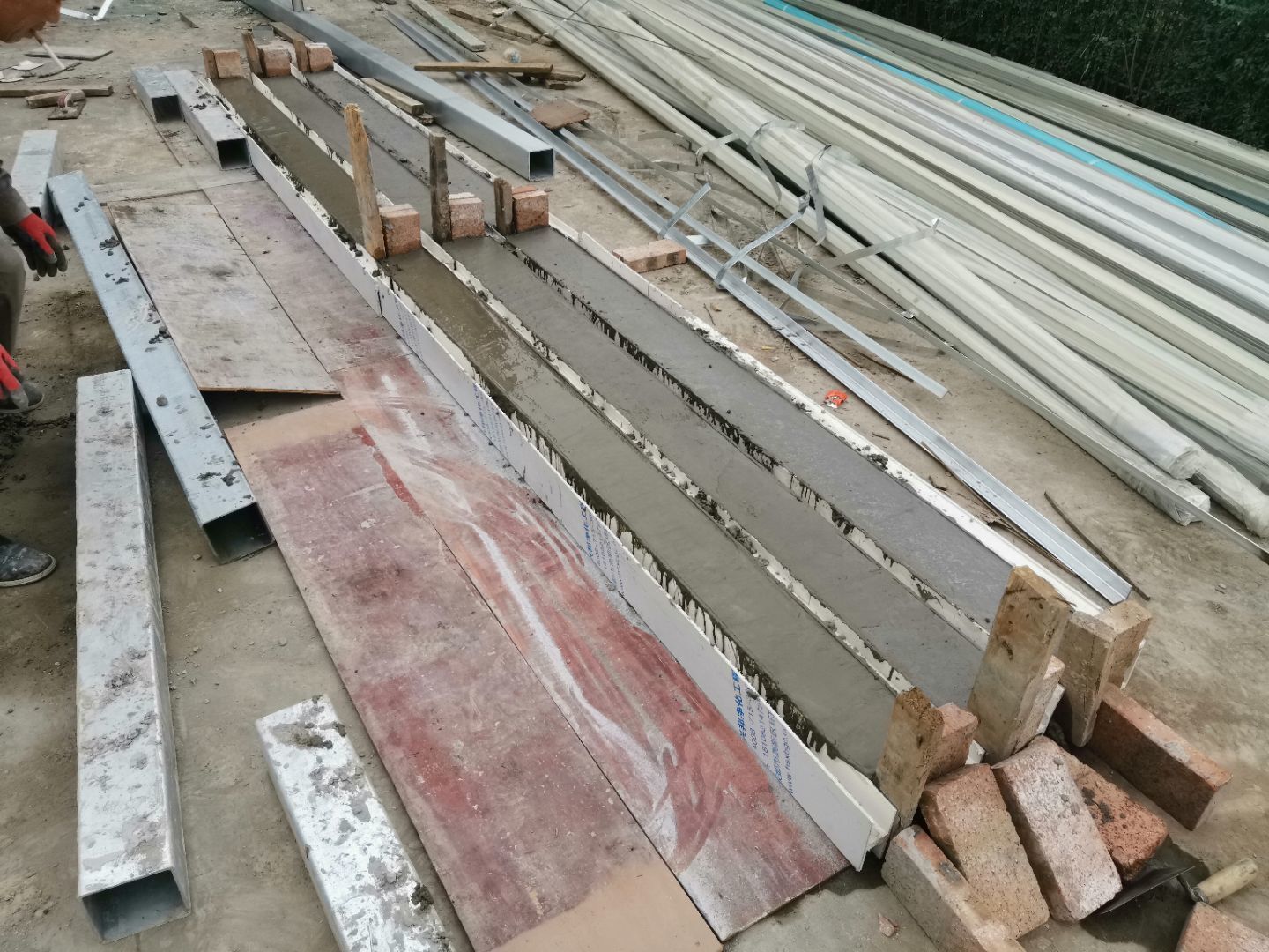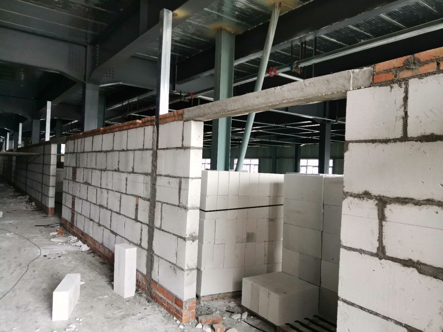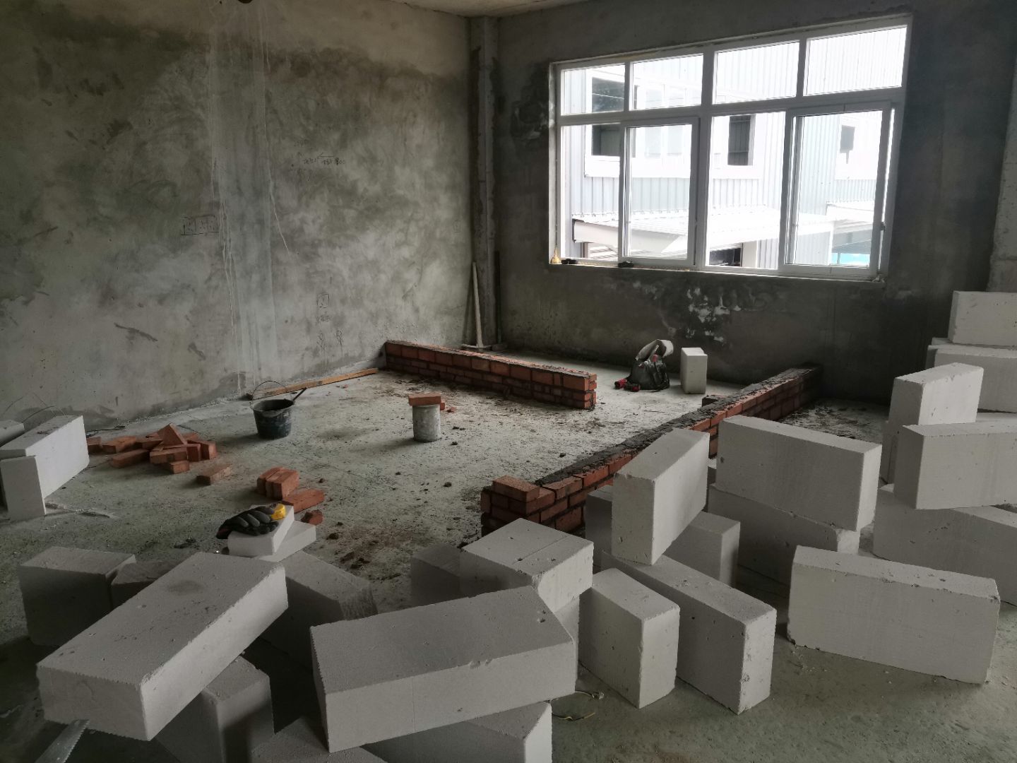 1、加氣塊構造柱預制安裝,完成75%, 2、固化地坪完成, 3、二樓擋水墻磚砌完成25%。