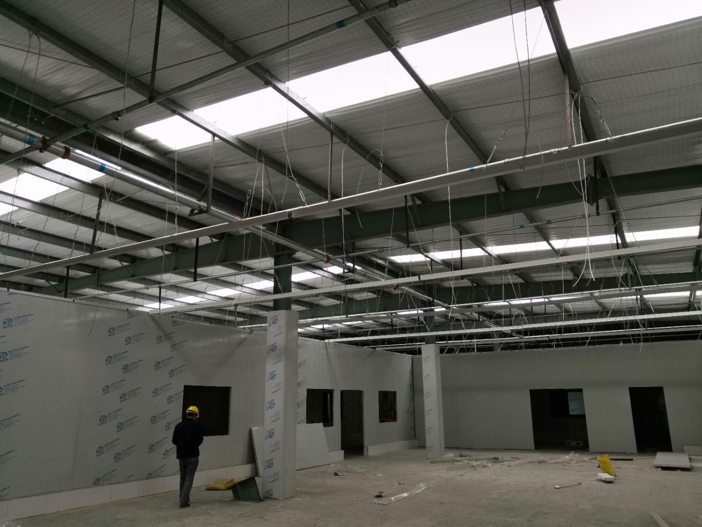 1,一樓抹灰基本完成, 2,二樓加氣塊砌筑完成40%, 3,二樓彩鋼墻板完成70%,頂板完成50%, 4,一樓水電完成90%,二樓完成15%