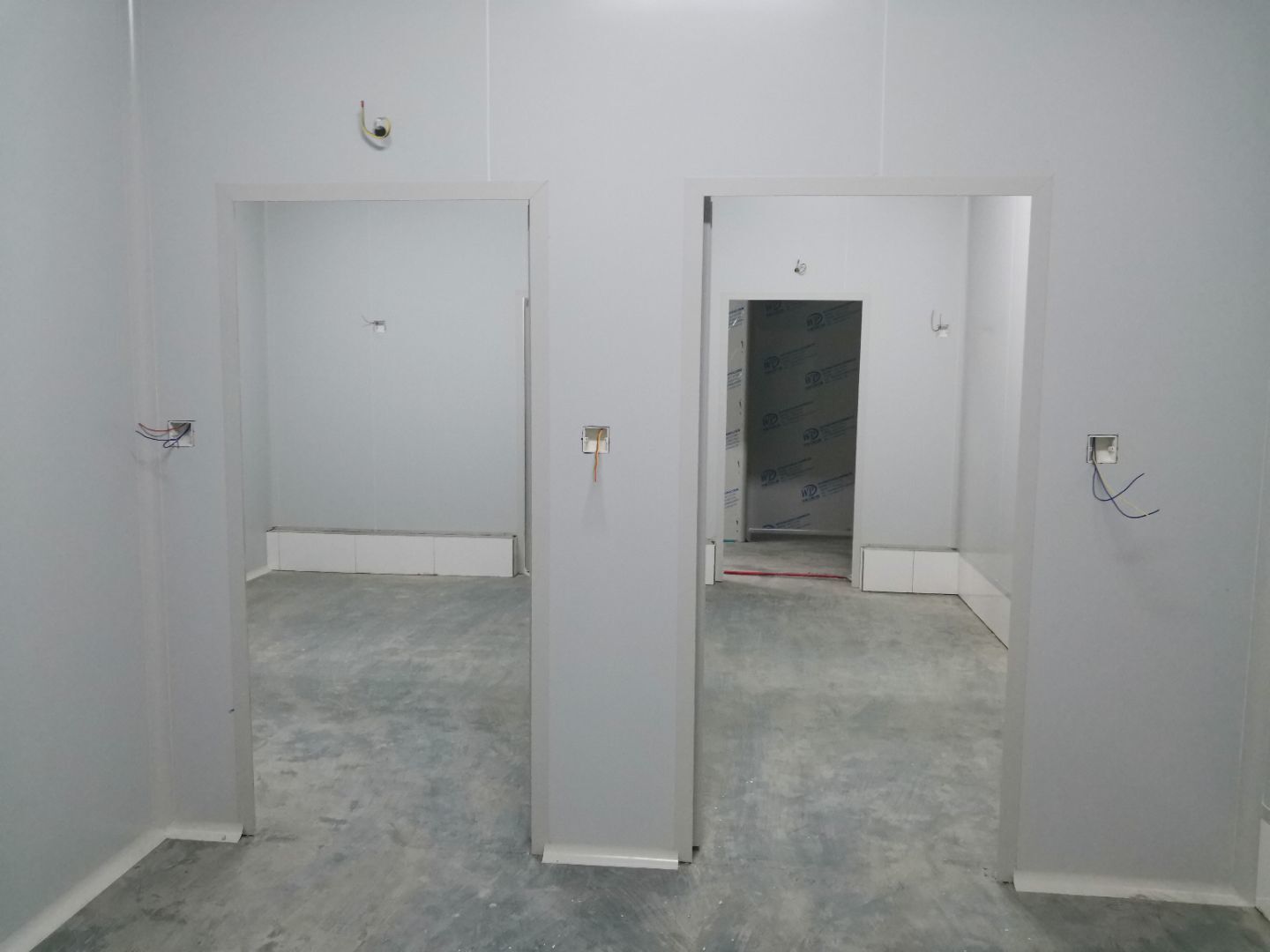 1,防火門安裝完成, 2,一樓彩鋼墻板完成90%,增項除外, 3,一樓衛生間貼磚完成50%, 4,水電安裝完成70%。