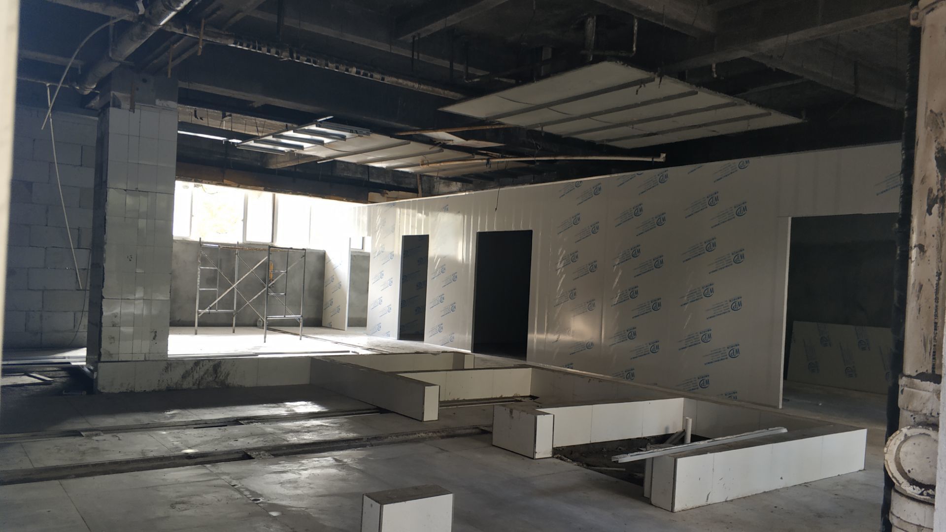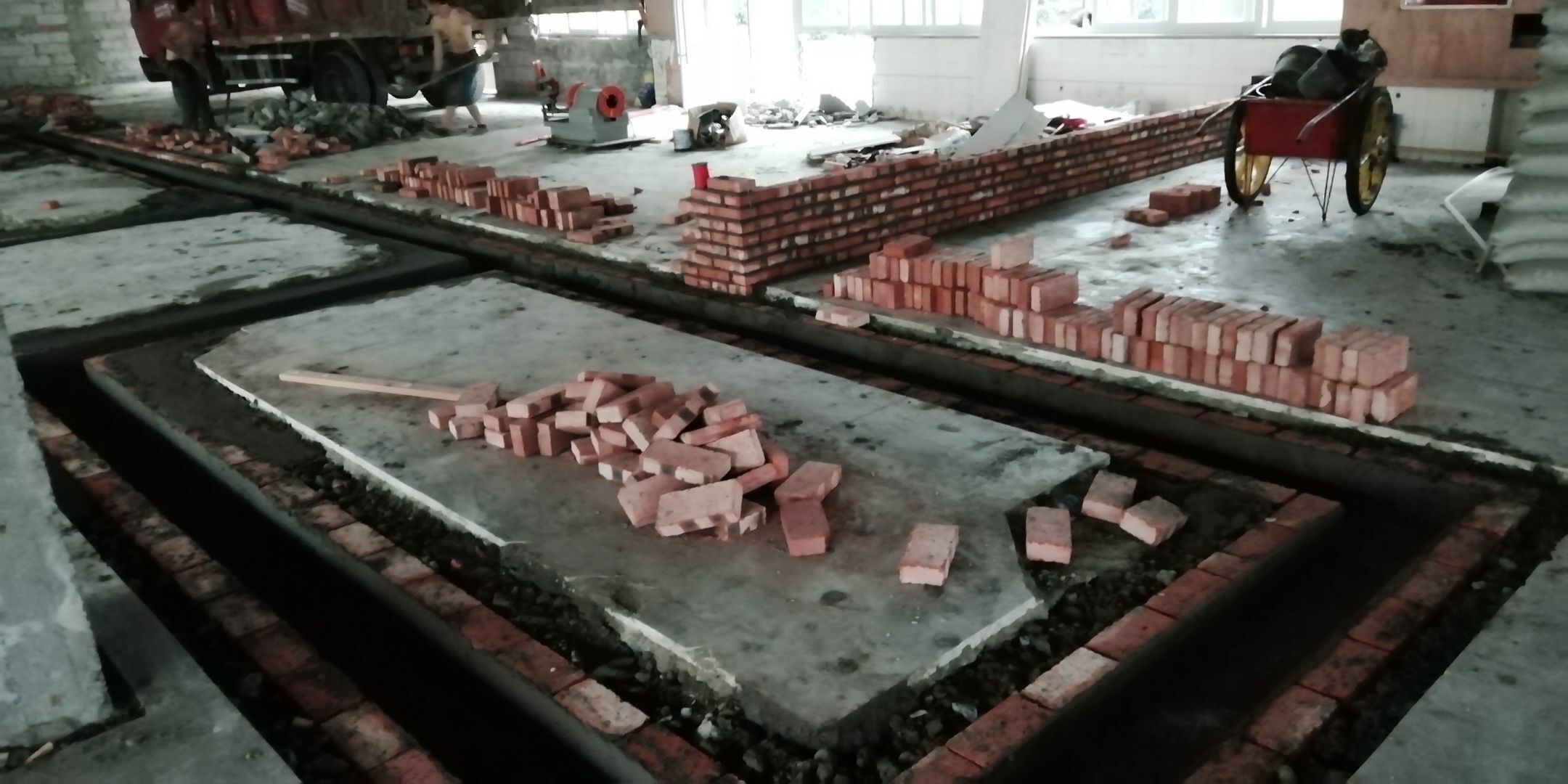 車間排水溝、擋水墻施工,車間地面鋪磚