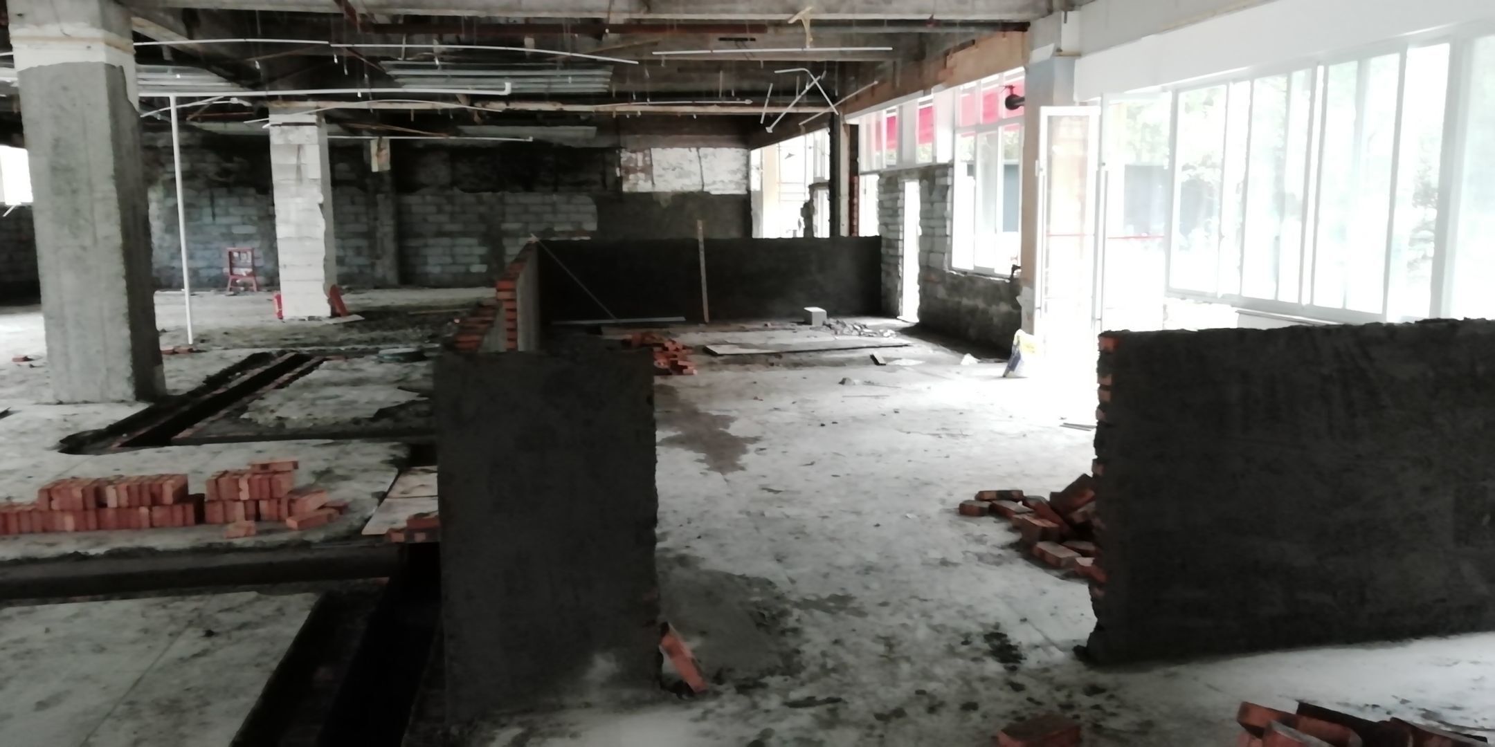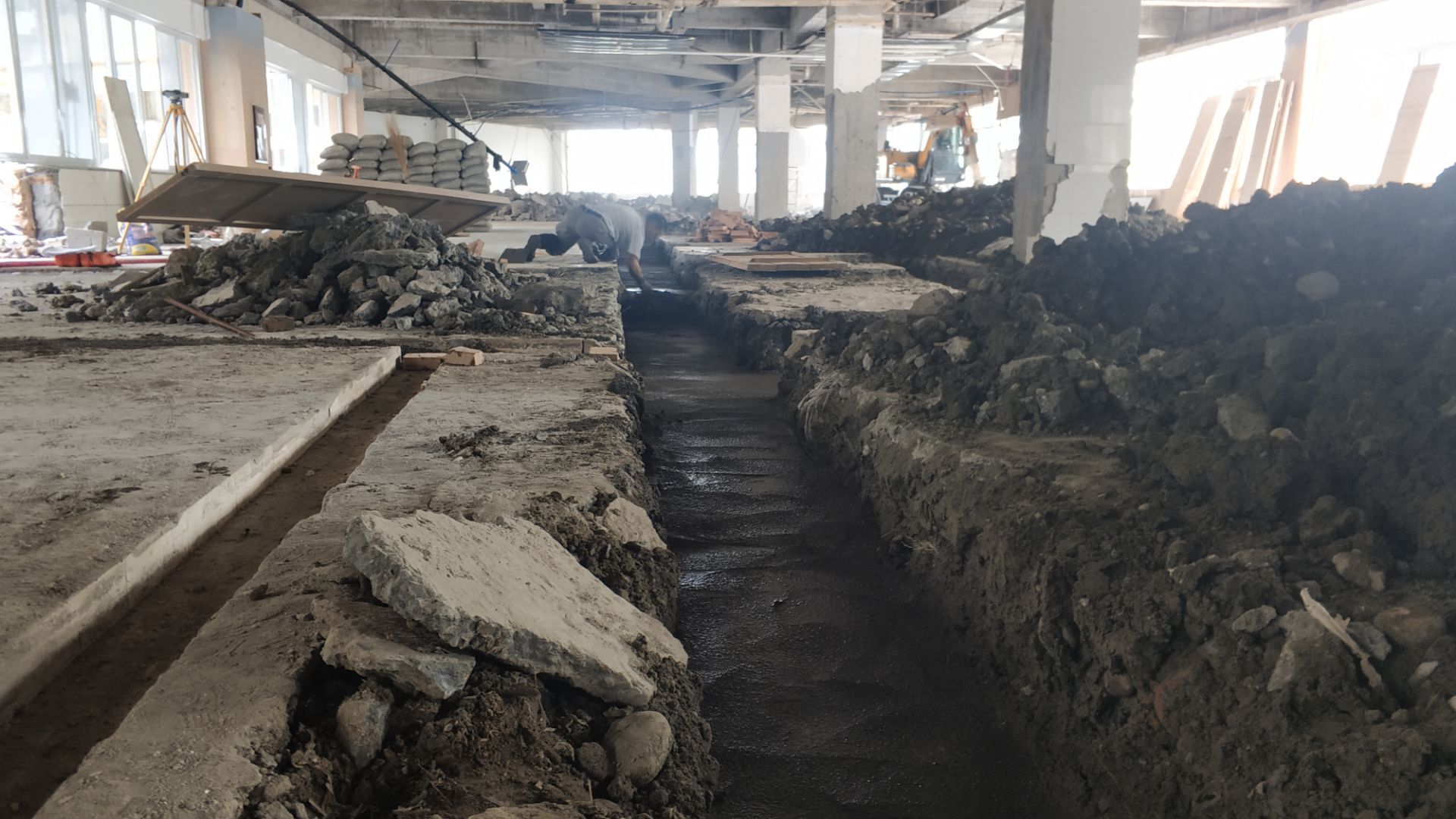 四川鼎力鑫食品有限公司車間施工現場,車間排水溝開挖,擋水墻施工