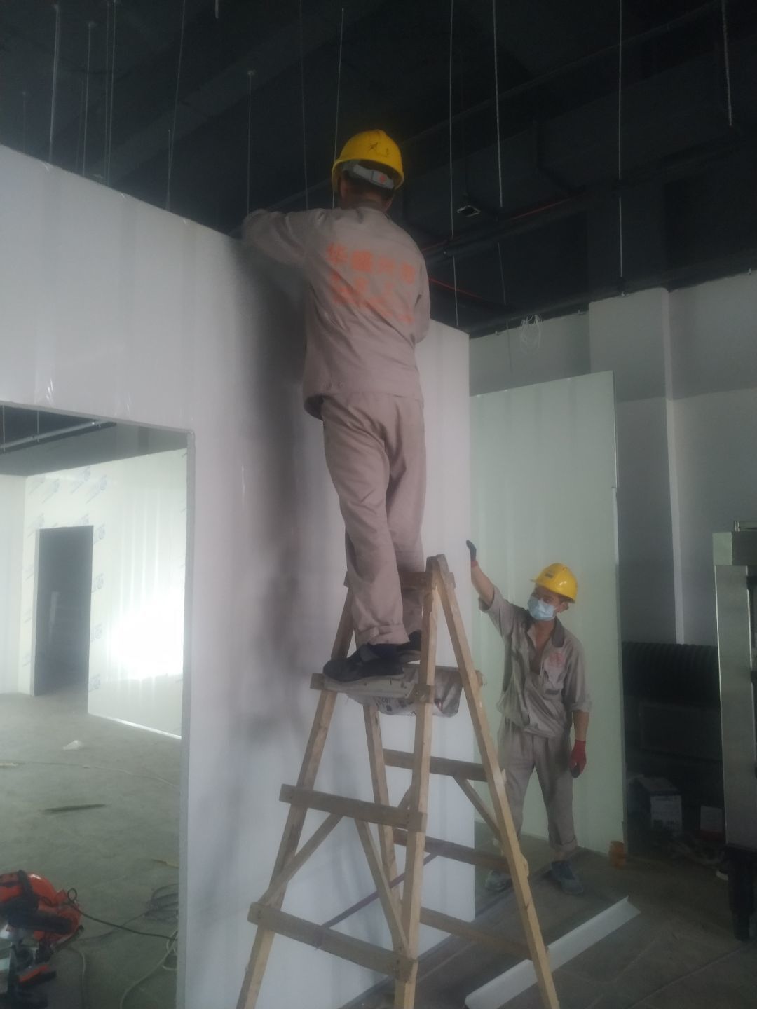 隔斷施工完成,車間吊頂施工