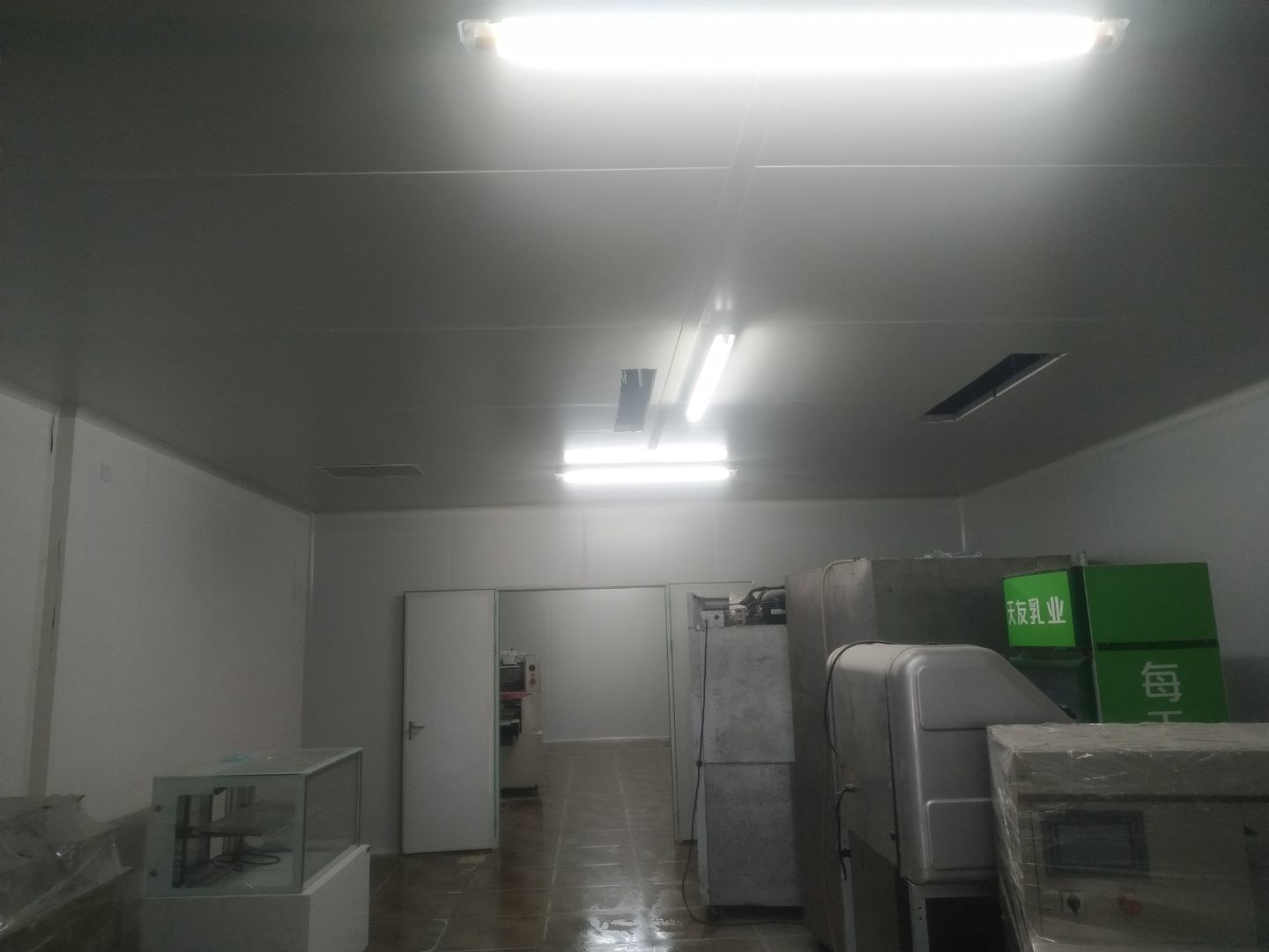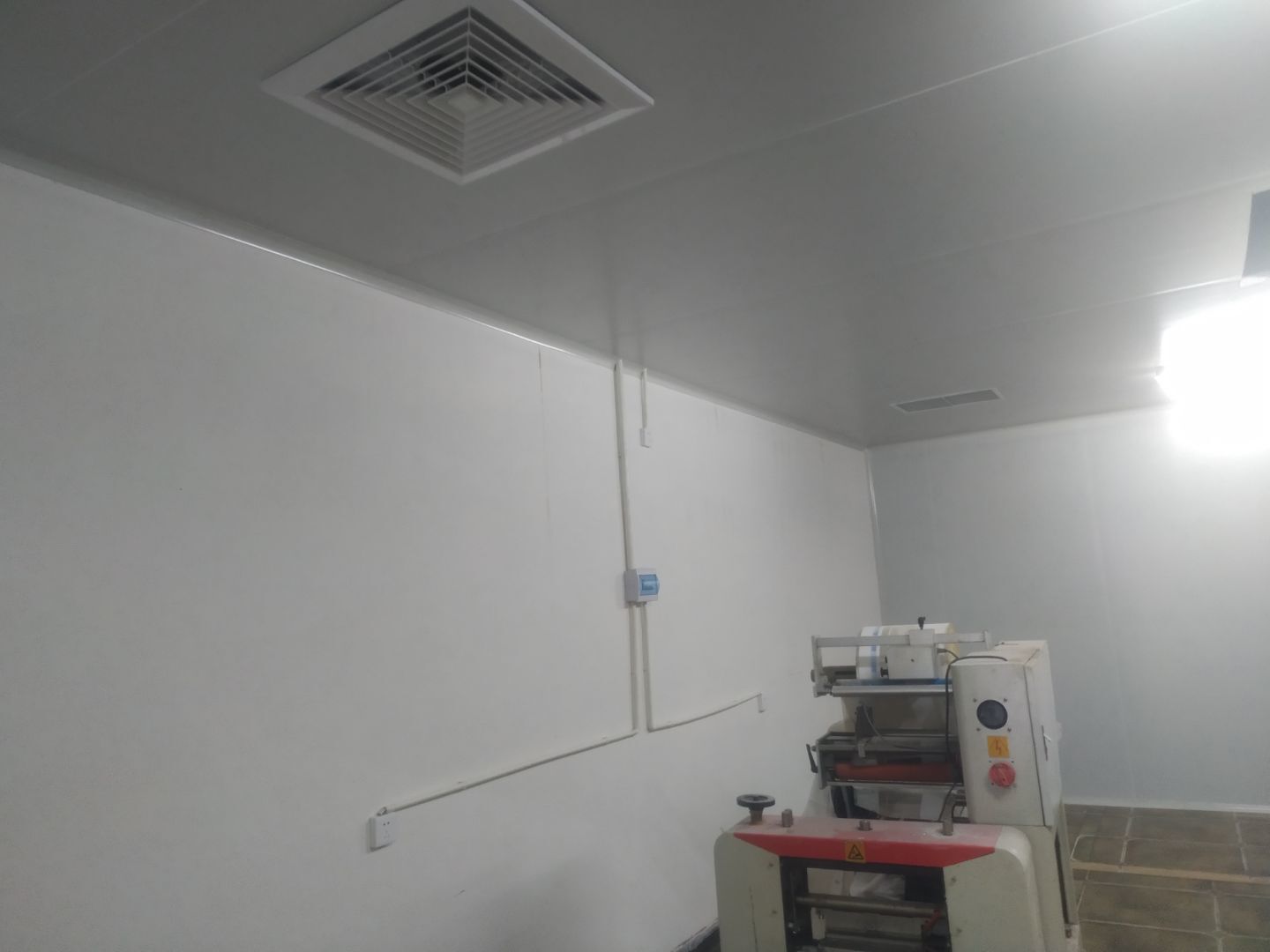 門安裝完成,門鎖安裝完成,換氣扇、進風口、空調風口開洞完成,照明電試電完成。