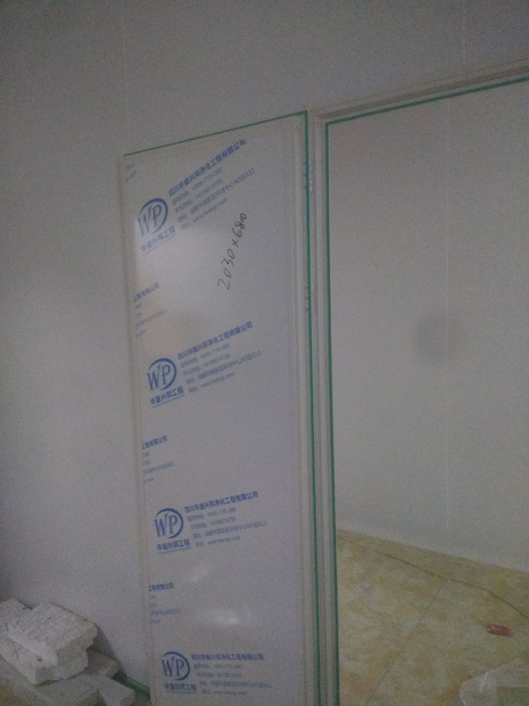 撕膜打膠完成95%,圓弧安裝完成90%,門安裝完成85%,觀察窗安裝完成,燈具安裝完成80%,配管穿線完成60%。