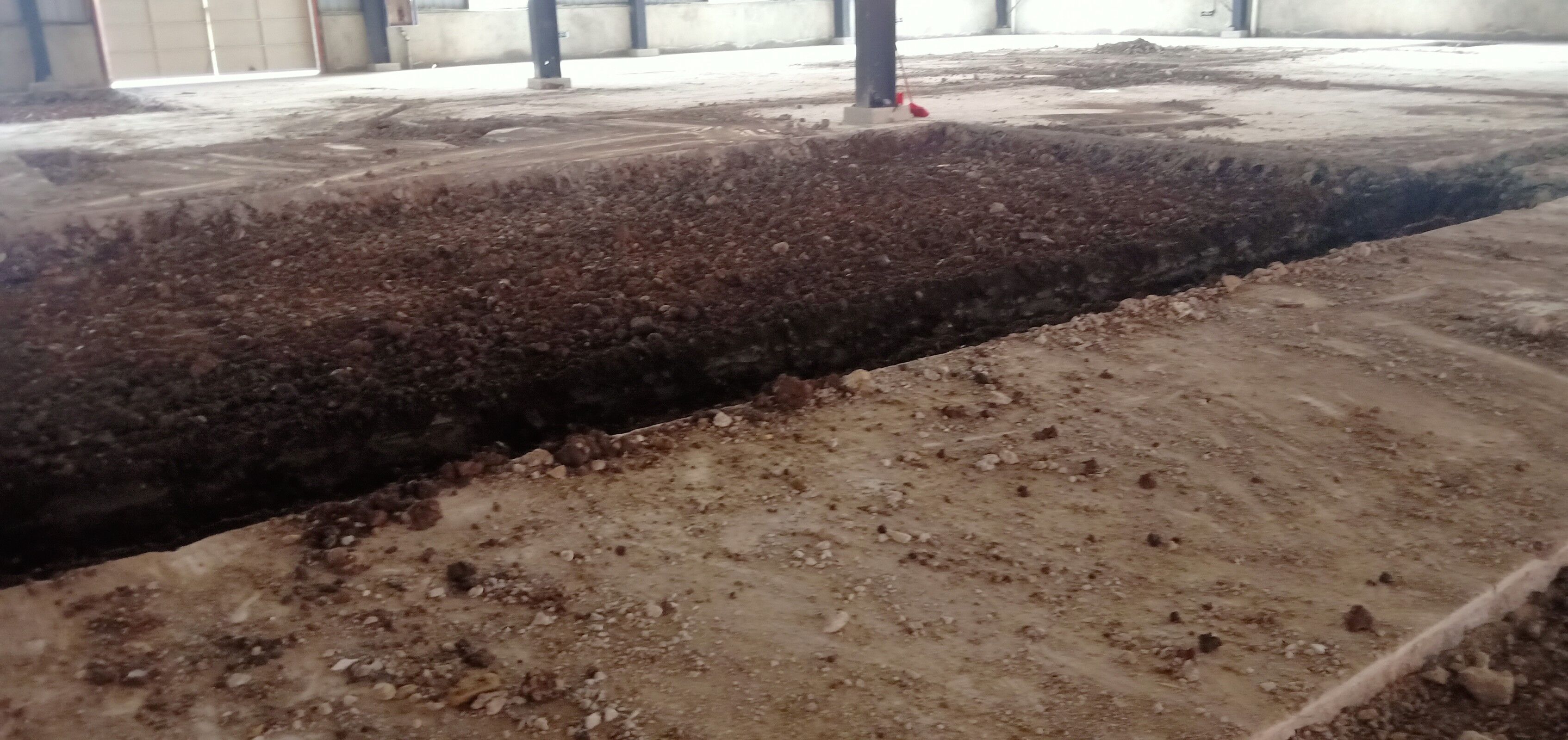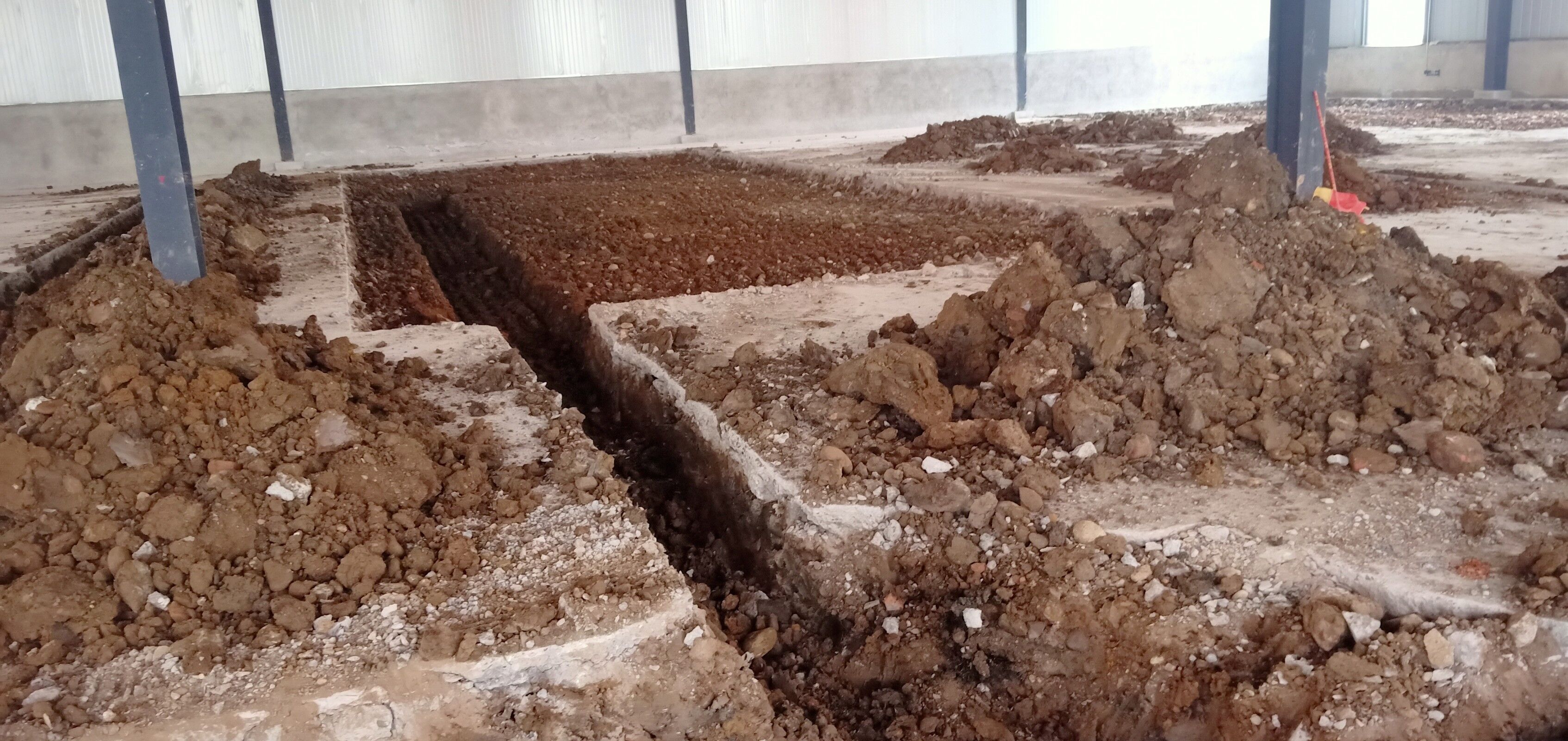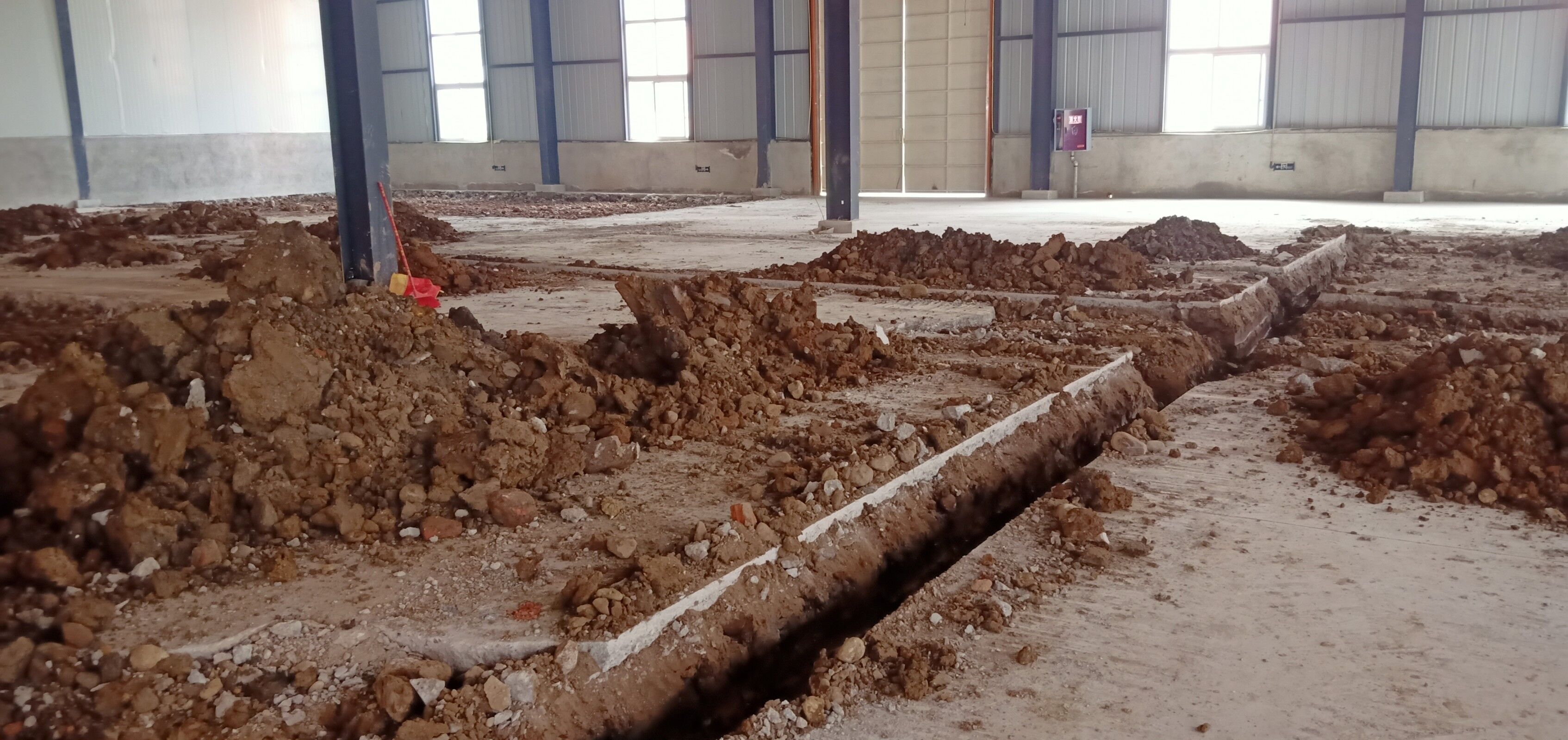 室內(nèi)排水溝破碎及清挖完成,待泥水進(jìn)場(chǎng)