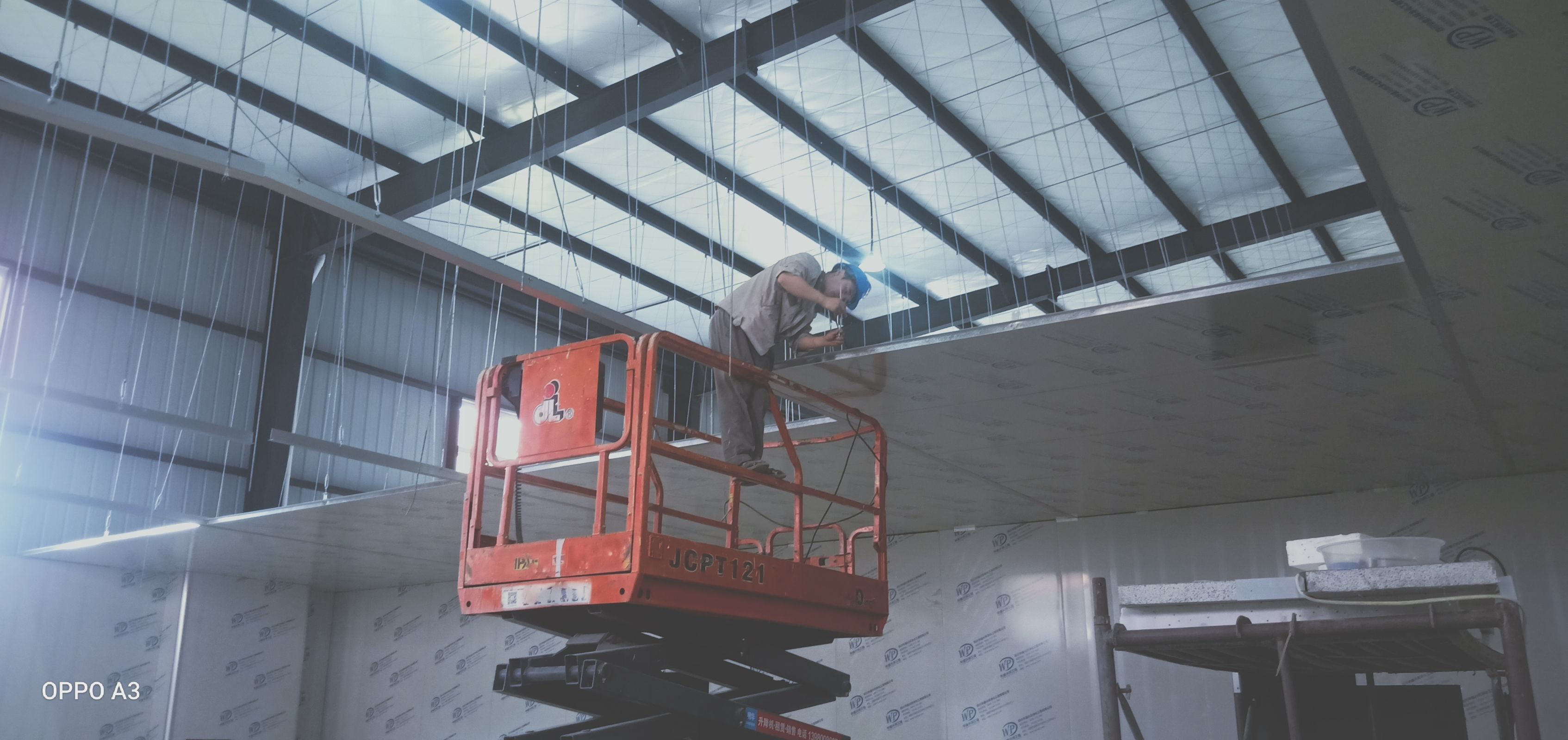 彩鋼板、凈化板施工現(xiàn)場(chǎng)。