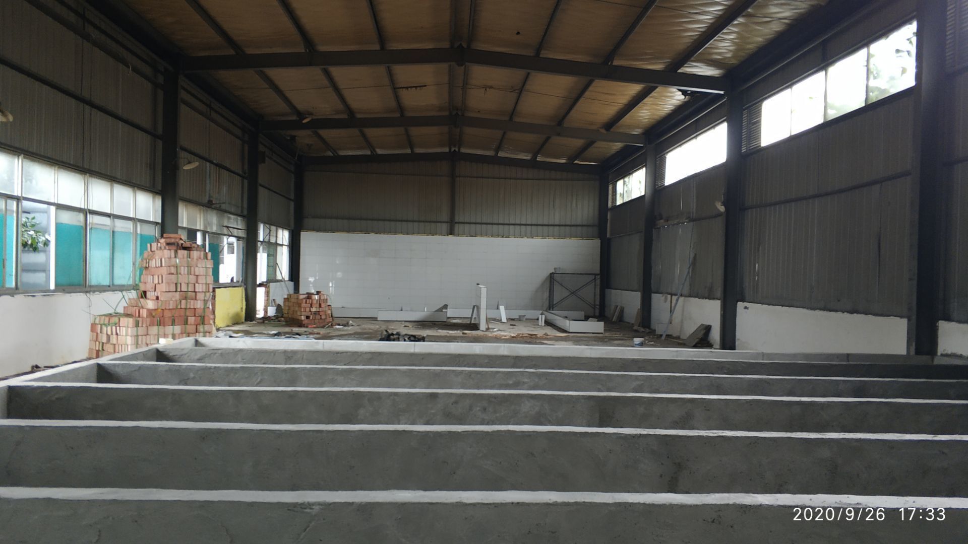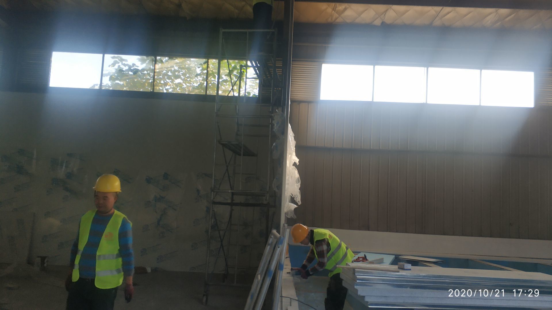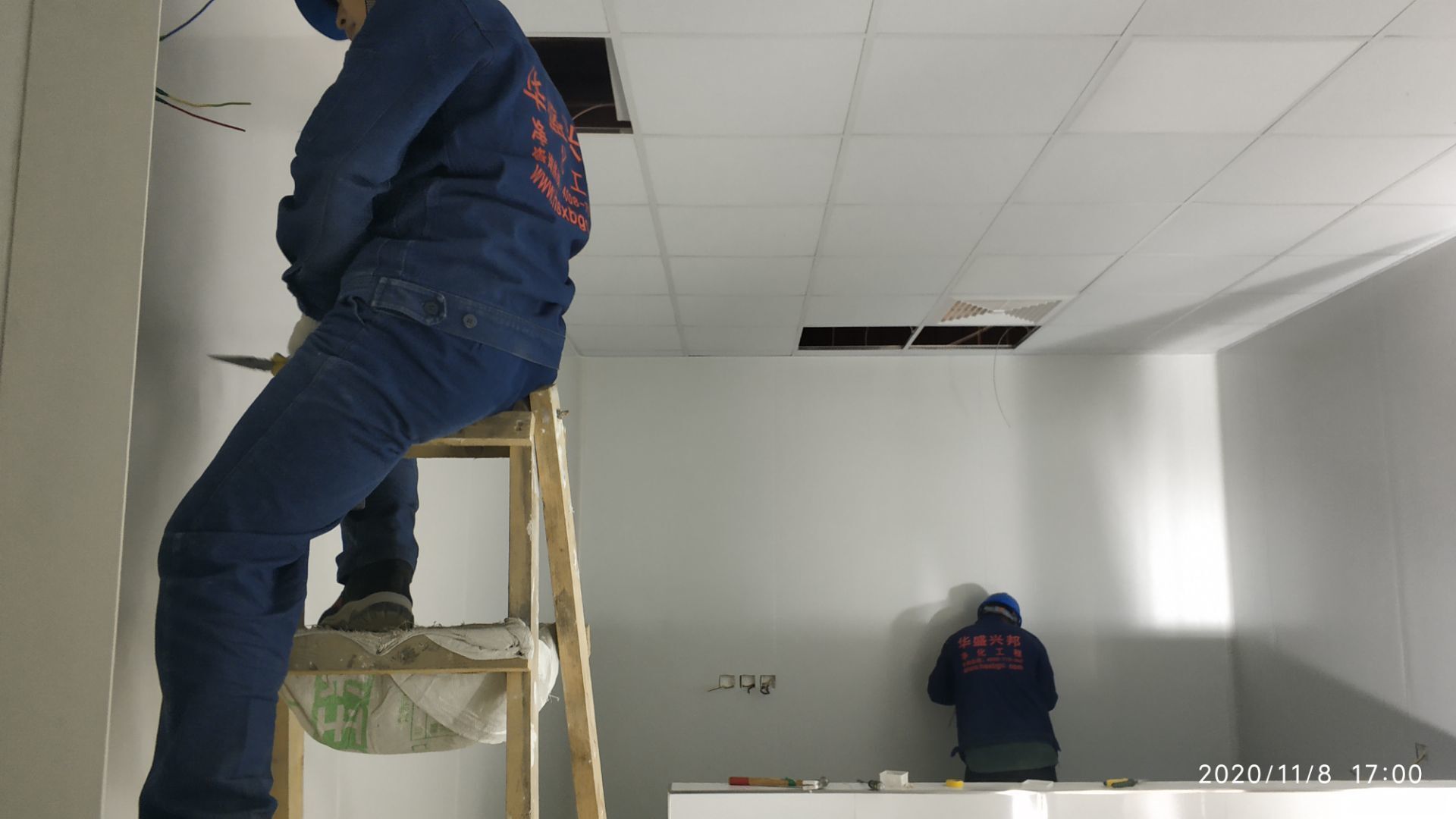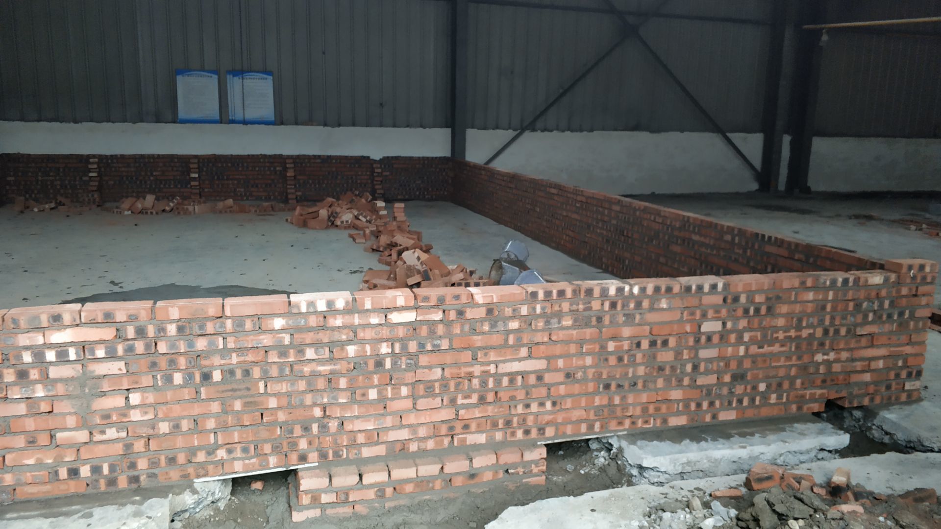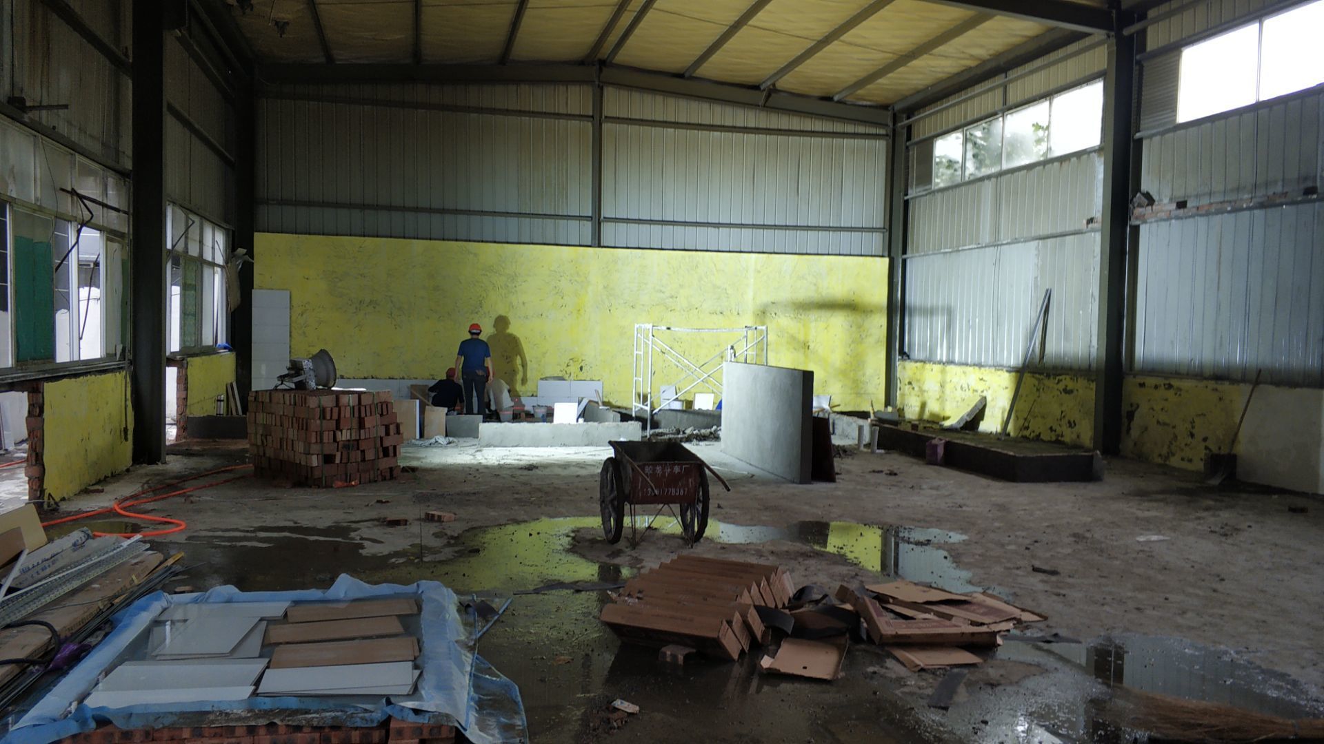 1、加工區域墻板安裝完成百分之七十,加固。 2、新增周轉清洗間墻面貼磚完成。 3、廠區前新增貼磚面乳膠漆清除完成百分之七十。