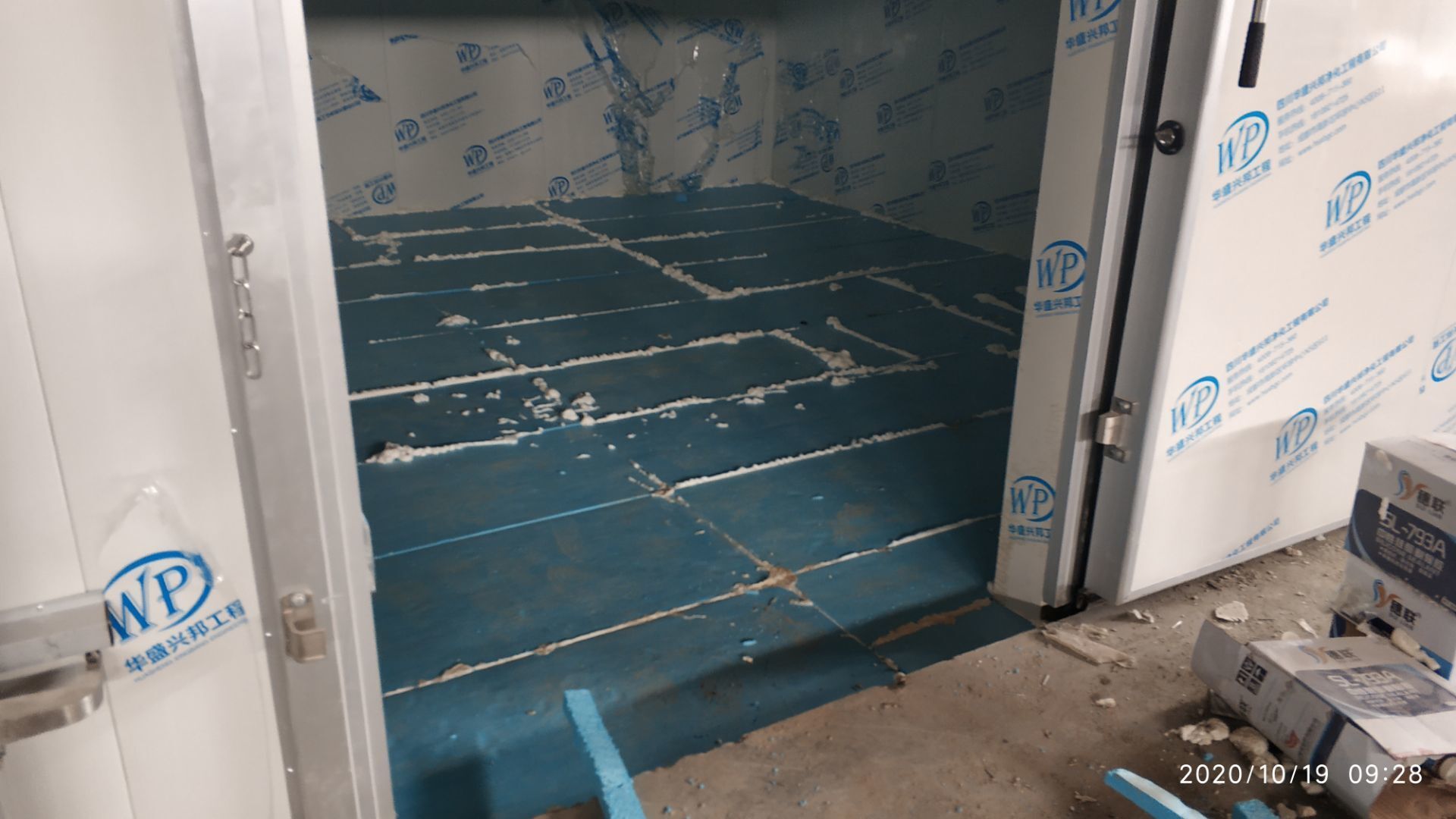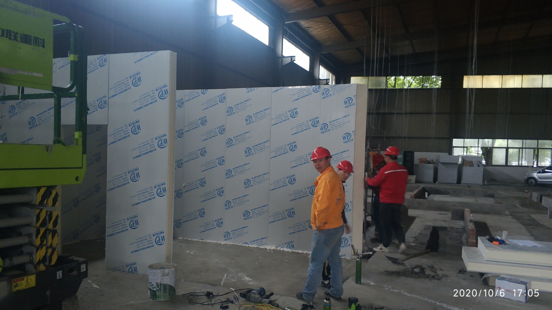 1.地面瓷磚鋪貼完成百分之八十。 2.凍庫墻板安裝施工完成百分之五。