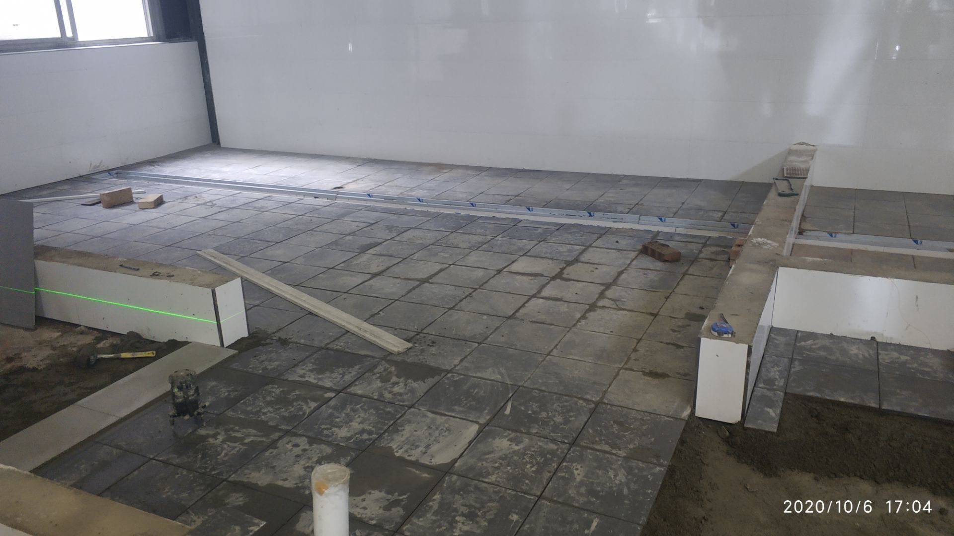 1.凍庫收邊收口完成百分之七十;2、凍庫門安裝完成百分之六十五; 3、生產車間地面鋪裝完成百分之七十; 4、生產車間排水溝貼磚完成。