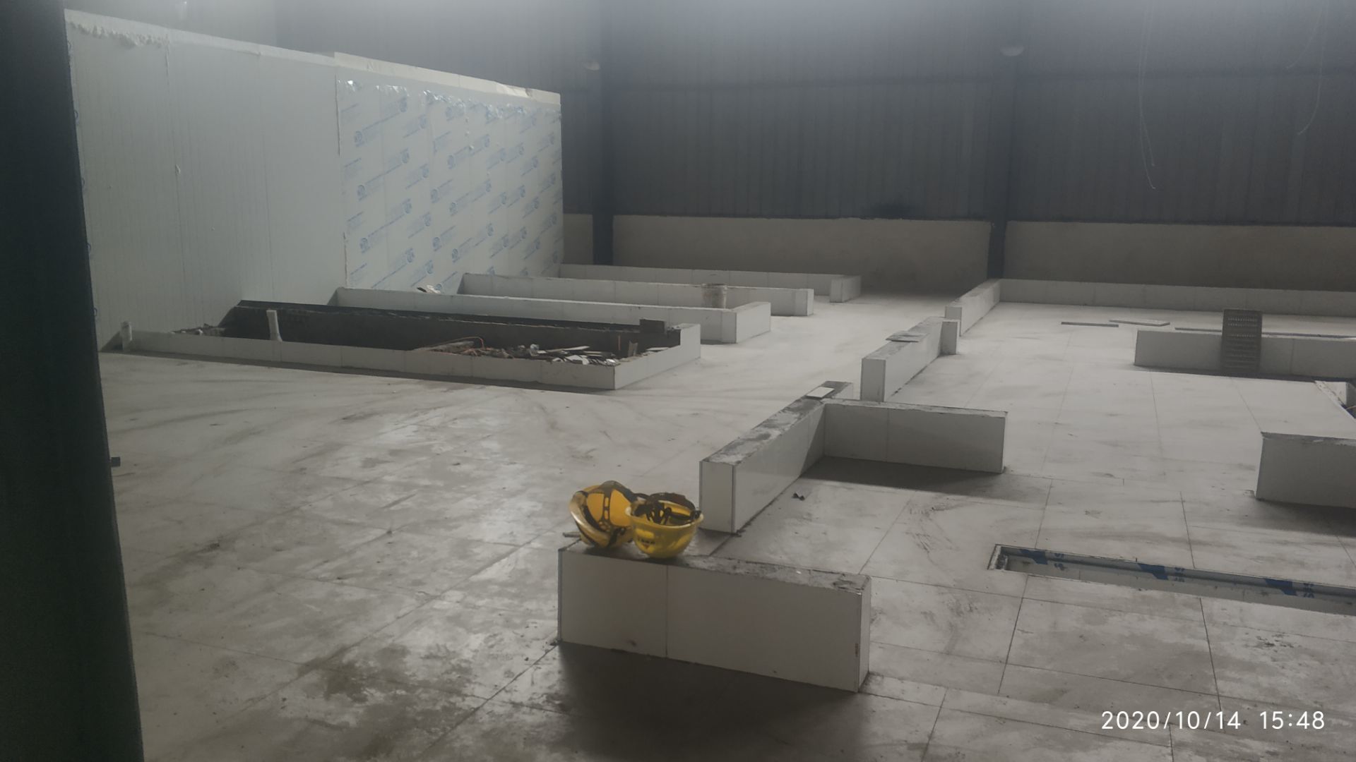 1.多功能區域地面鋪裝施工完成百分之五十五。 2.所有凍庫墻板安裝完成百分之五十。