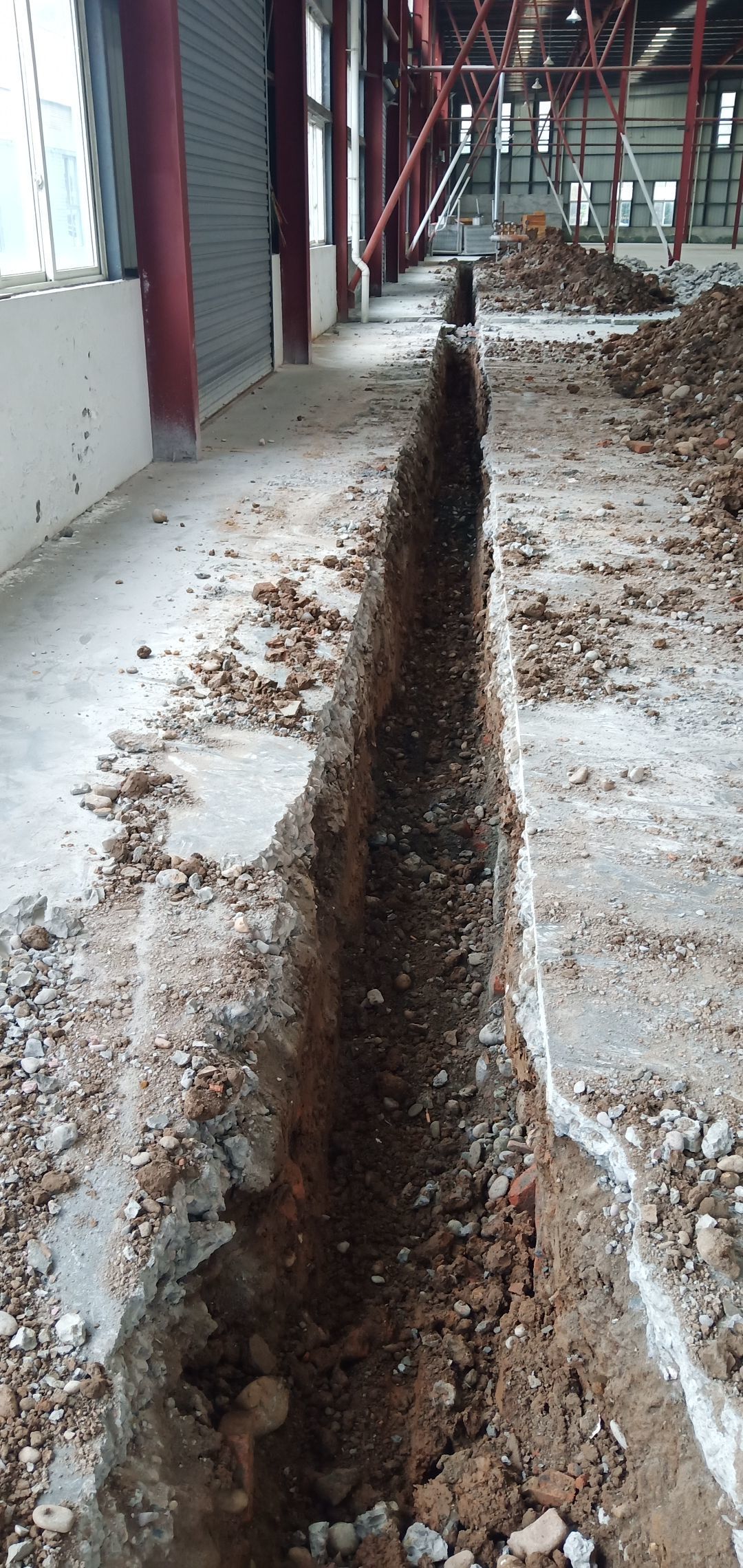 切縫施工完成,挖排水管溝施工完成,剛結(jié)構(gòu)基礎(chǔ)施工完成